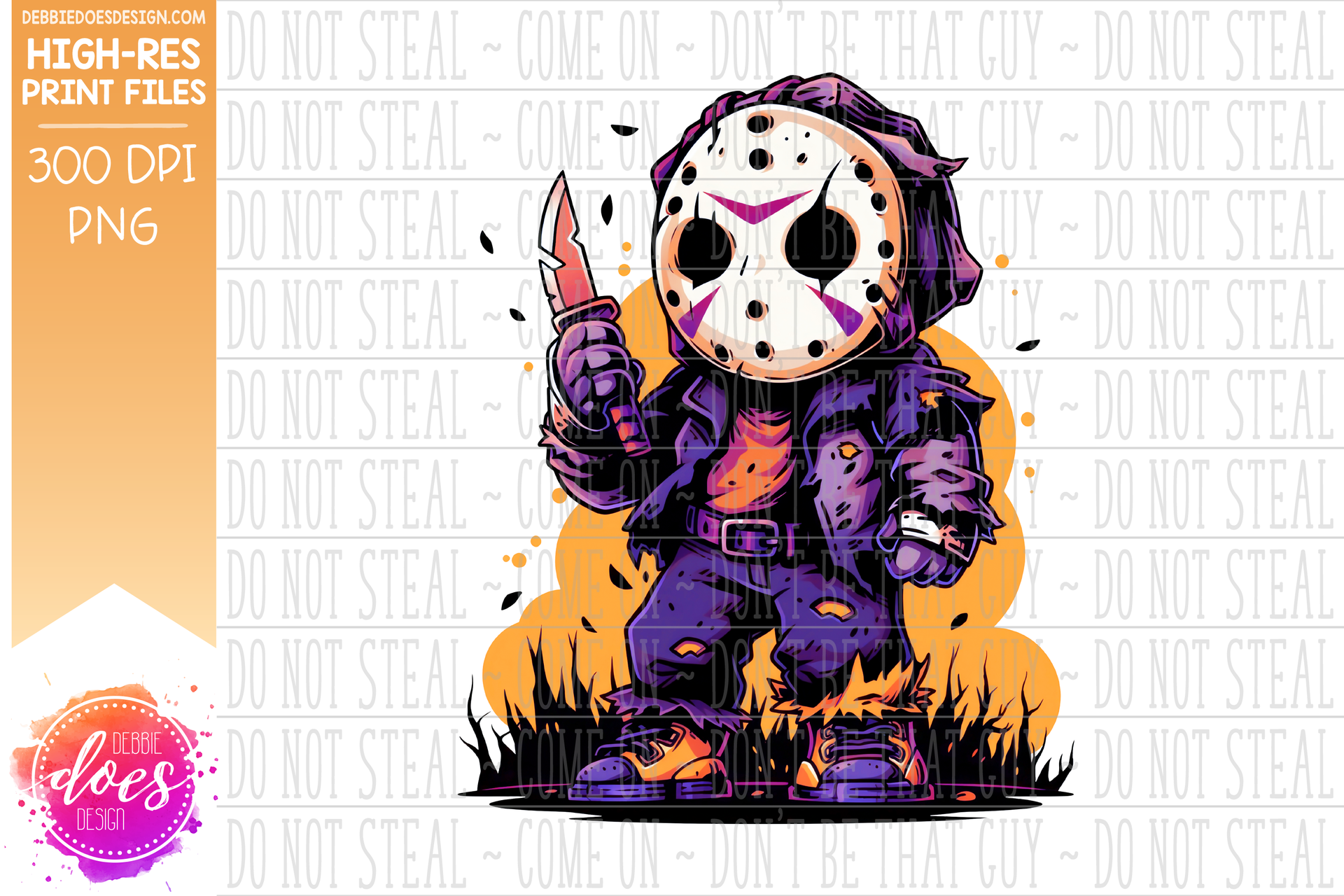 Scary Hockey Mask Guy - Purple Orange - Printable/Sublimation Design