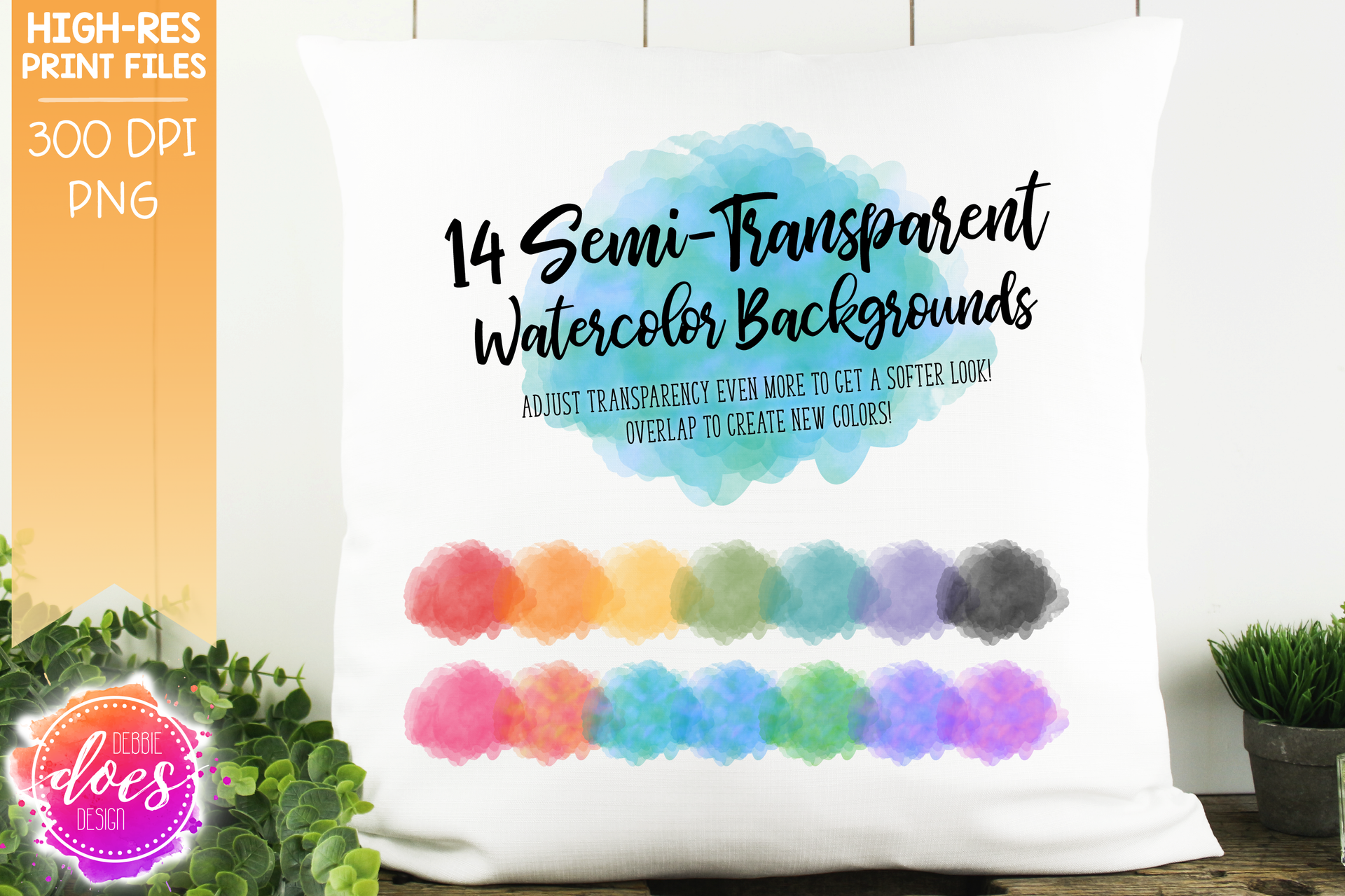 Semi-Transparent Watercolor Backgrounds (Set of 14 Colors) - Design Elements