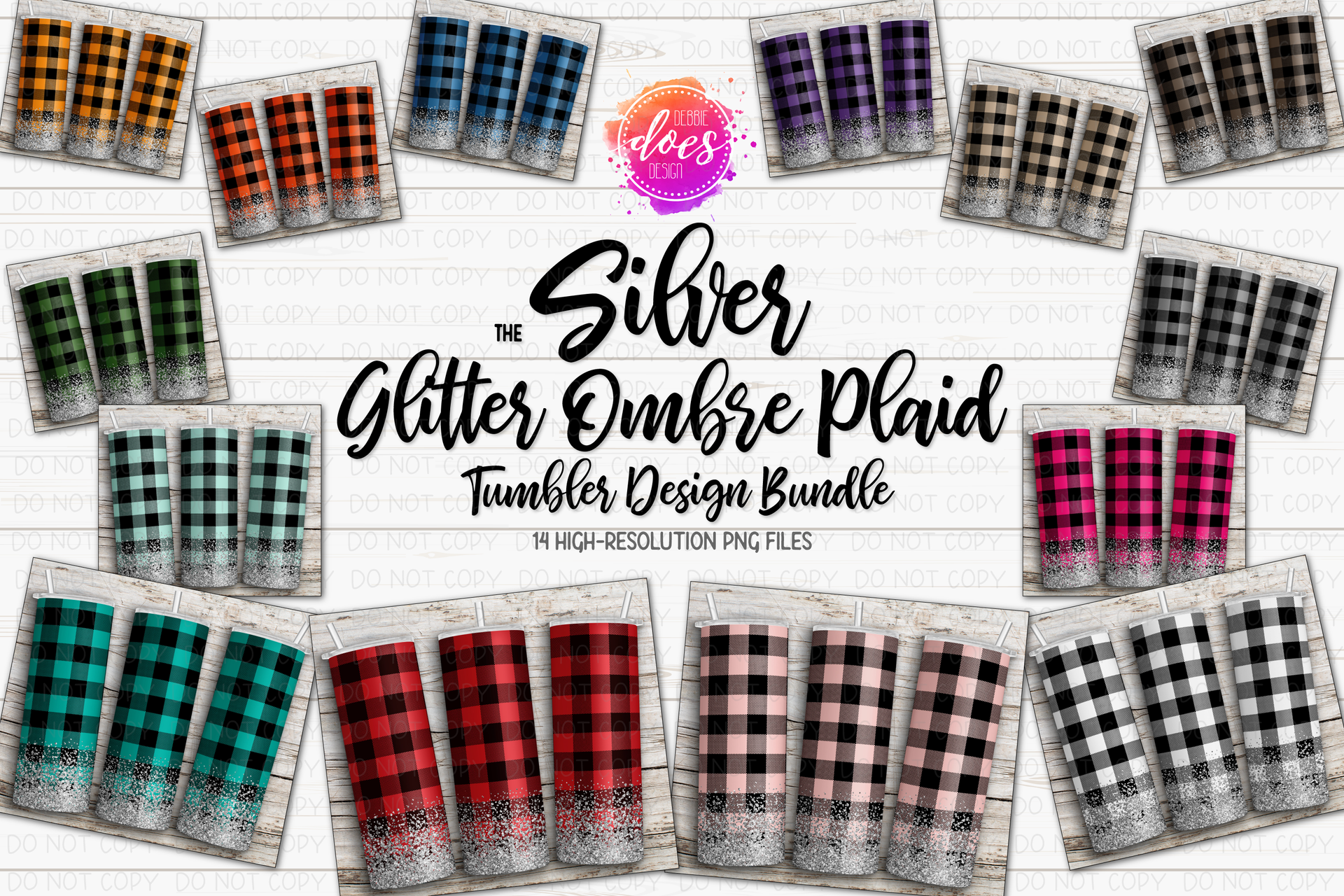 Silver Glitter Plaid Ombre Tumbler Wrap Bundle - Includes 14 files! - Sublimation/Printable Design