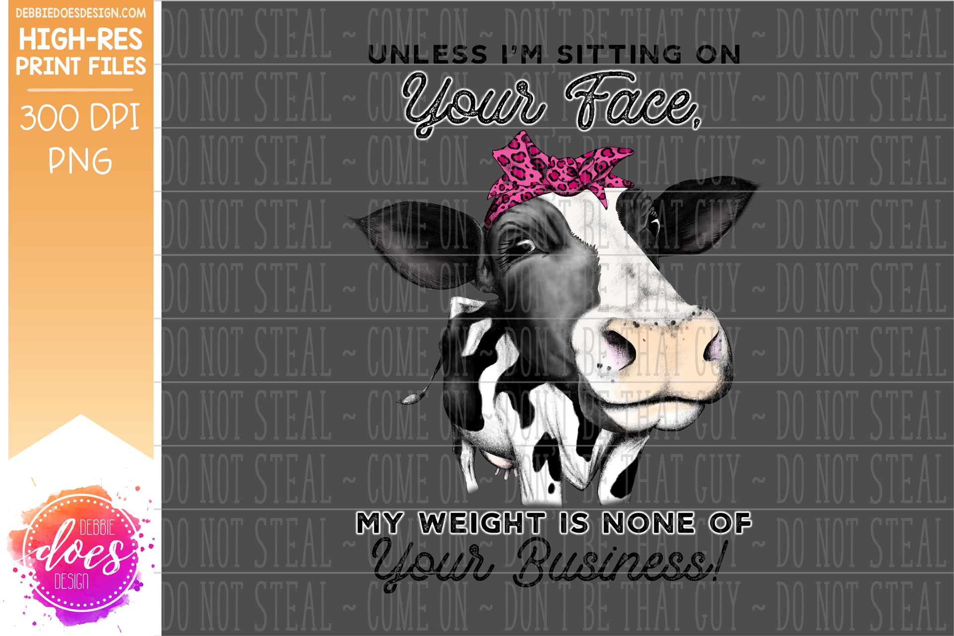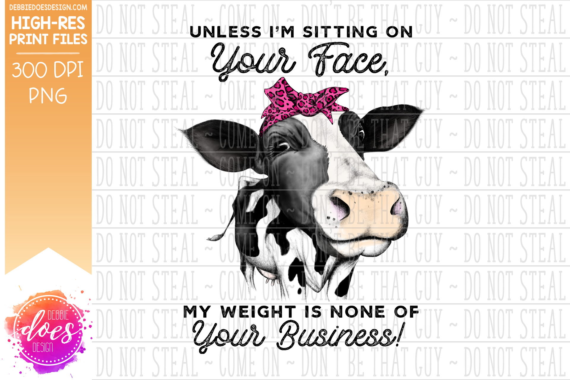 Sitting on Your Face - Hand Drawn Dairy Cow - Sublimation/Printable Design