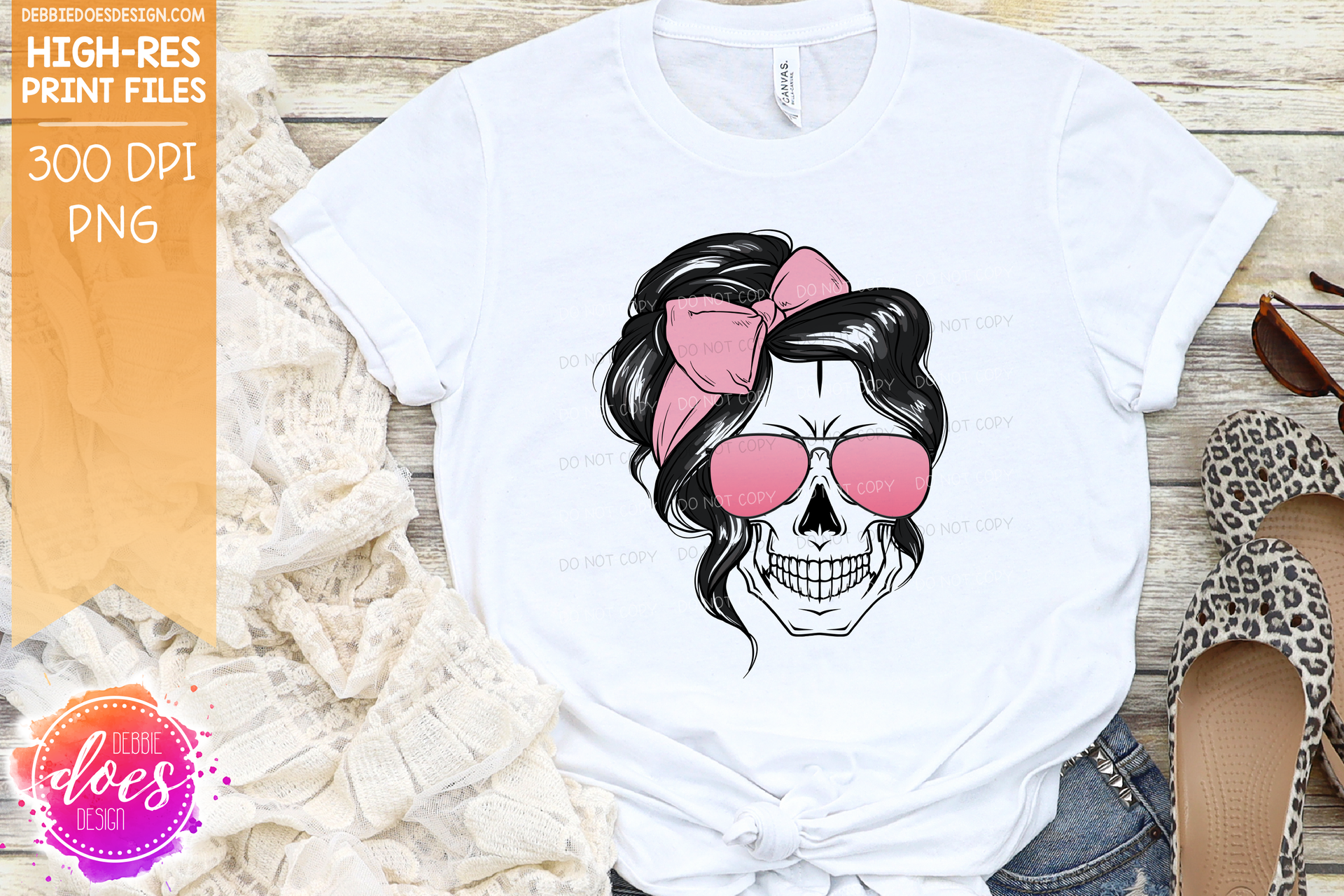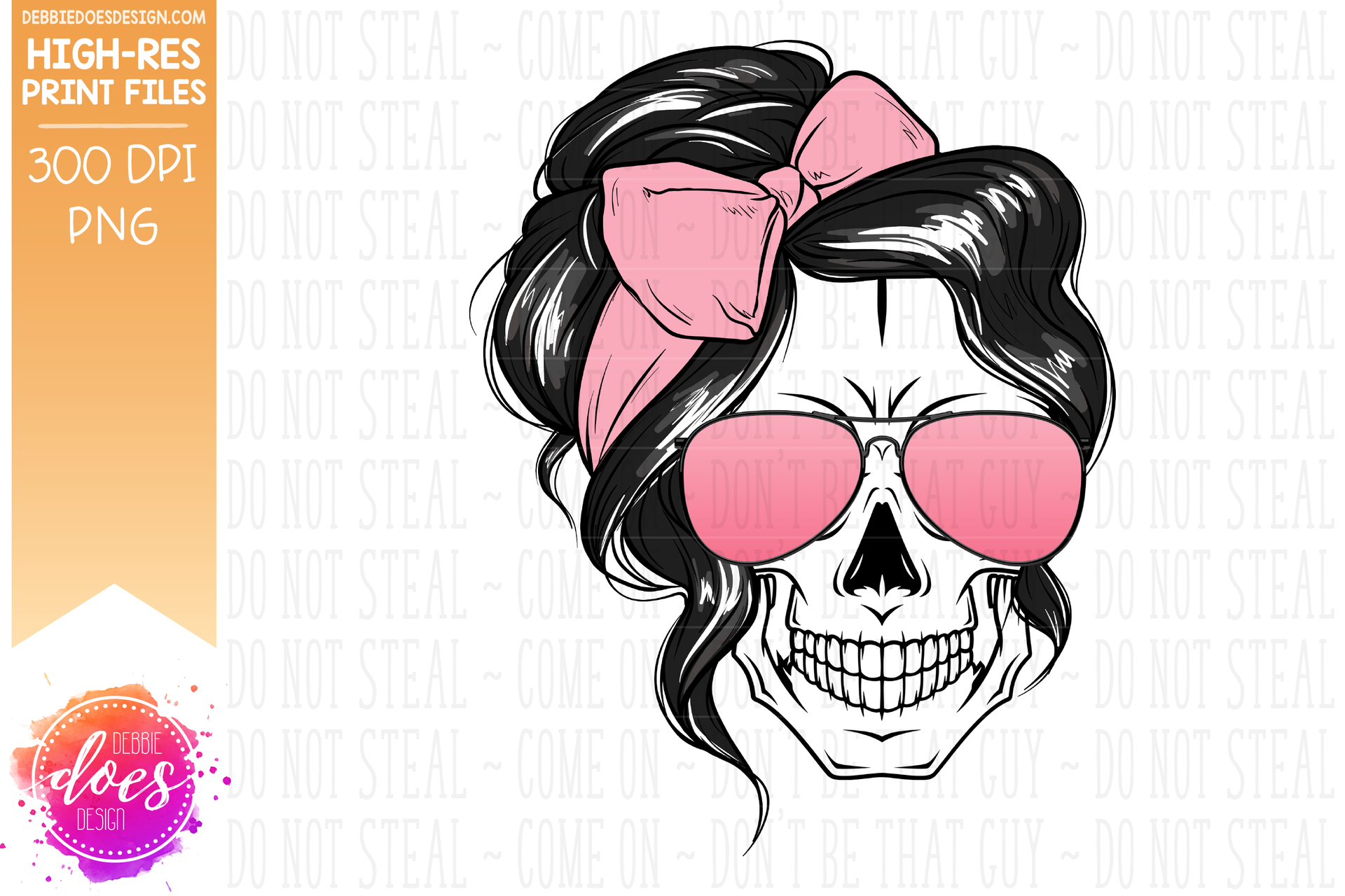 Skull with Hair, Bow & Sunglasses - Pink - Sublimation/Printable Design