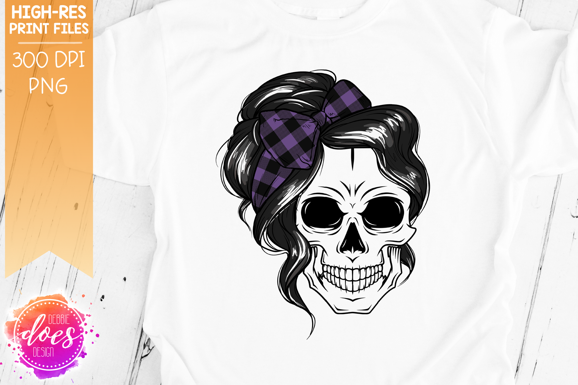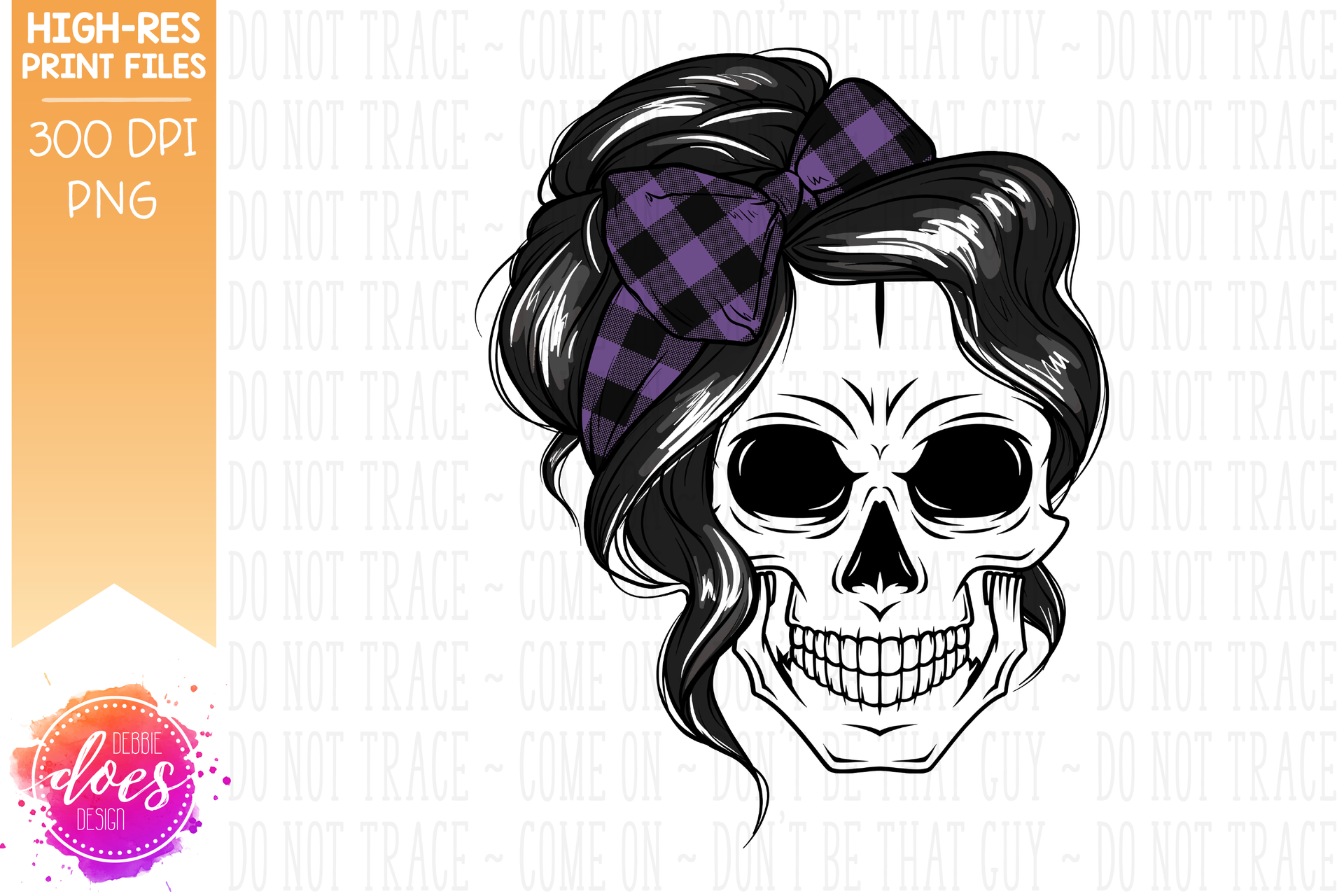 Skull with Hair & Buffalo Plaid Bow - Purple - Sublimation/Printable Design