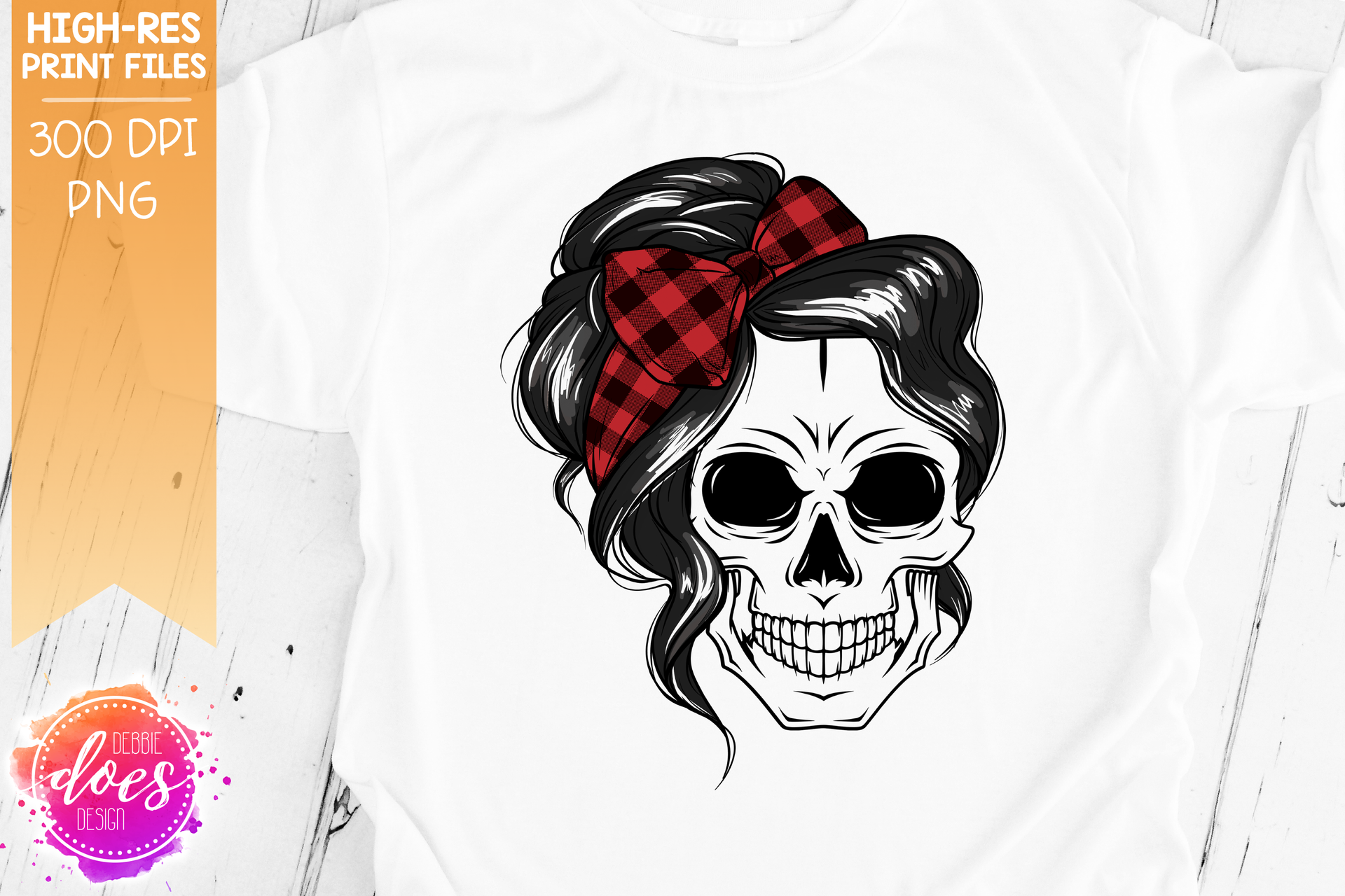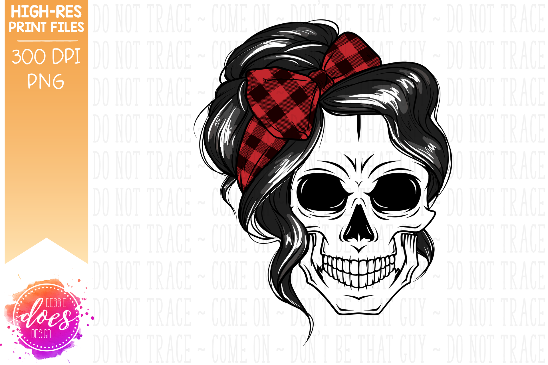 Skull with Hair & Buffalo Plaid Bow - Sublimation/Printable Design