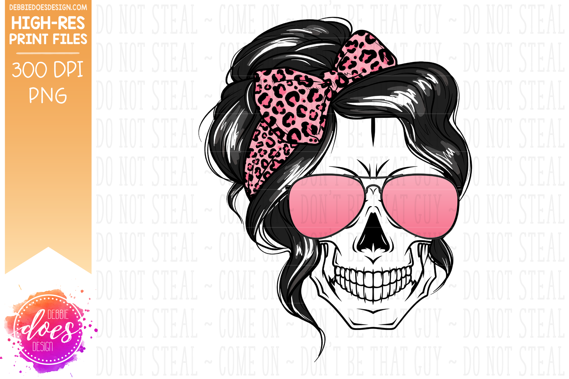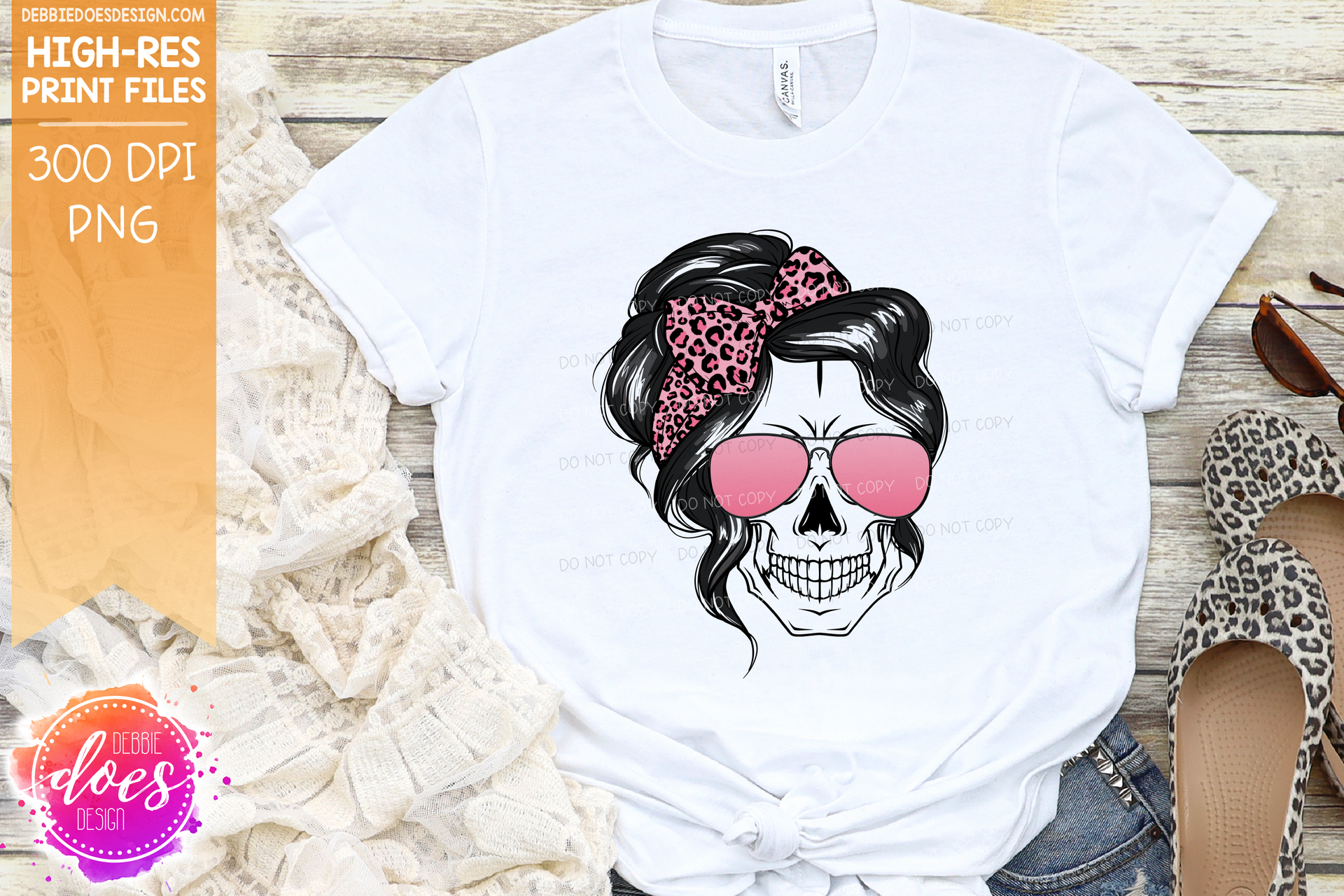 Skull with Hair & Leopard Bow and Sunglasses - Pink - Sublimation/Printable Design
