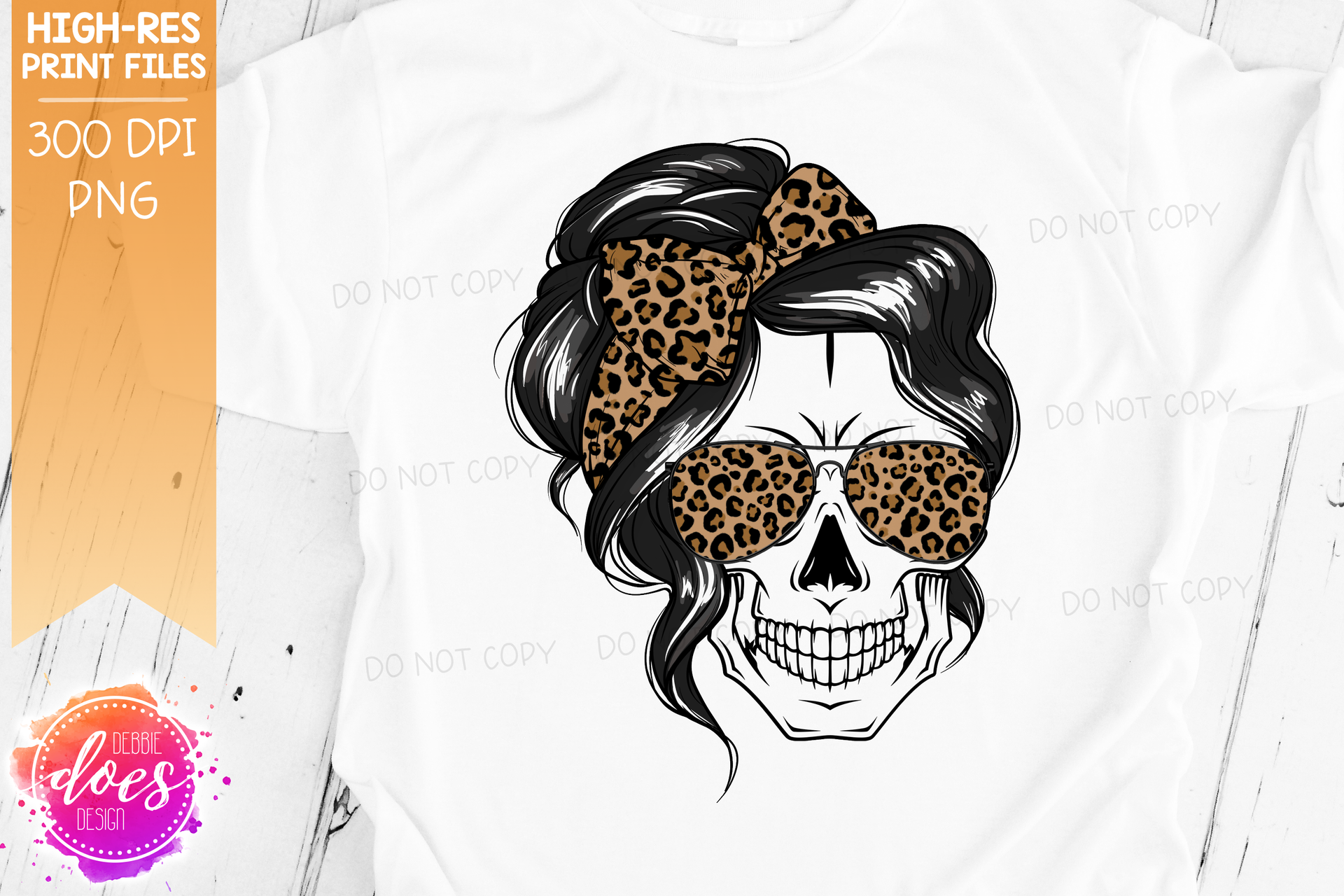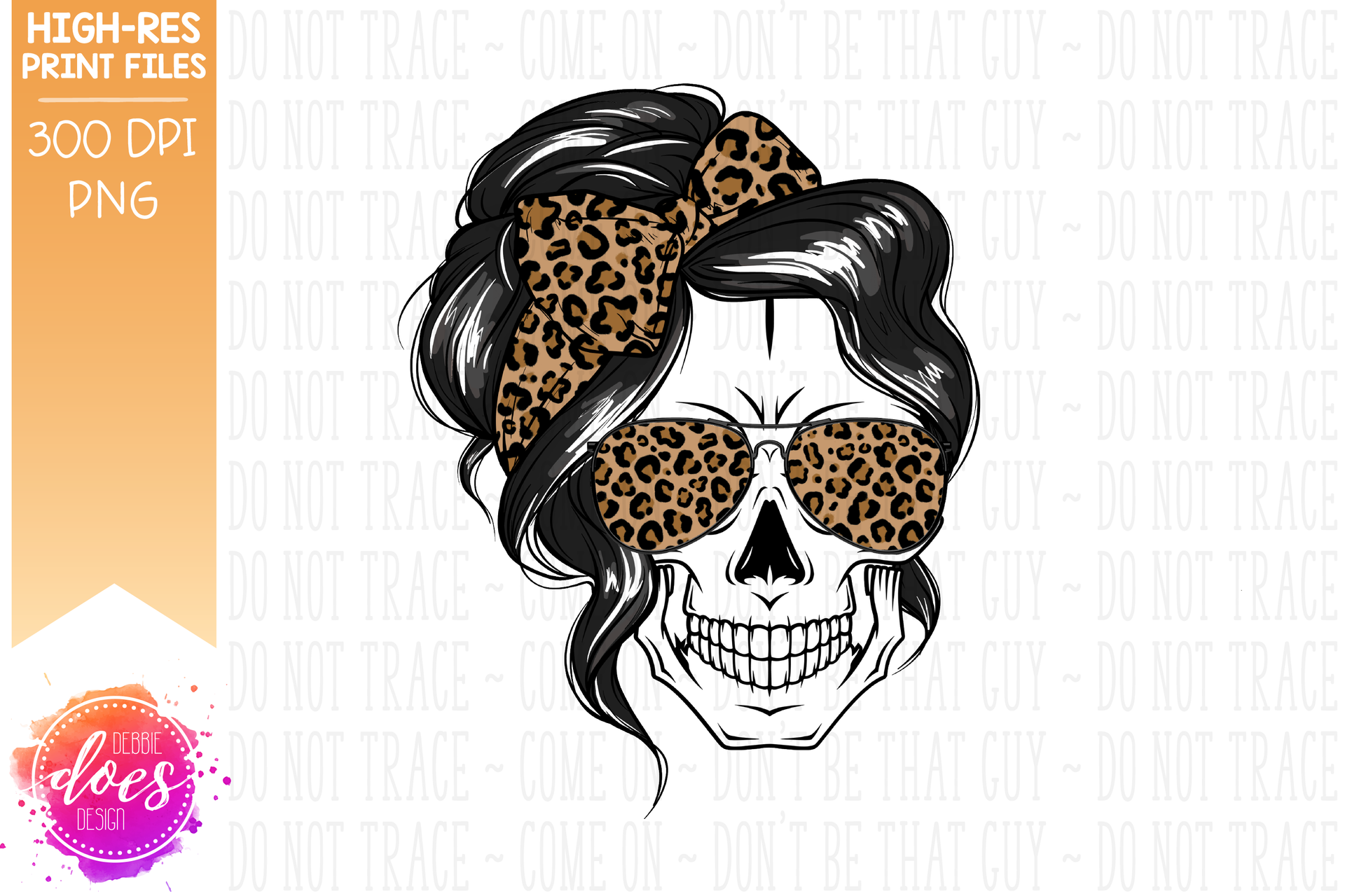 Skull with Hair & Leopard Bow and Sunglasses - Purple - Sublimation/Printable Design