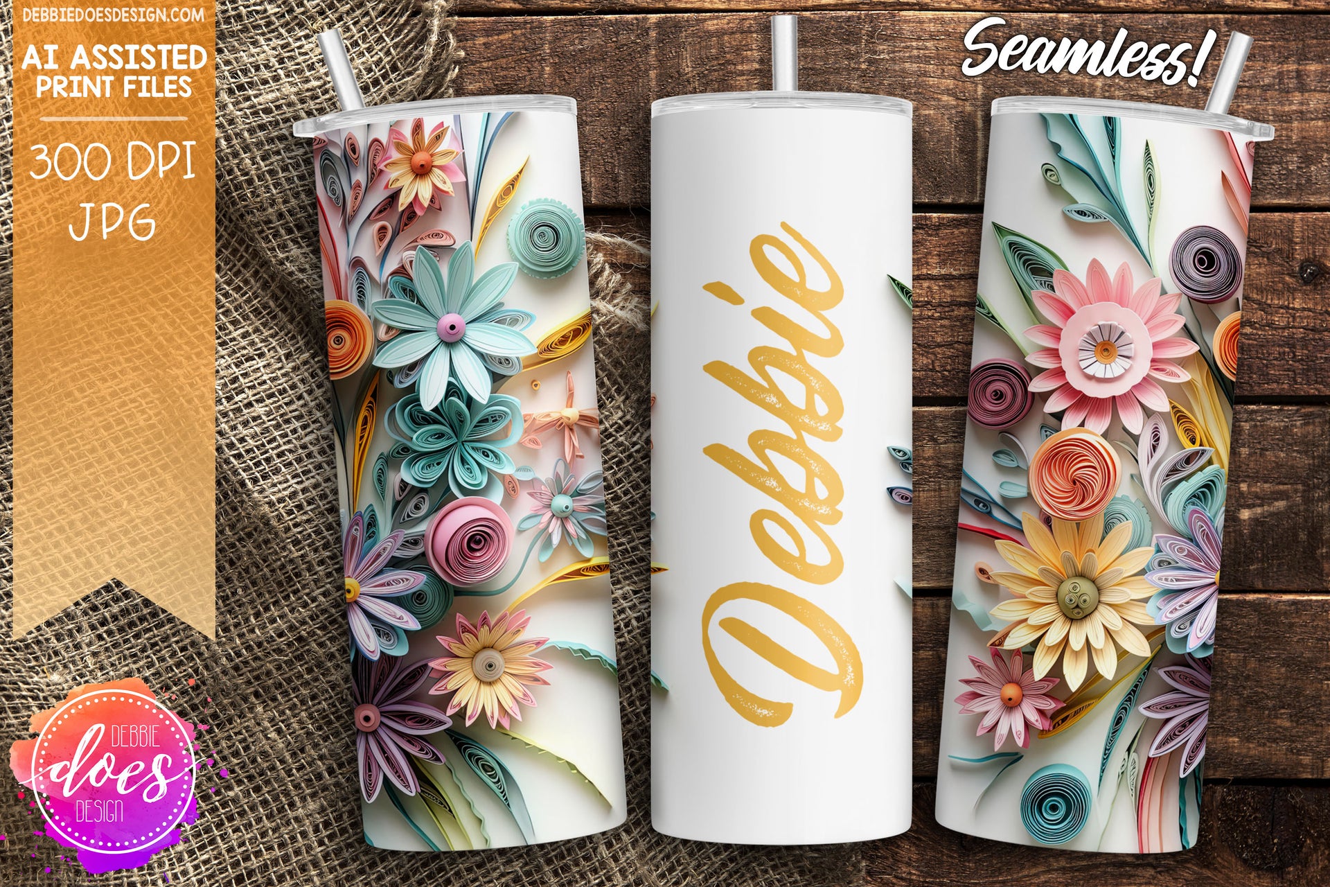 Soft Pastel Wildflowers Tumbler - Blank - Printable/Sublimation Design