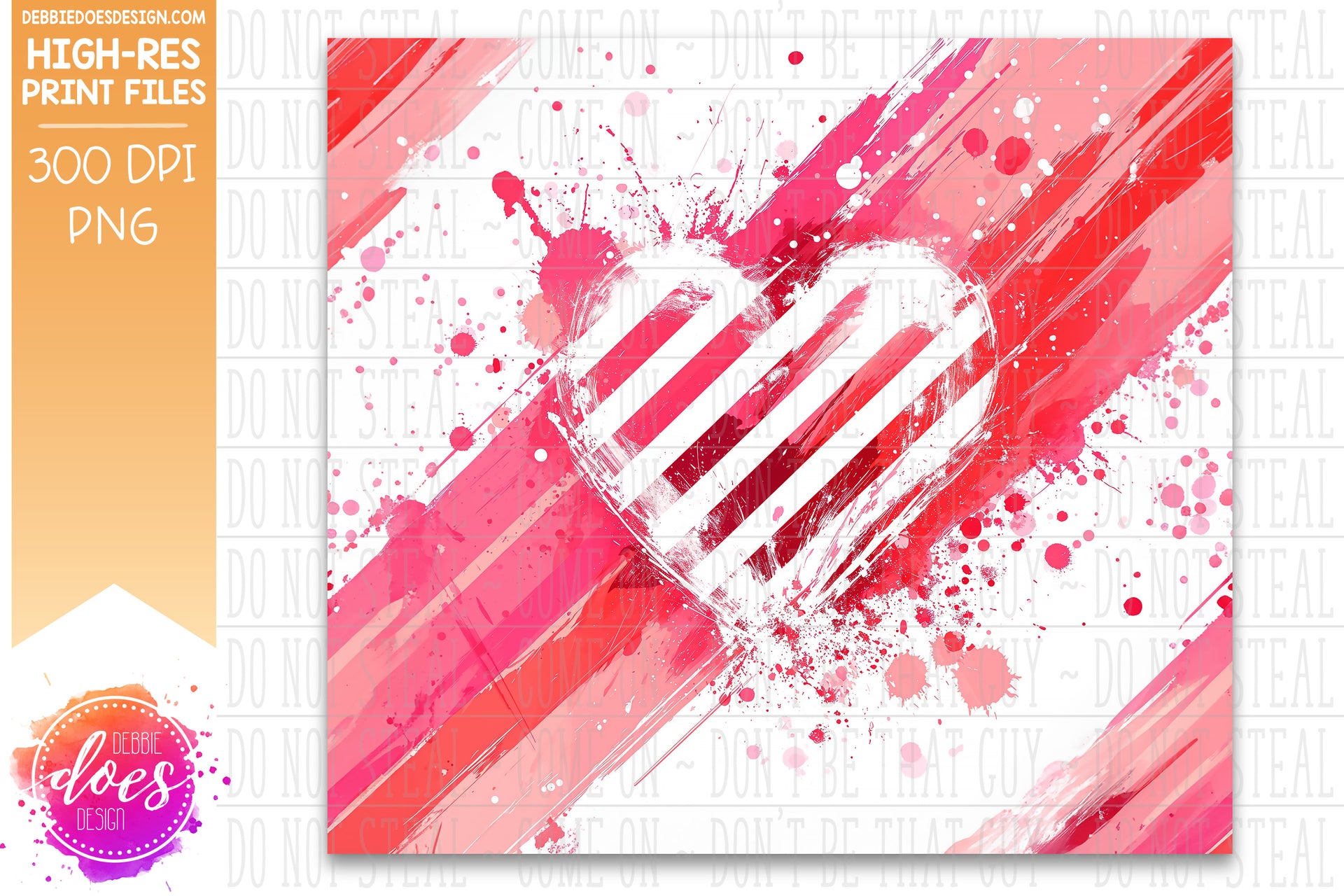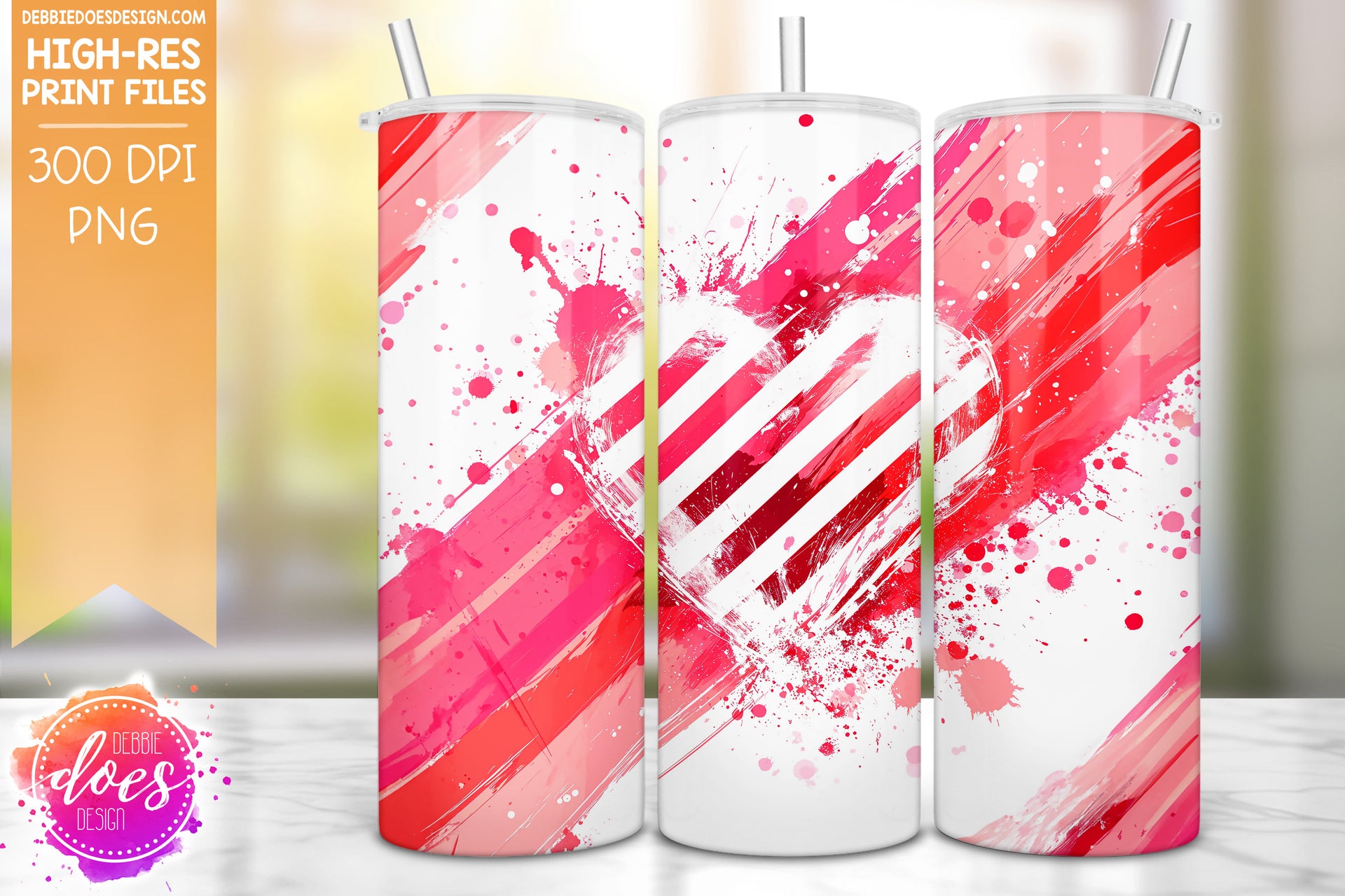 Splashy Hearts and Stripes Seamless Tumbler 1 - Sublimation/Printable Design