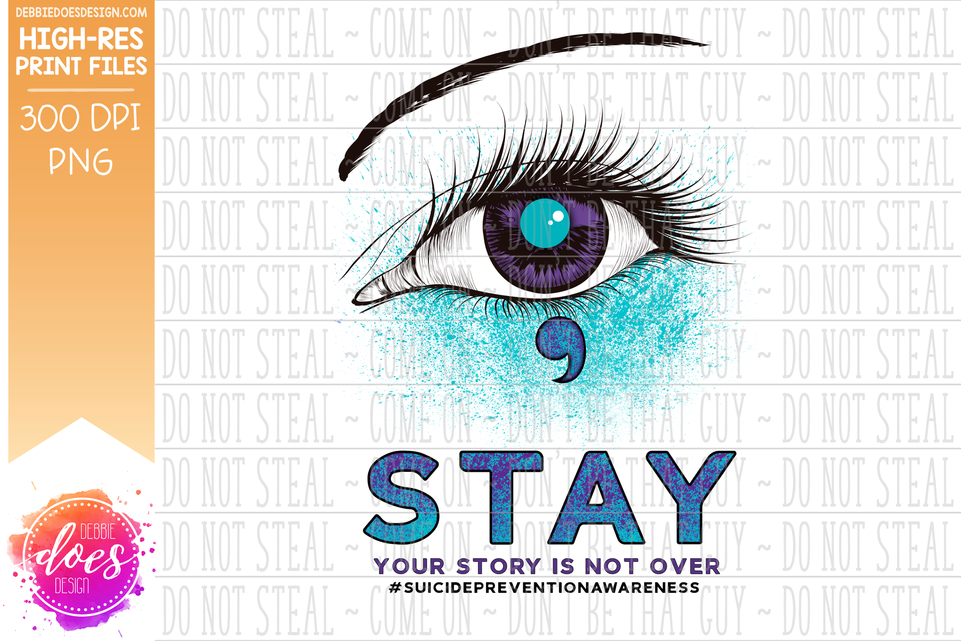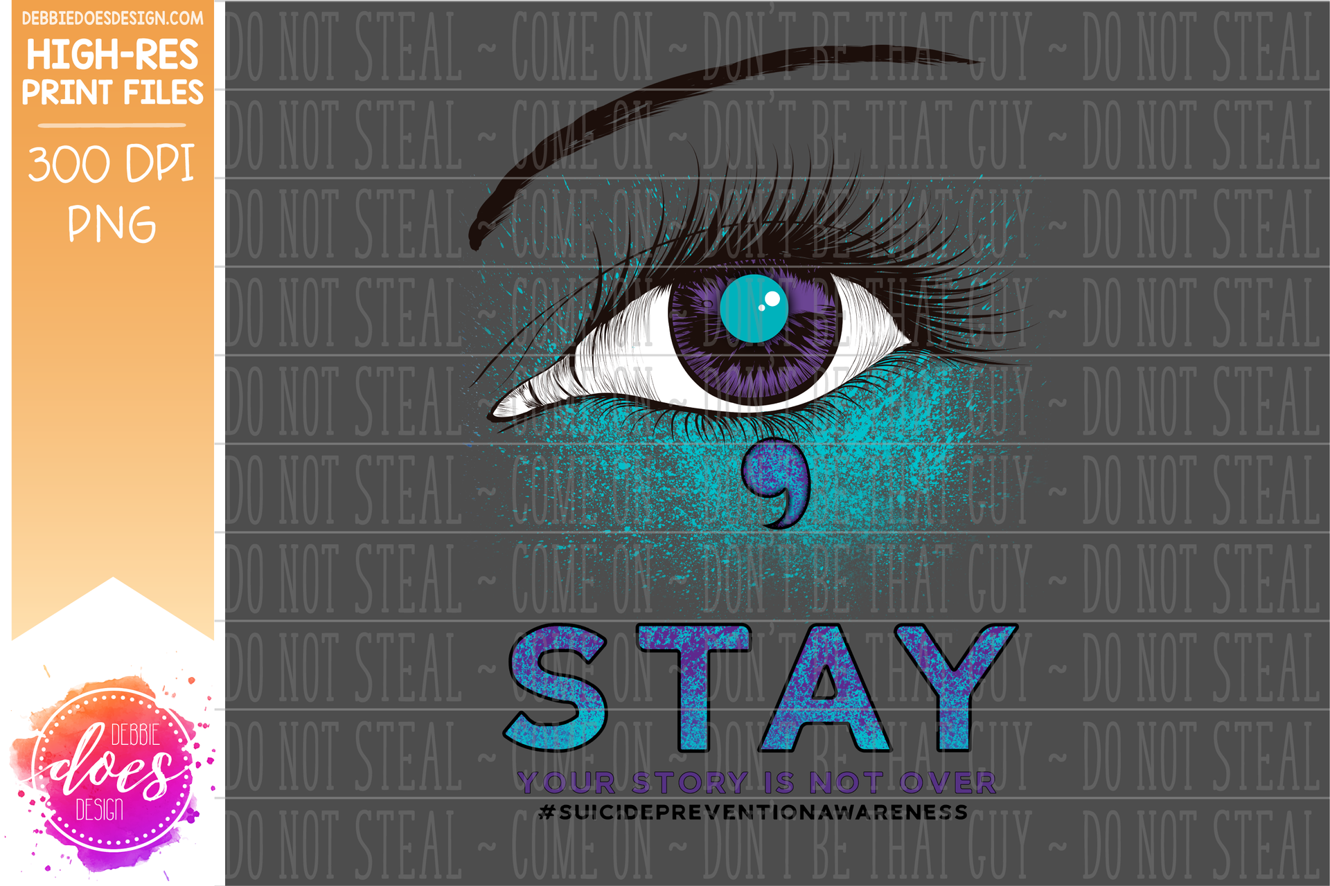 STAY Your Story is Not Over - Suicide Awareness Eye Design - Purple Teal - Printable/Sublimation File