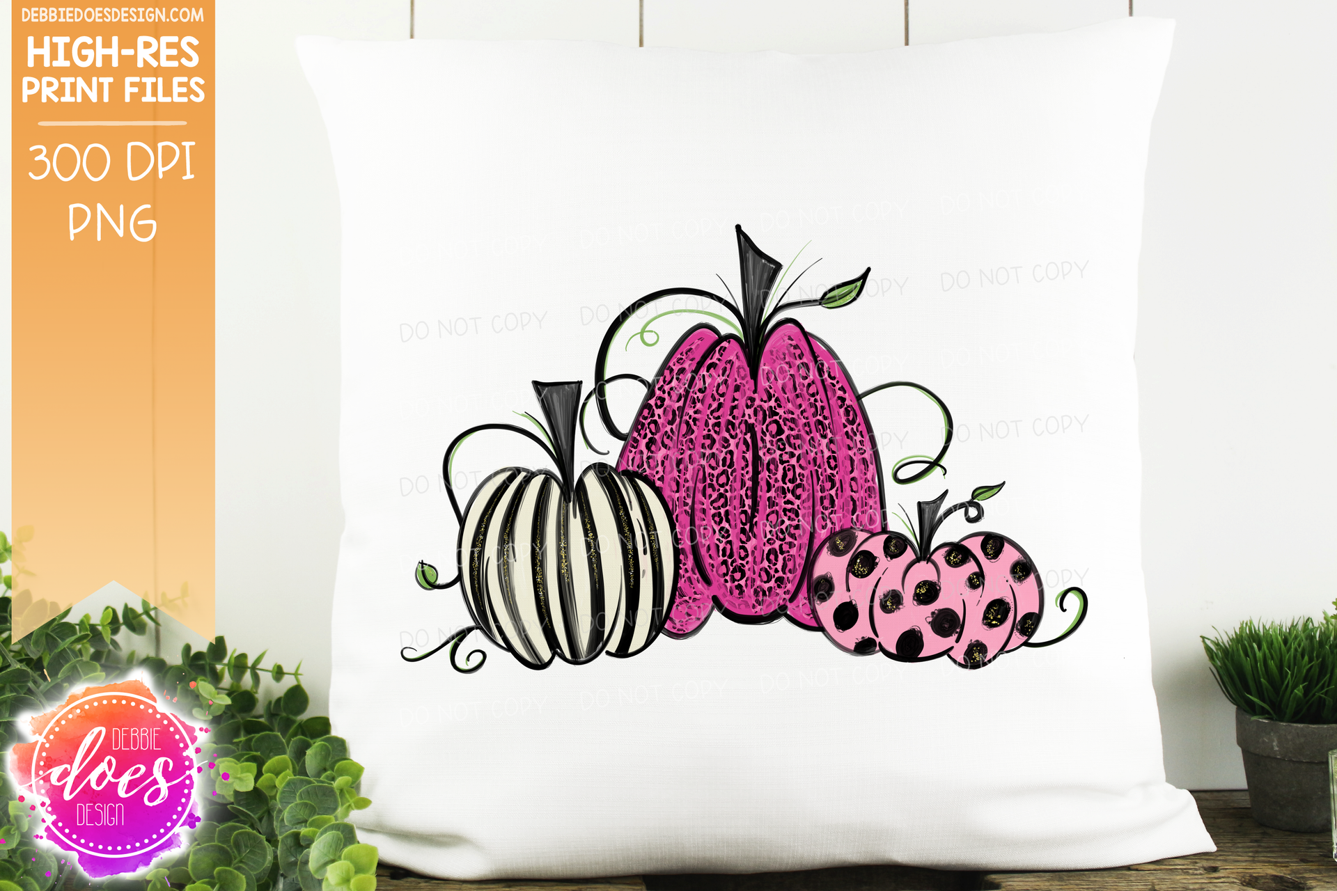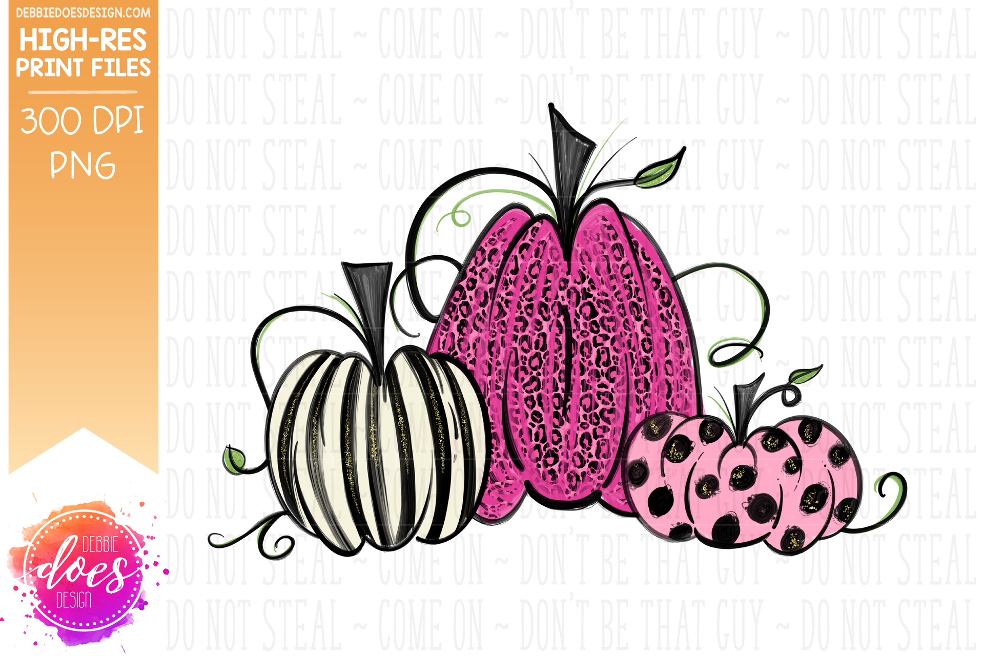 Stripes & Dots Pumpkins - Pink Leopard - Sublimation/Printable Design