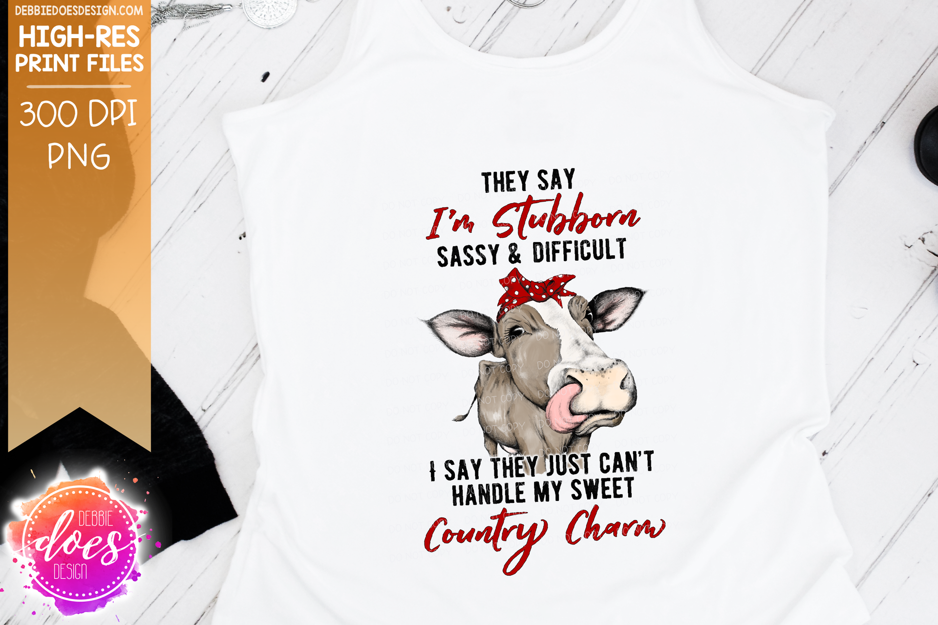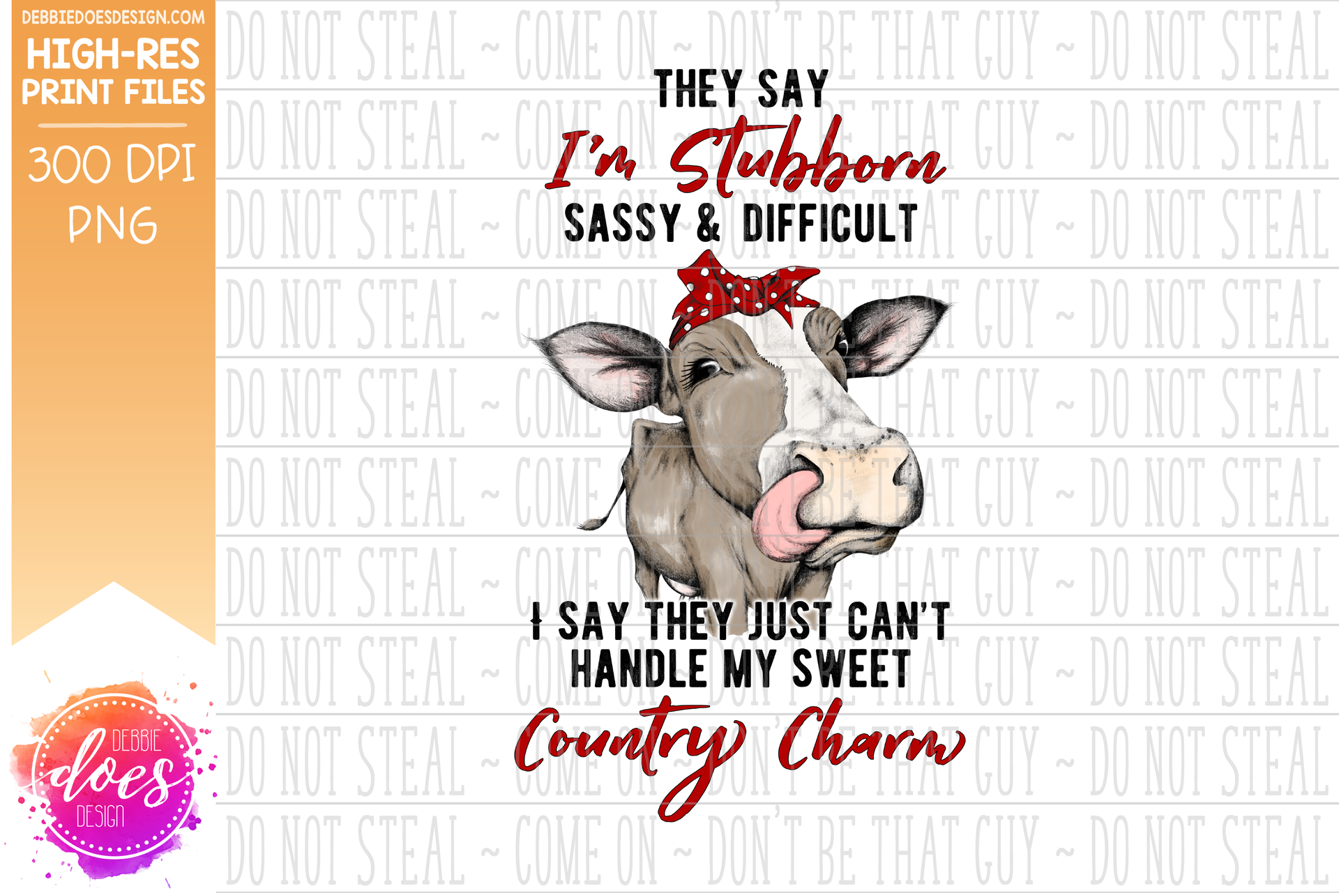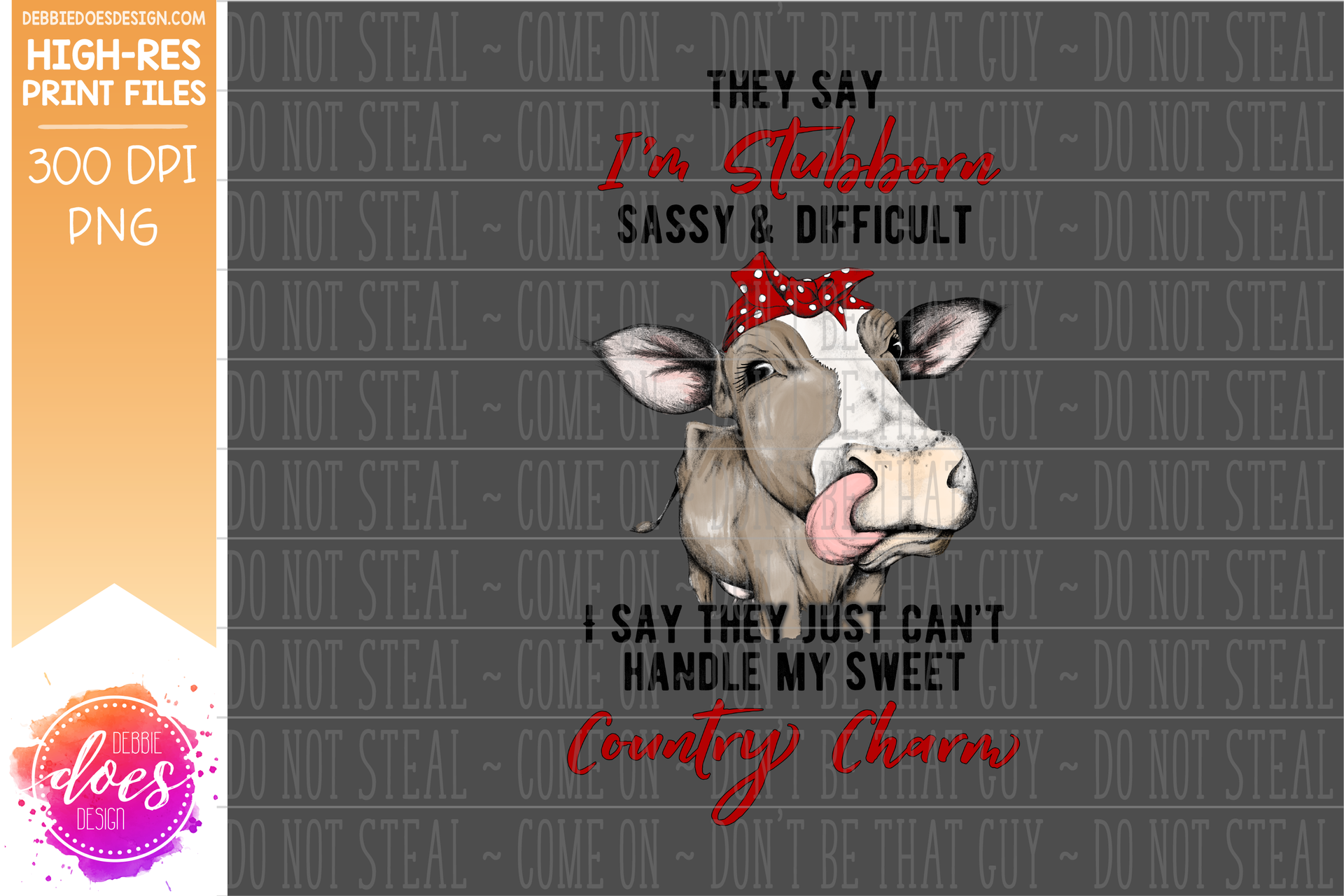 Stubborn Country Charm - Hand Drawn Brown Cow - Printable/Sublimation File