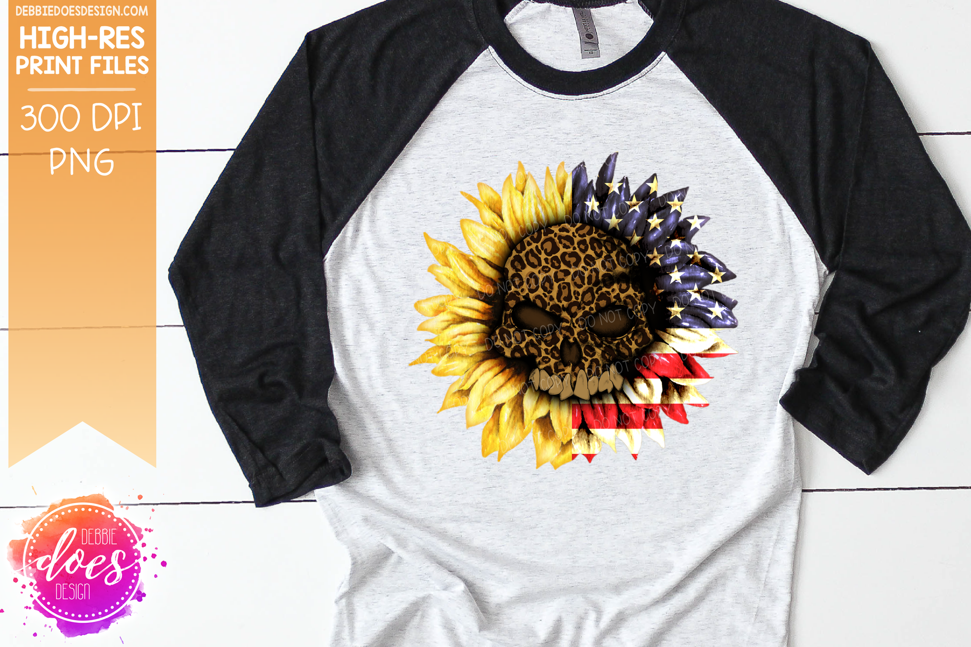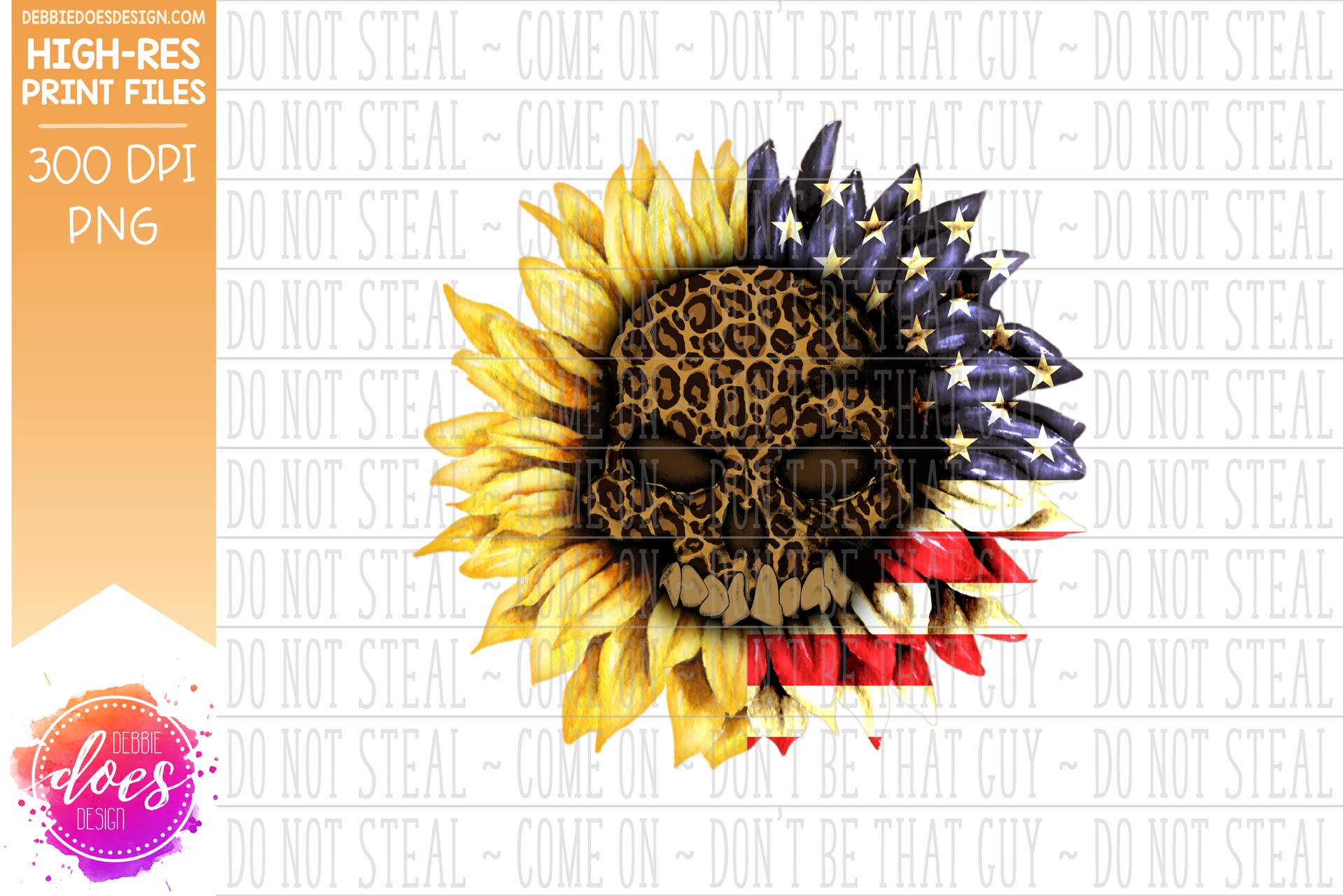 Sunflower Leopard Skull with US Flag - Printable/Sublimation File