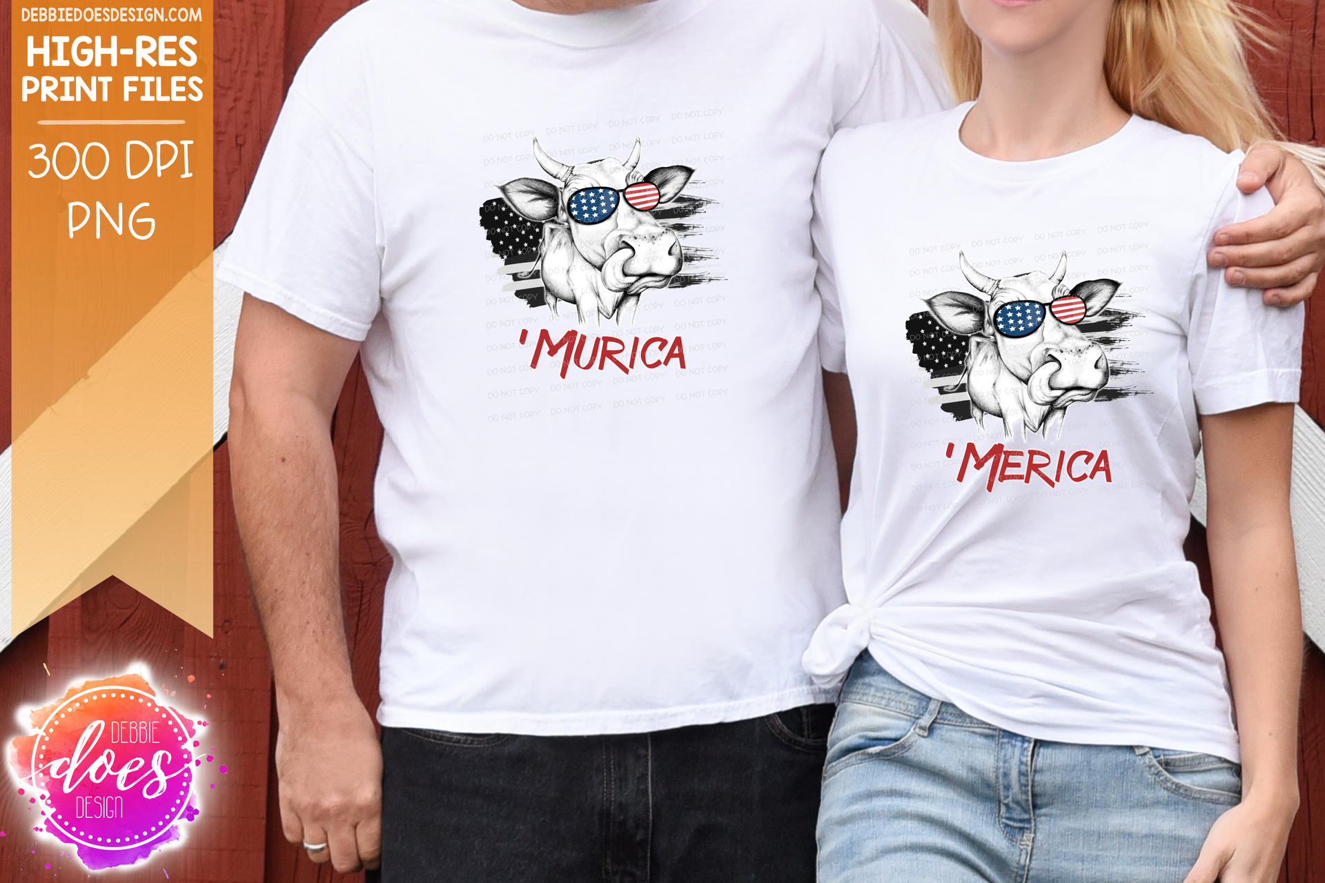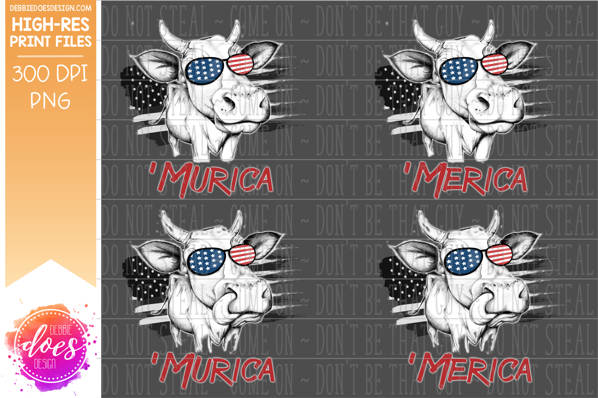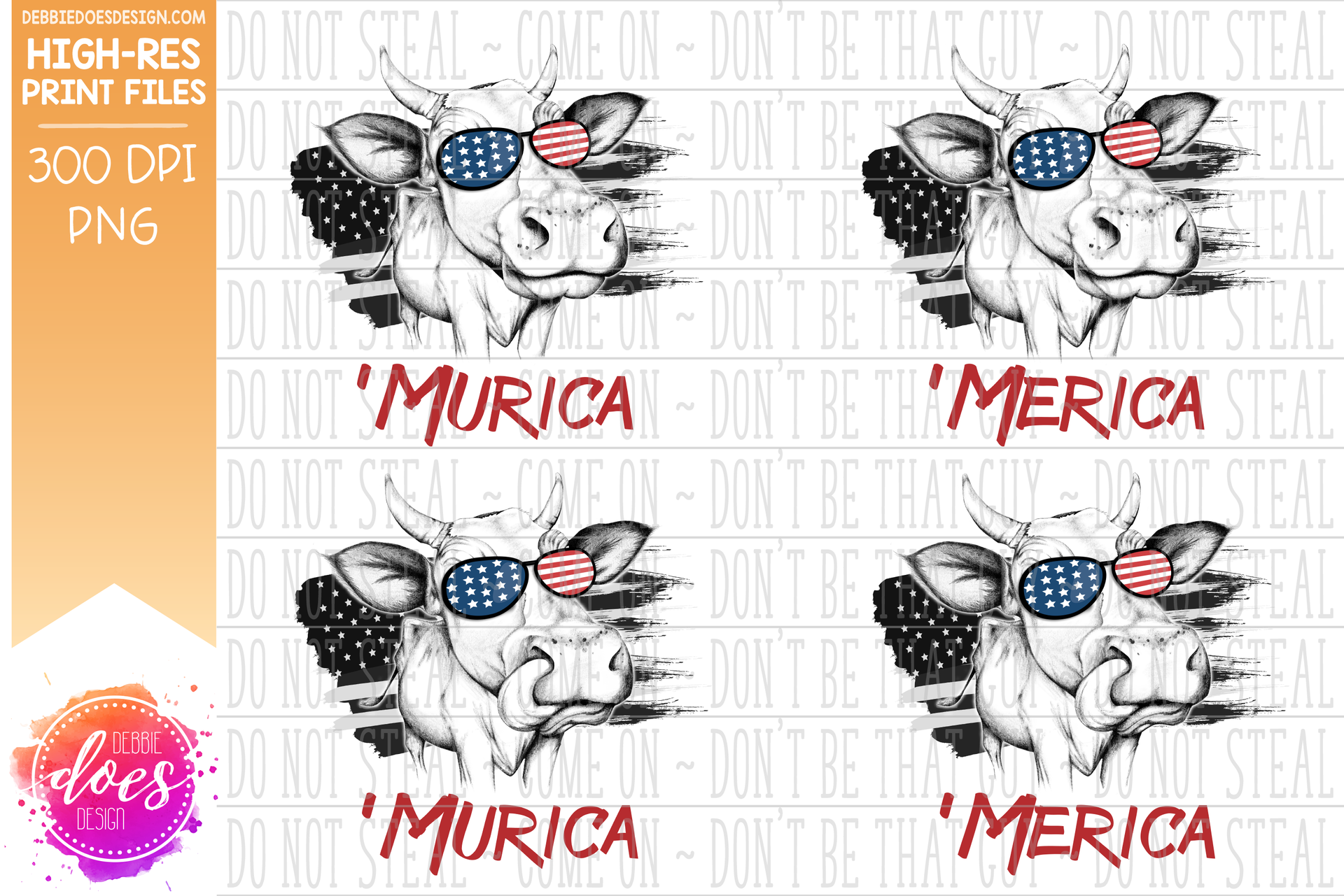 Sunglasses Flag 'Murica/'Merica Cows - 4th of July - USA - Hand Drawn Cow - 4 Versions included! - Sublimation/Printable Design