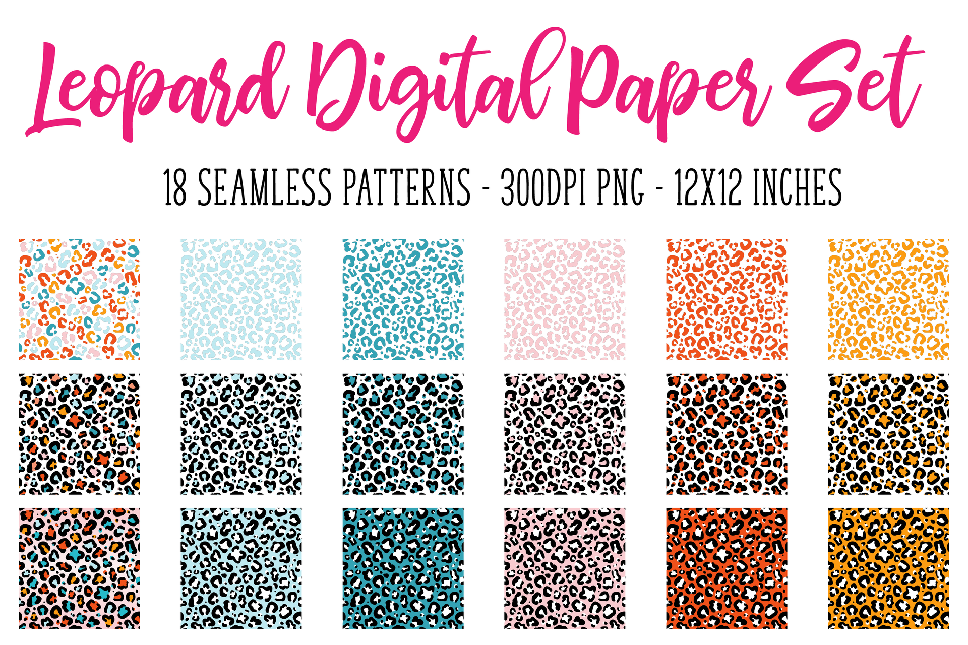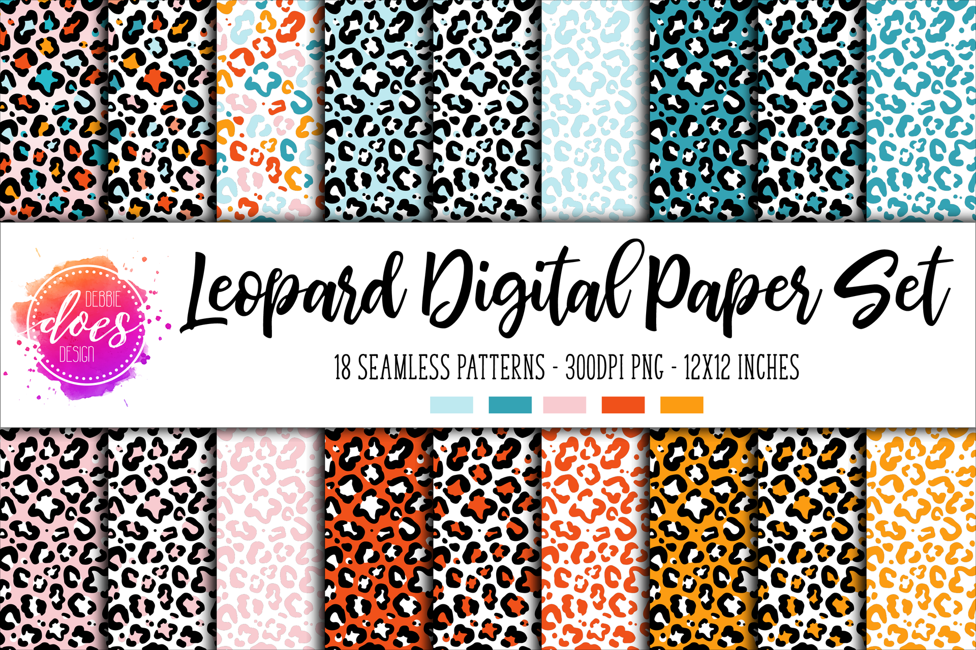 Teals & Oranges Leopard Digital Paper/Seamless Pattern Set - Design Elements