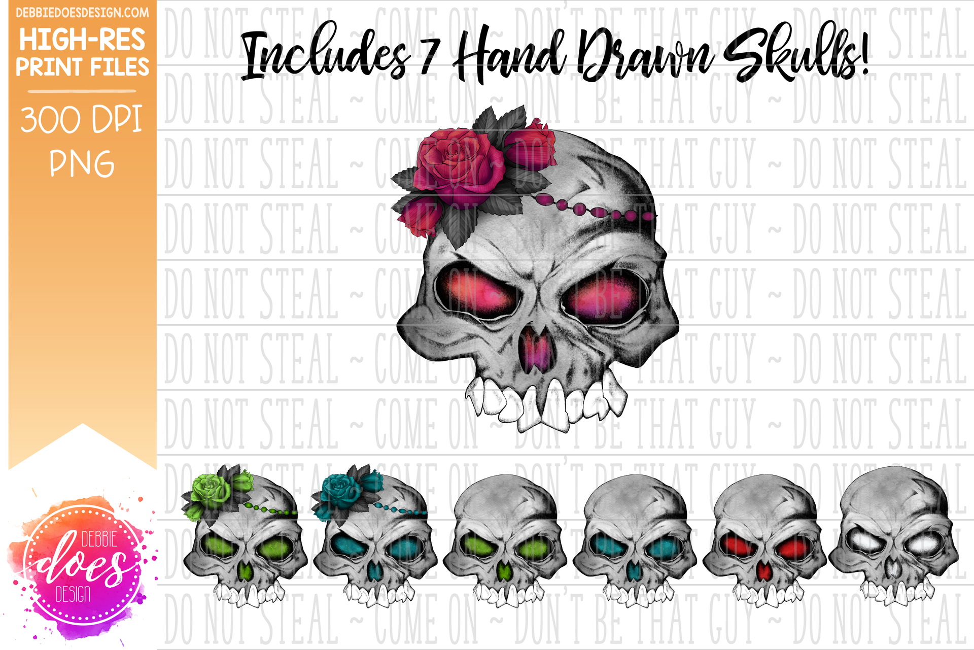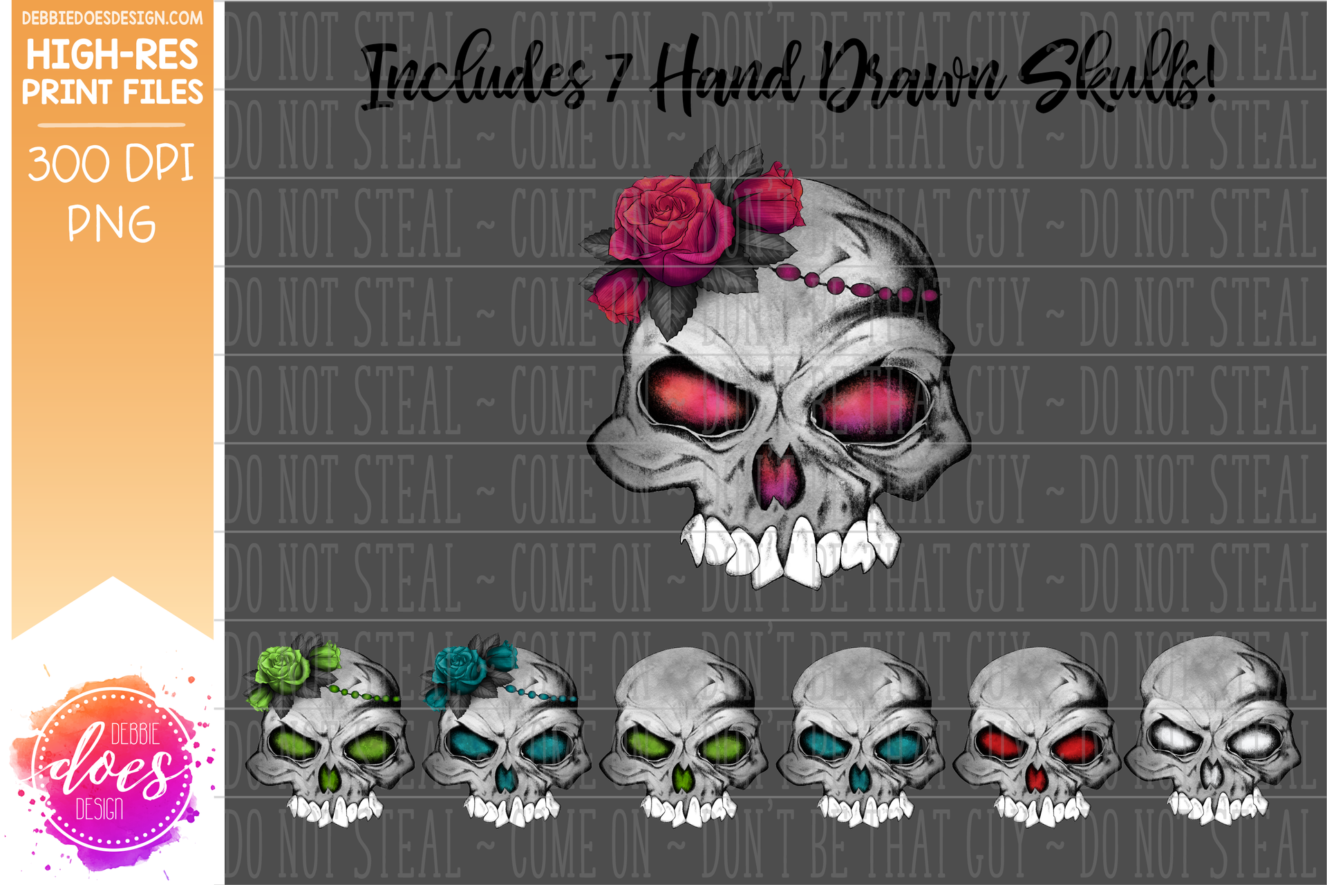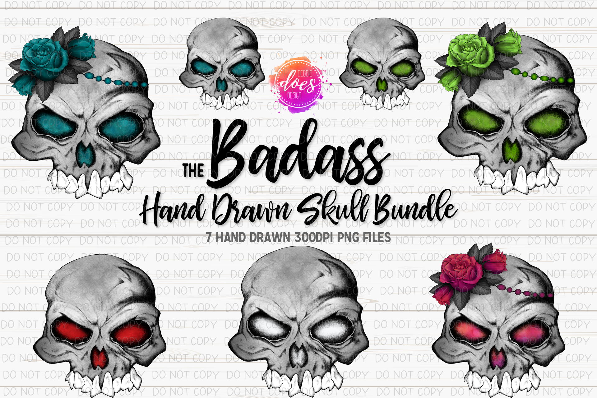 The Badass Hand Drawn Skull Bundle - Includes 7 Skulls! - Printable/Sublimation File