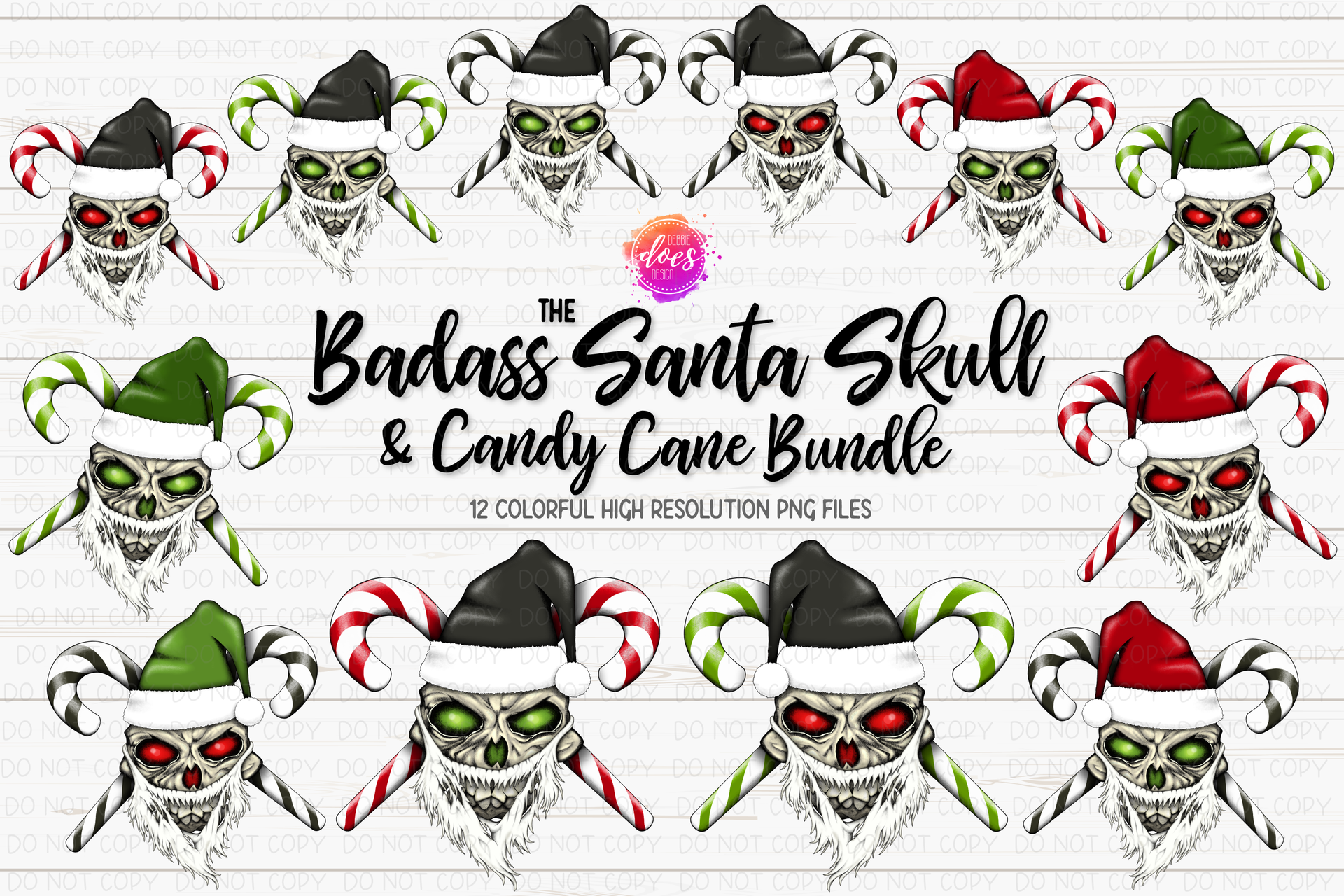 The Badass Santa Skull & Candy Cane Bundle - 12 Files! - Sublimation/Printable Design