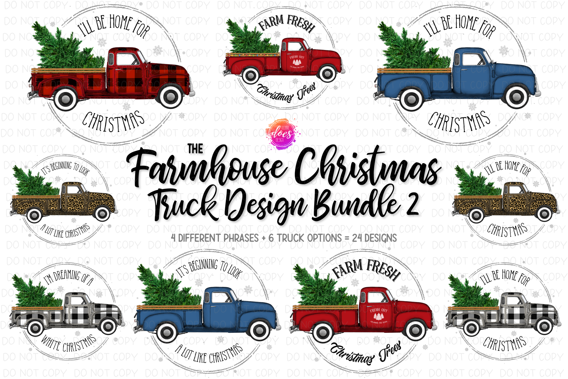 The Farmhouse Christmas Truck Design Bundle 2 - 24 designs! - Sublimation/Printable Design