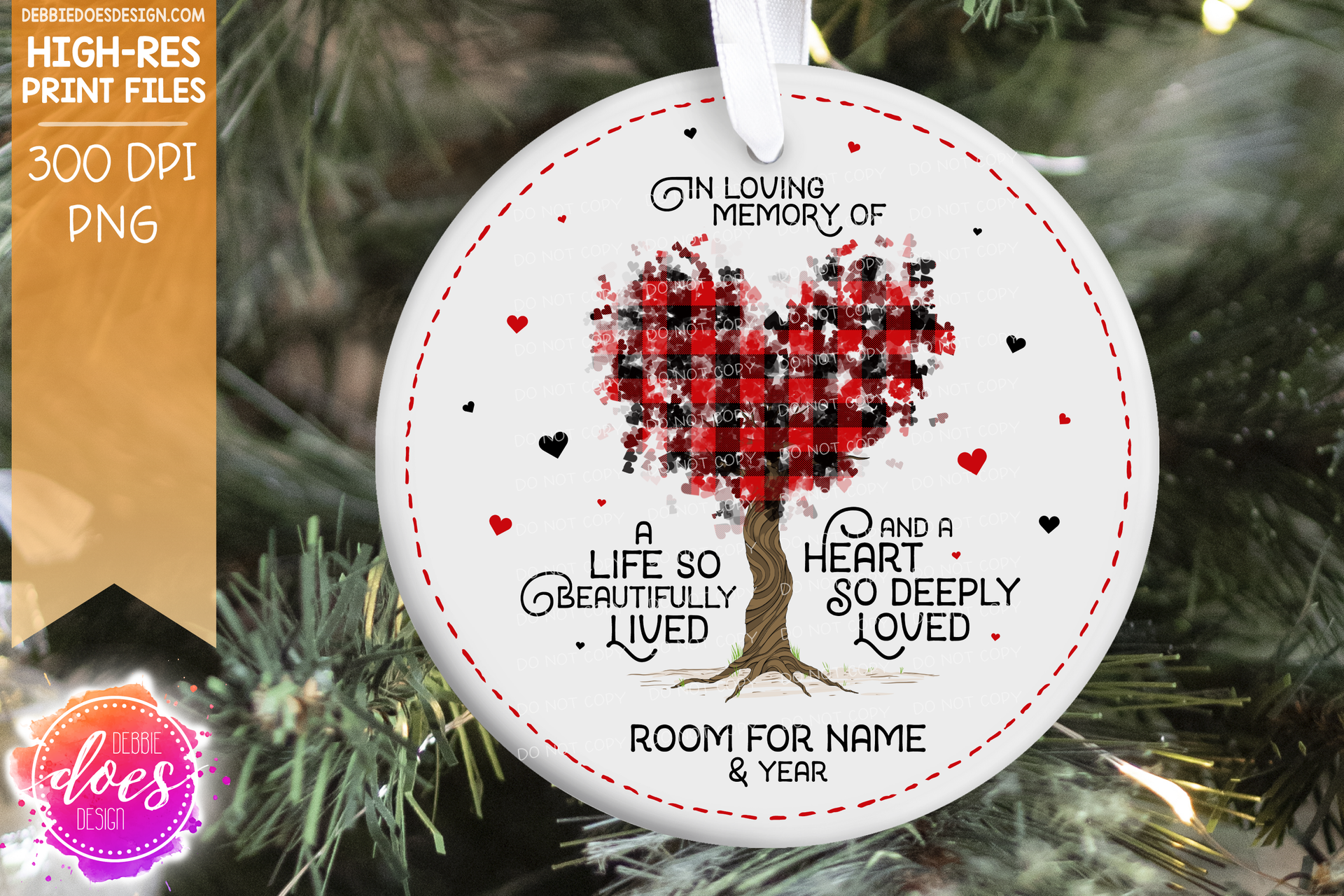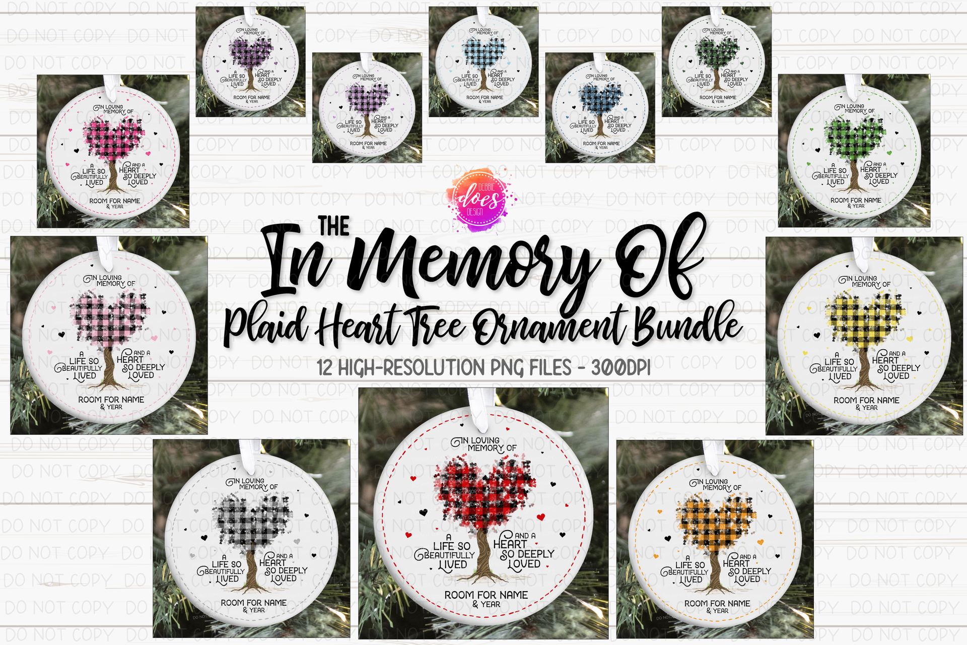 The In Memory Of - Plaid Heart Tree Ornament Bundle - Includes 12 Files! - Sublimation/Printable Design