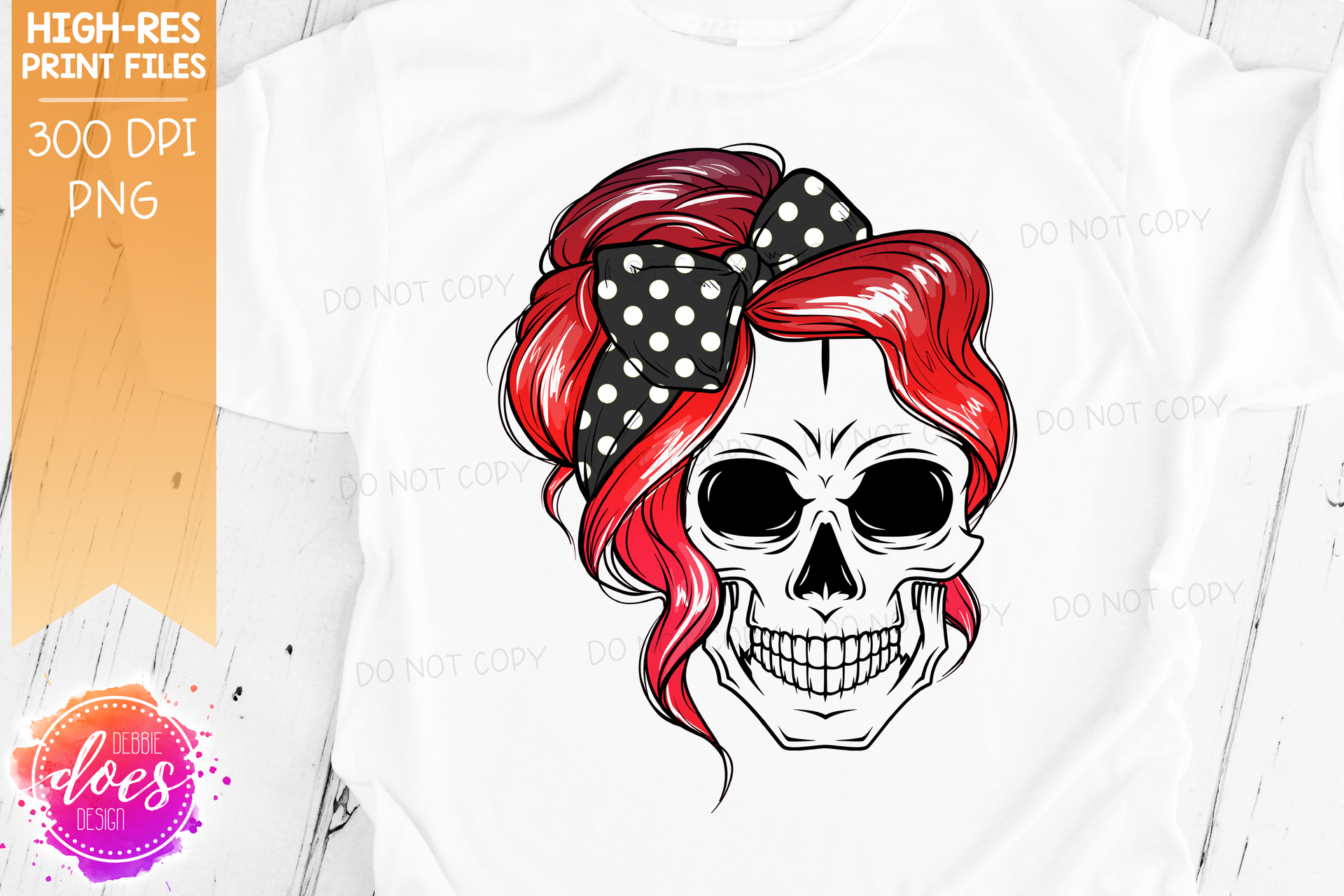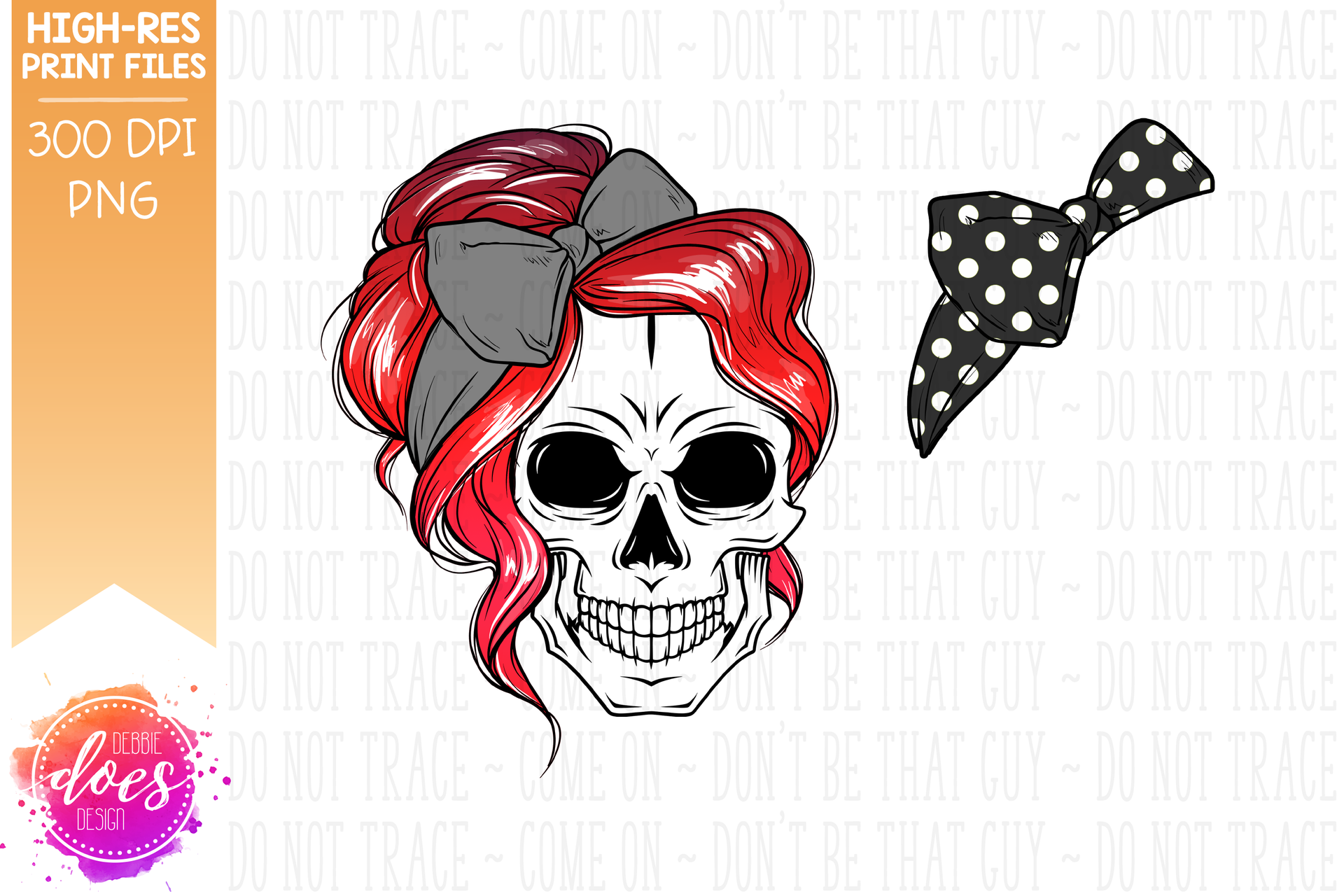 The Messy Bun Skull - Bright Red Ombre - Sublimation/Printable Design