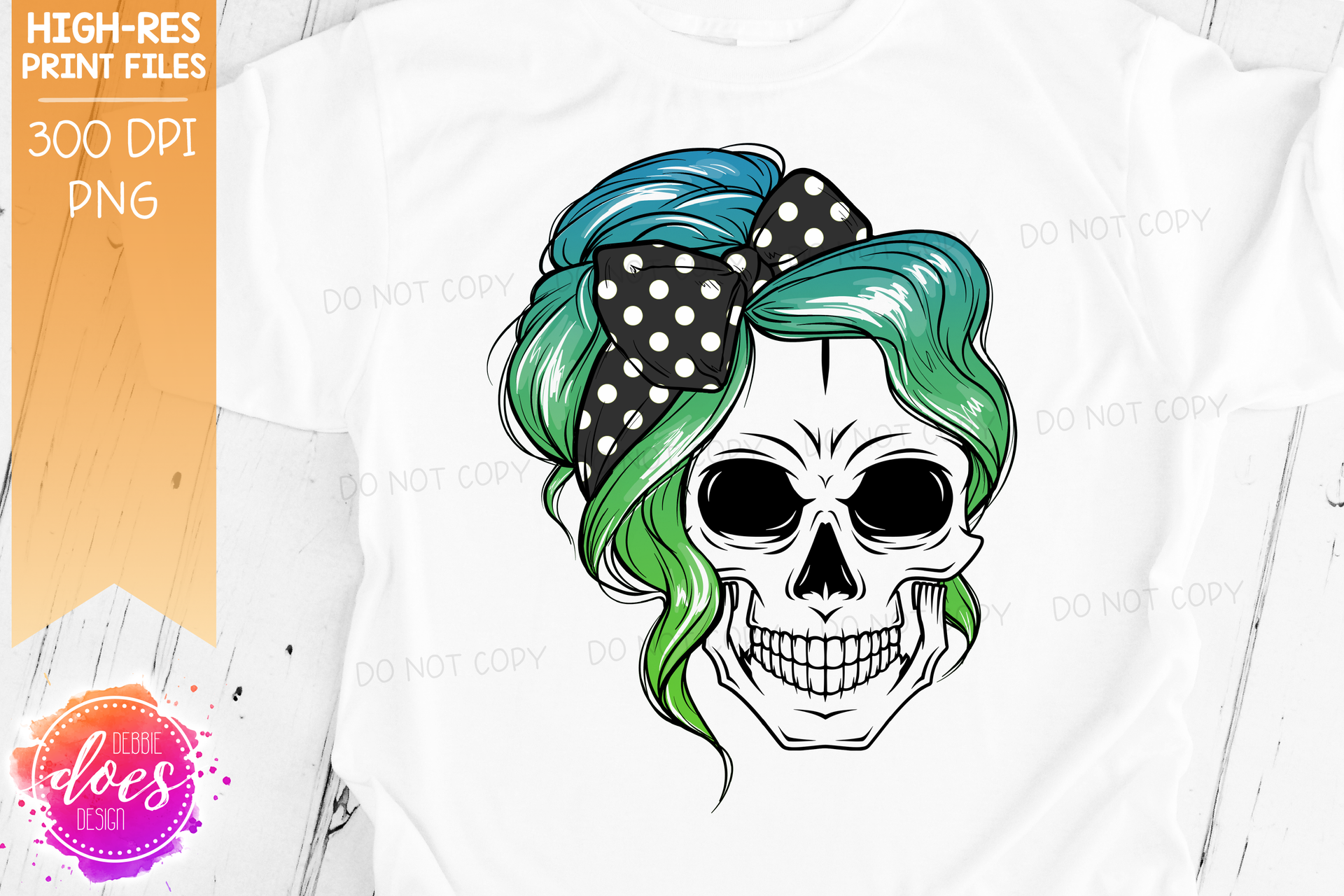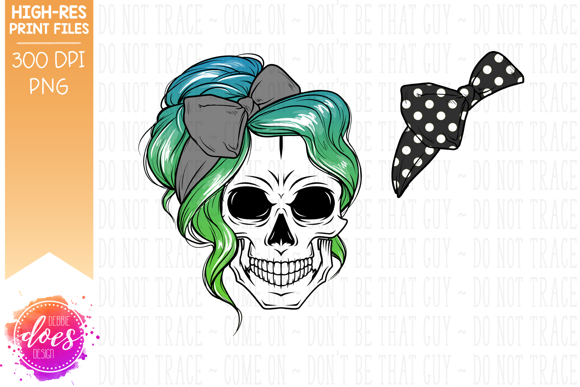 The Messy Bun Skull - Green Blue Ombre - Sublimation/Printable Design