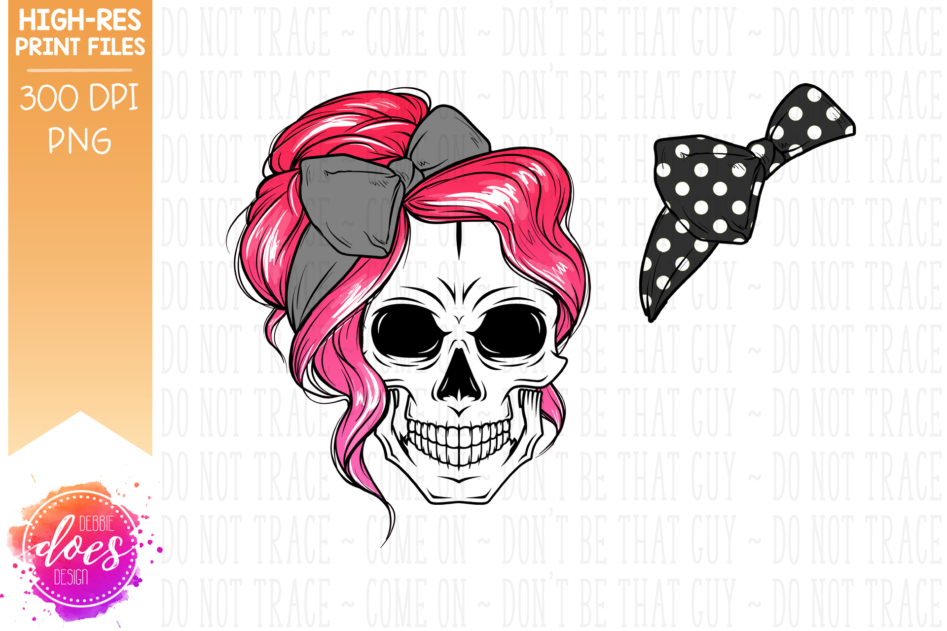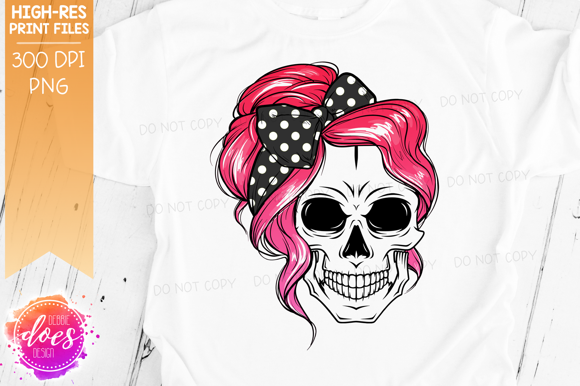 The Messy Bun Skull - Hot Pink Ombre - Sublimation/Printable Design