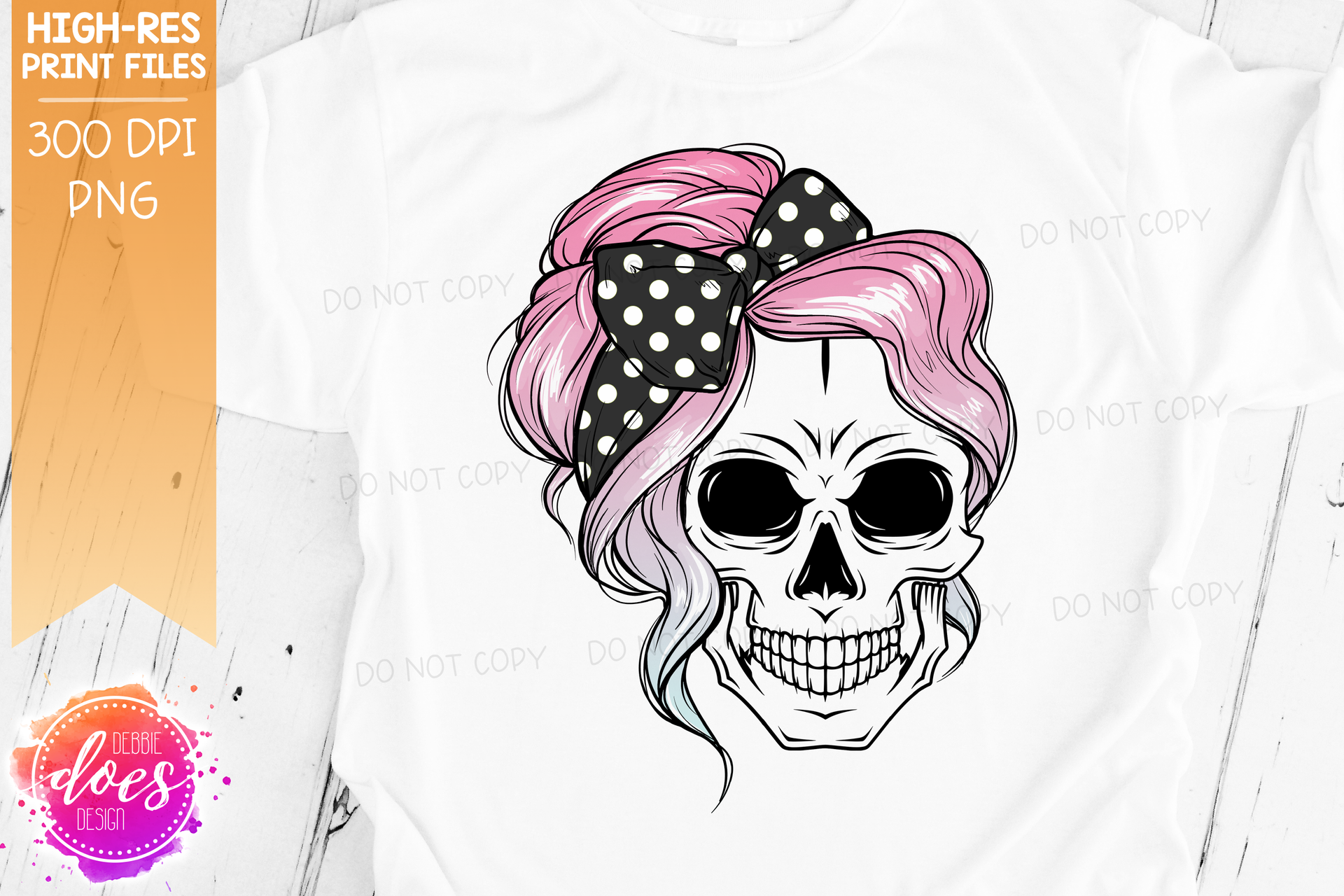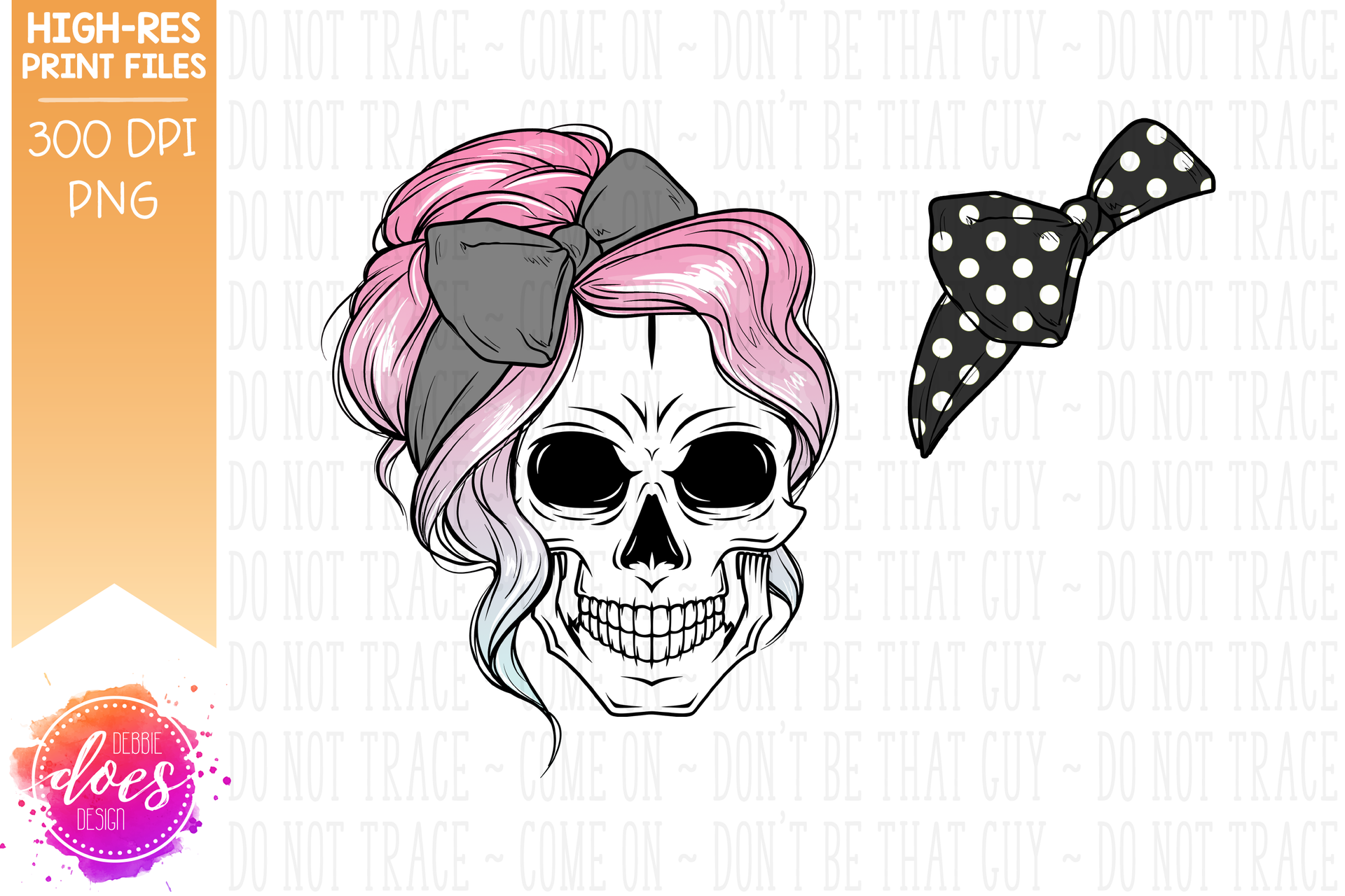 The Messy Bun Skull - Pink Ombre - Sublimation/Printable Design