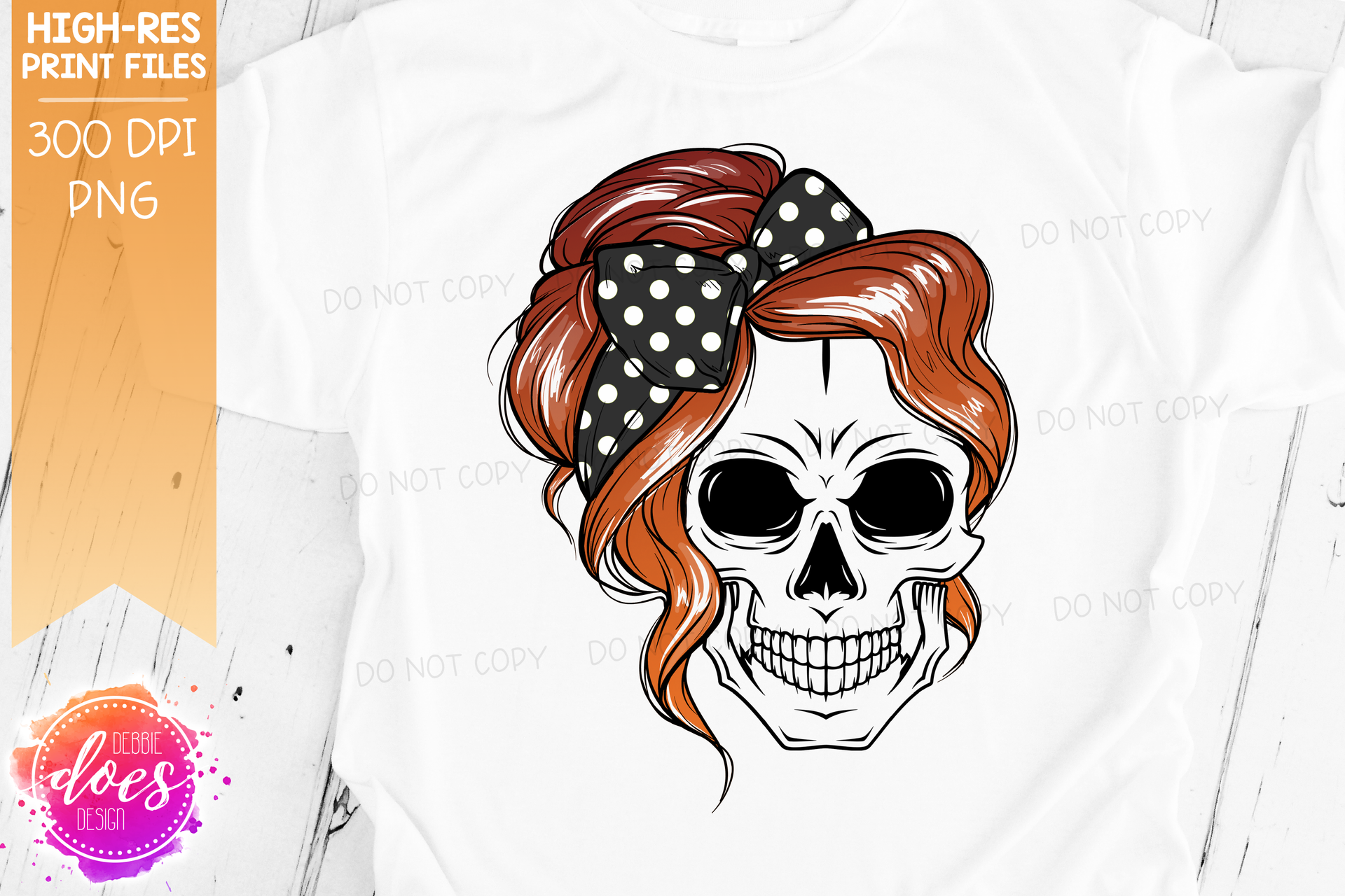 The Messy Bun Skull - Red Ombre - Sublimation/Printable Design
