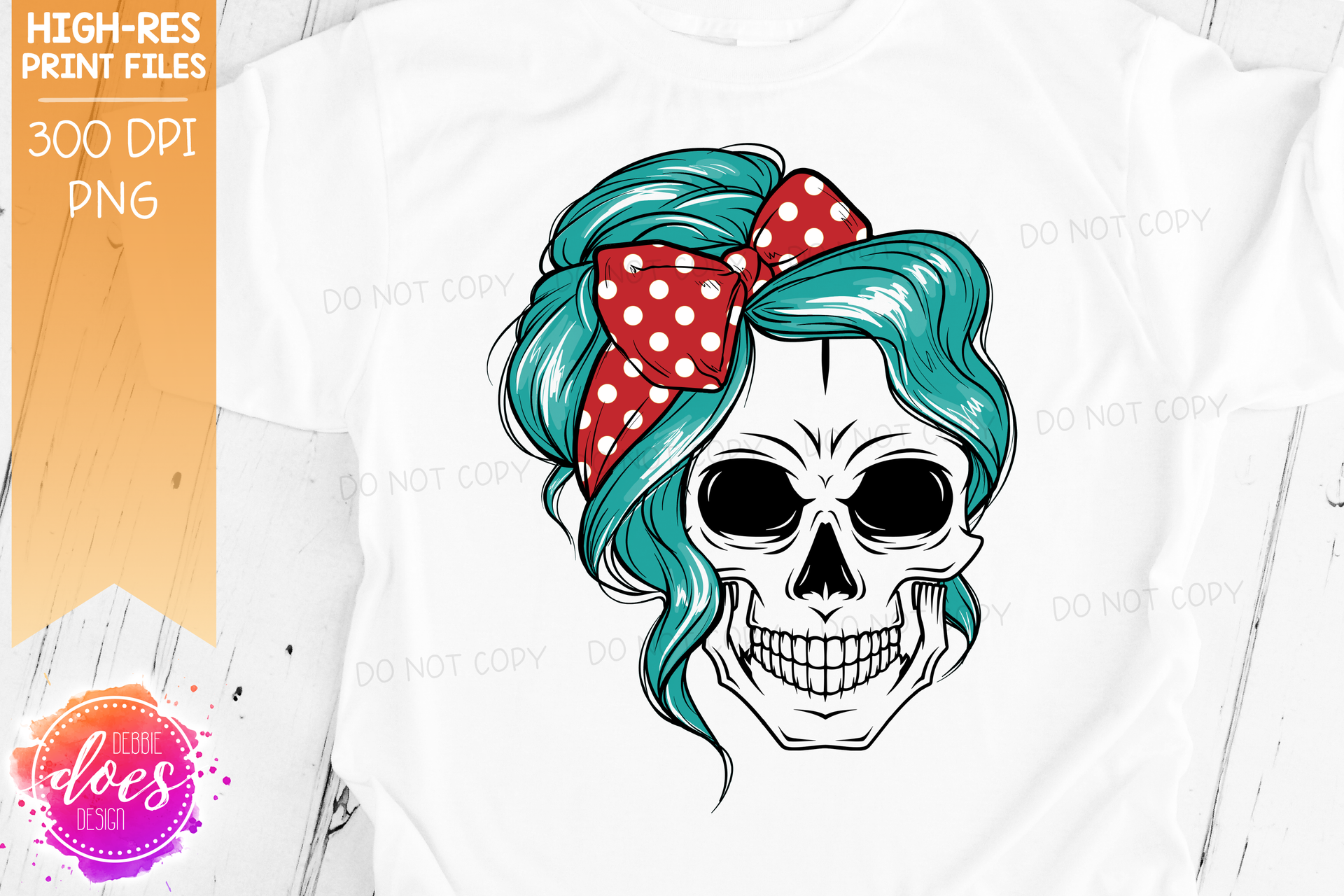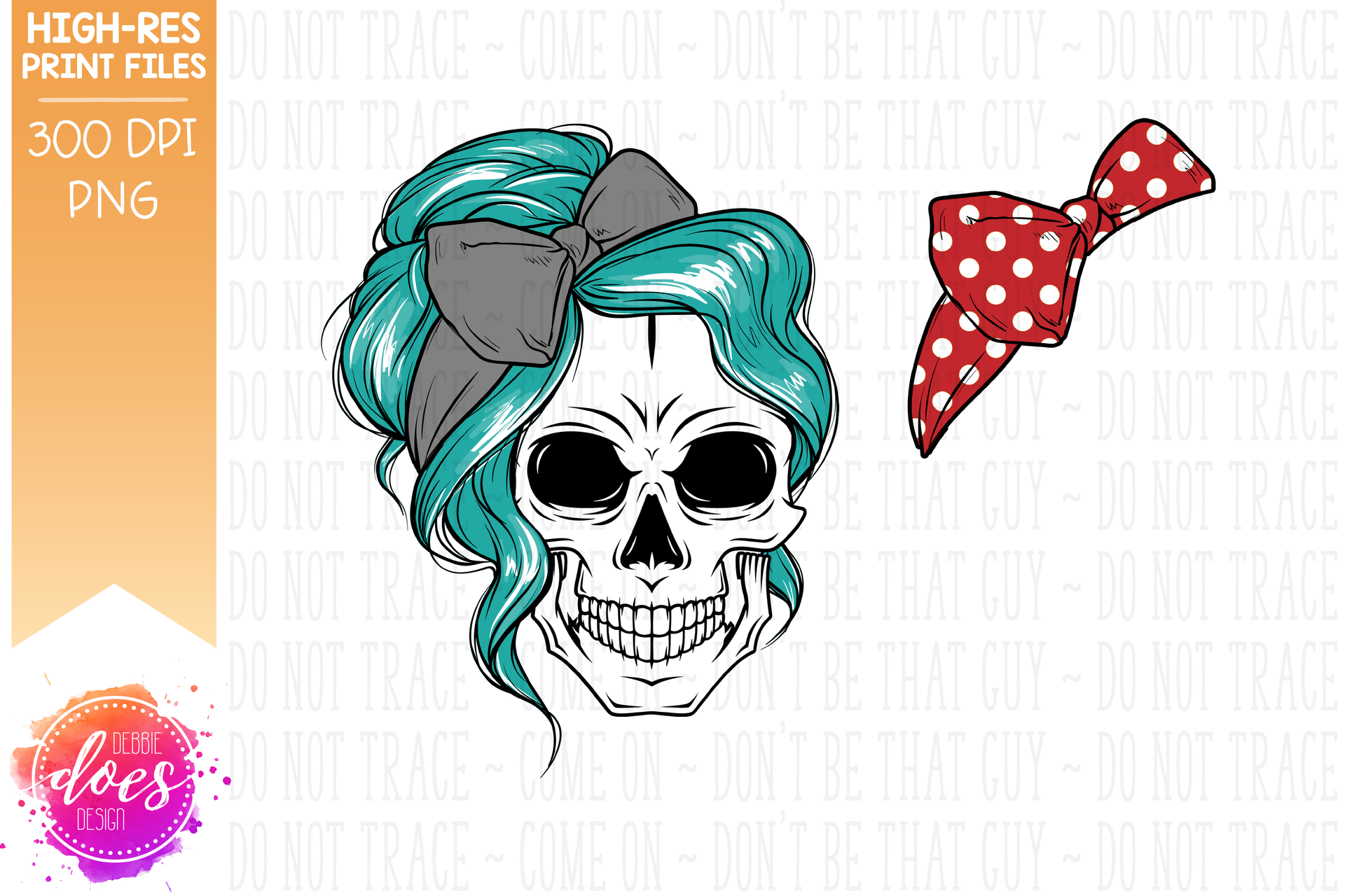 The Messy Bun Skull - Teal - Sublimation/Printable Design