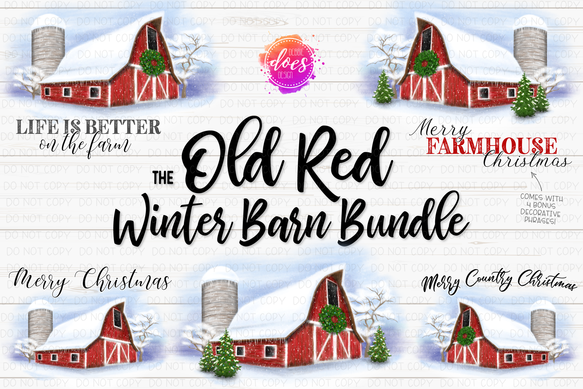 The Old Red Winter Barn Bundle - with Bonus Decorative Phrases! - Sublimation/Printable Design