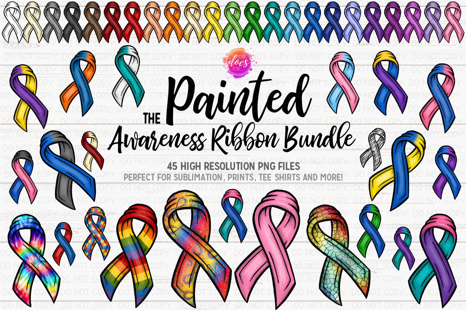 The Painted Awareness Ribbon Bundle - 45 Colors/Patterns - Design Elements