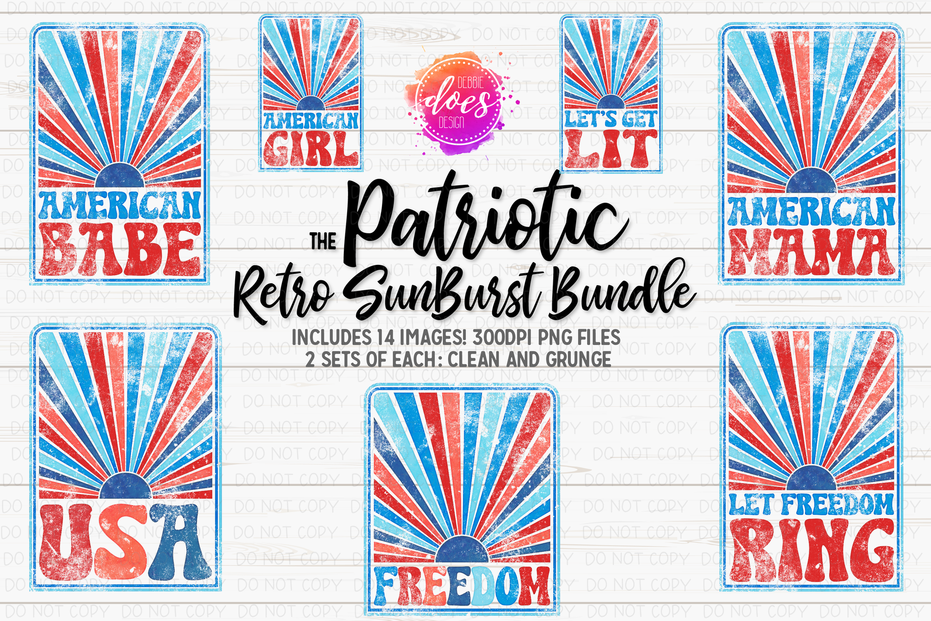 The Patriotic Retro Sunburst Bundle - Includes 14 Files! - Printable/Sublimation Designs