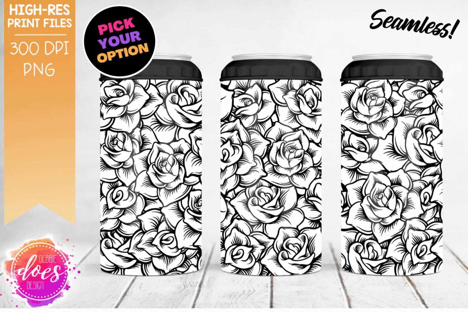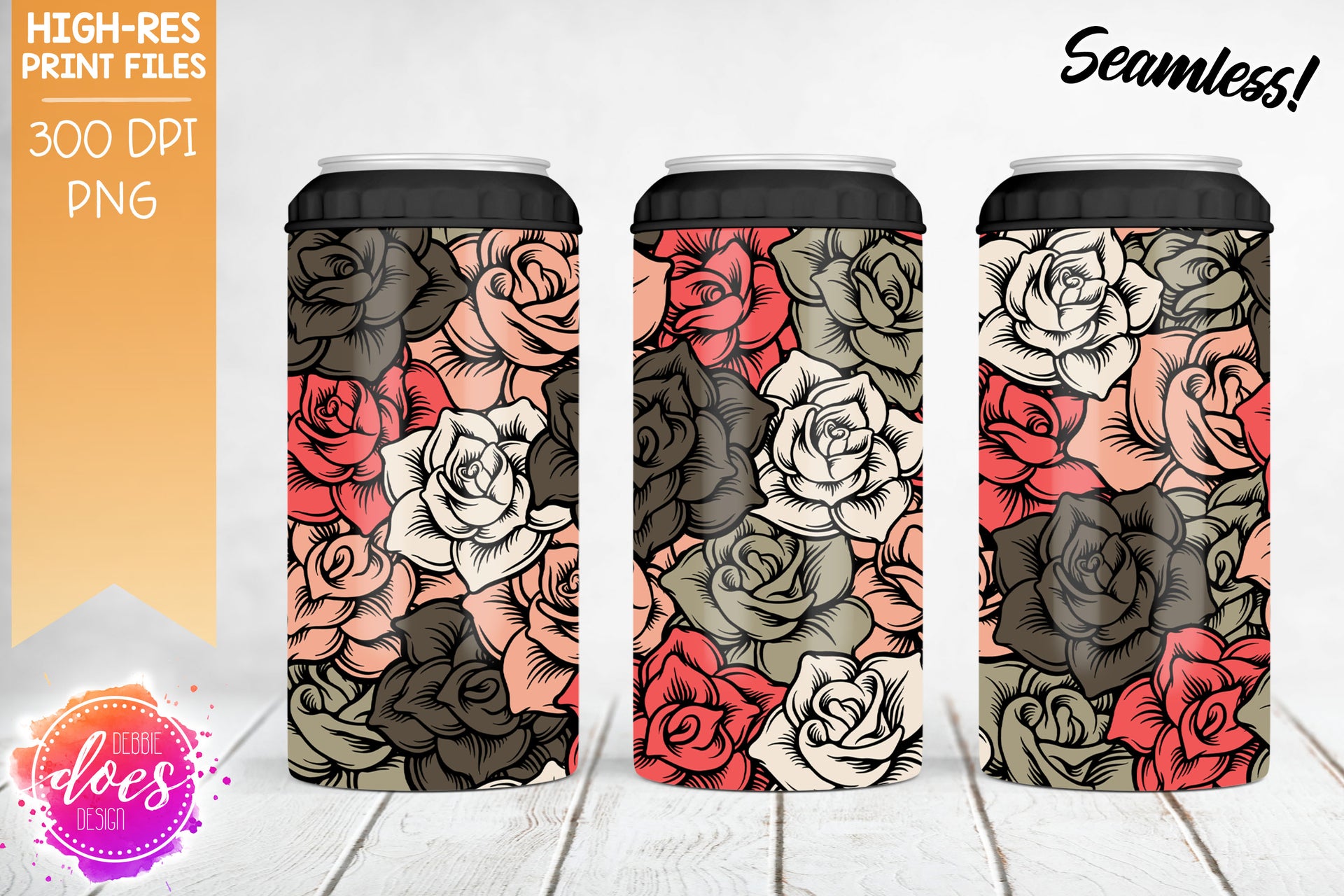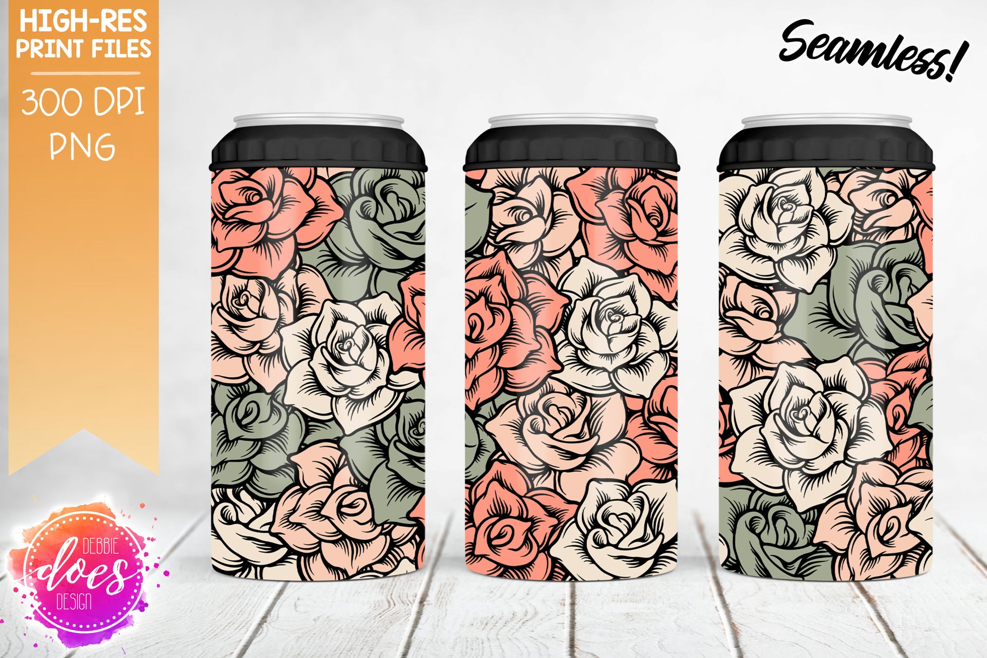 The Seamless Rose 4-in-1 Can Cooler Wrap - Choose Your Color - Printable/Sublimation Designs