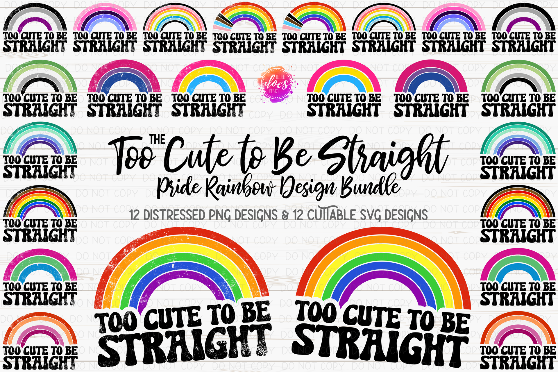 The Too Cute to Be Straight Pride Rainbow Bundle - Includes 12 flags/Rainbows! - Sublimation Designs & SVG Designs!