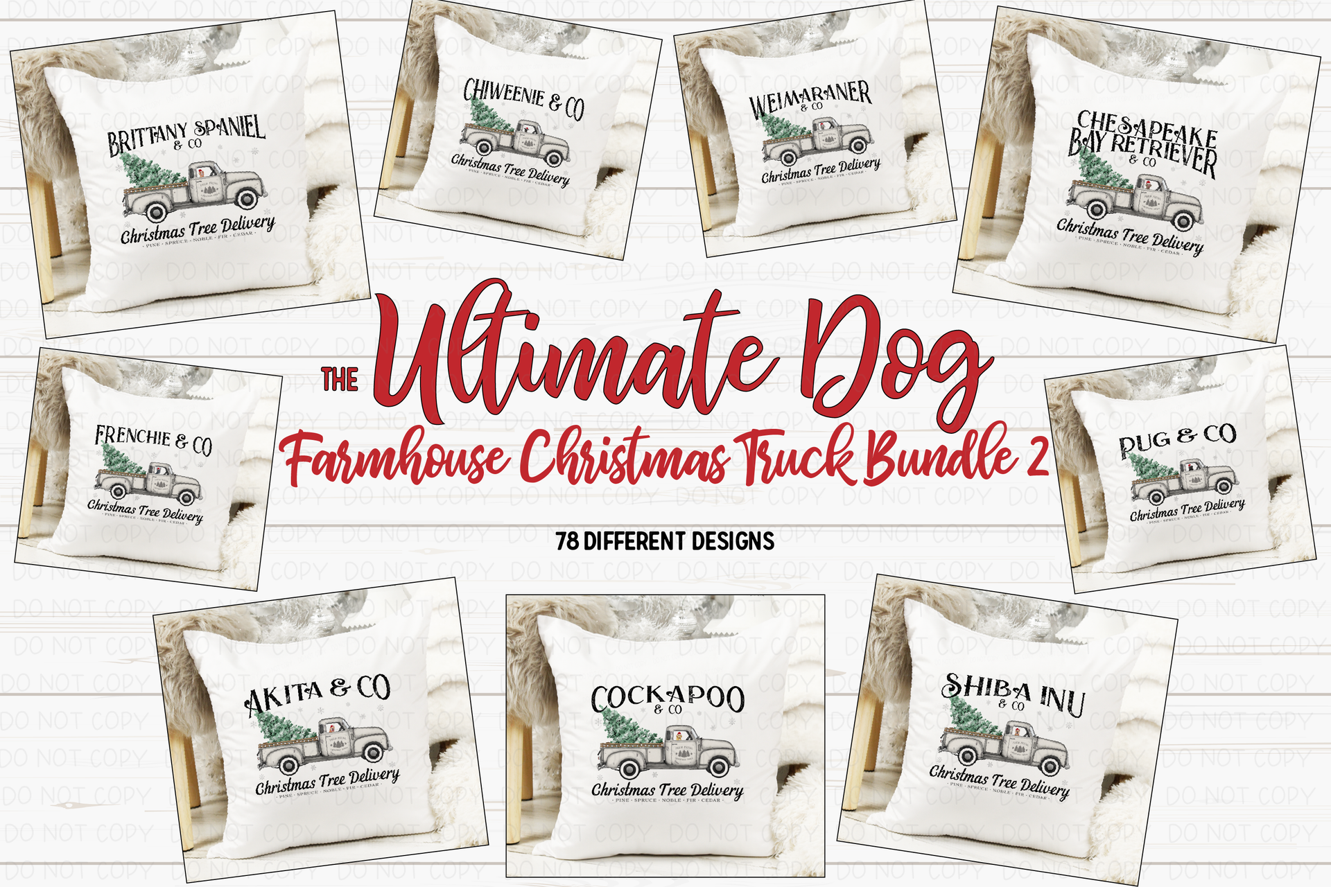The Ultimate Dog Farmhouse Christmas Truck Bundle 2 - 78 Sublimation/Printable Designs!