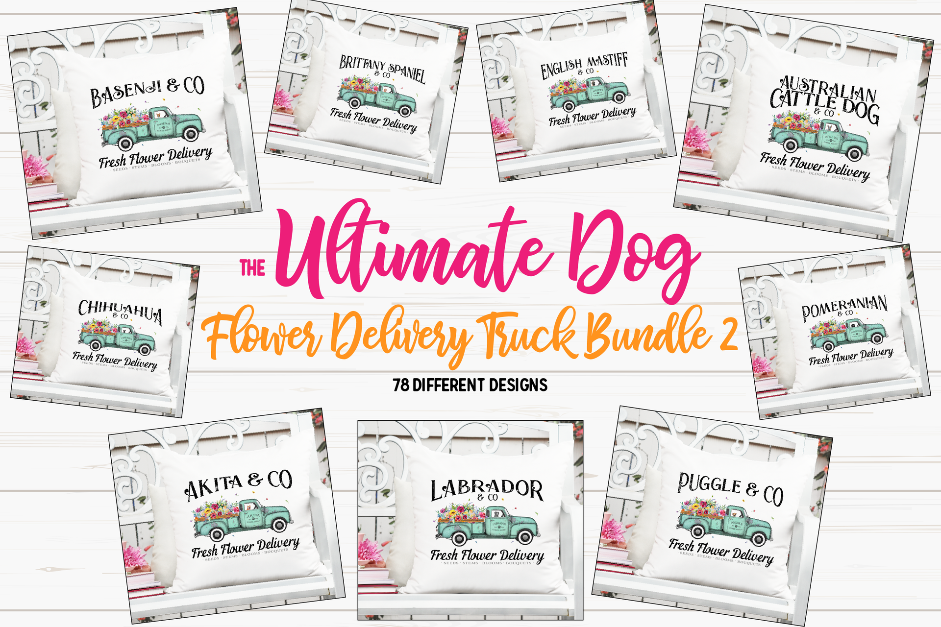 The Ultimate Dog Flower Delivery Truck Bundle 2 - 78 Sublimation/Printable Designs!