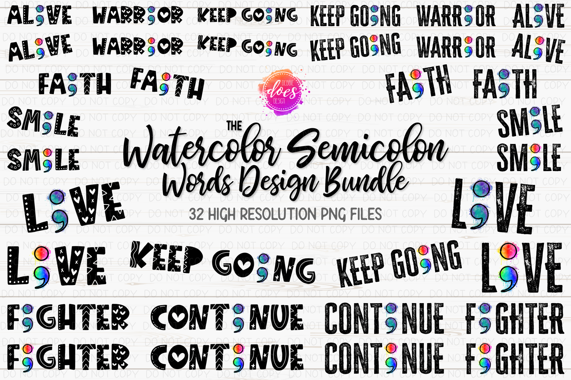 The Watercolor Semicolon Words Design Bundle - Suicide Prevention - Printable/Sublimation Designs