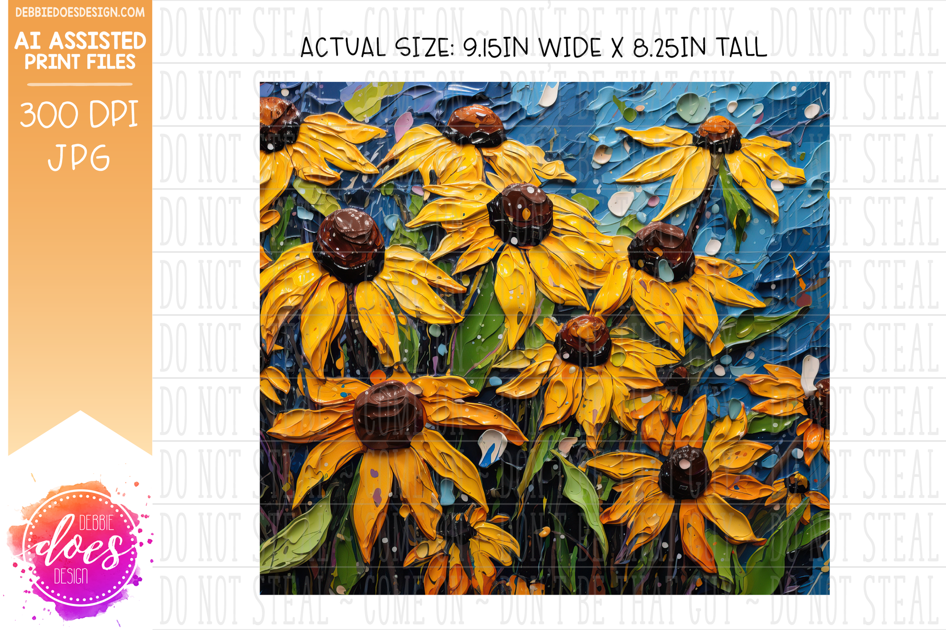 Thick Acrylic Painting - Black Eyed Susans 1 - Tumbler - Printable/Sublimation Design