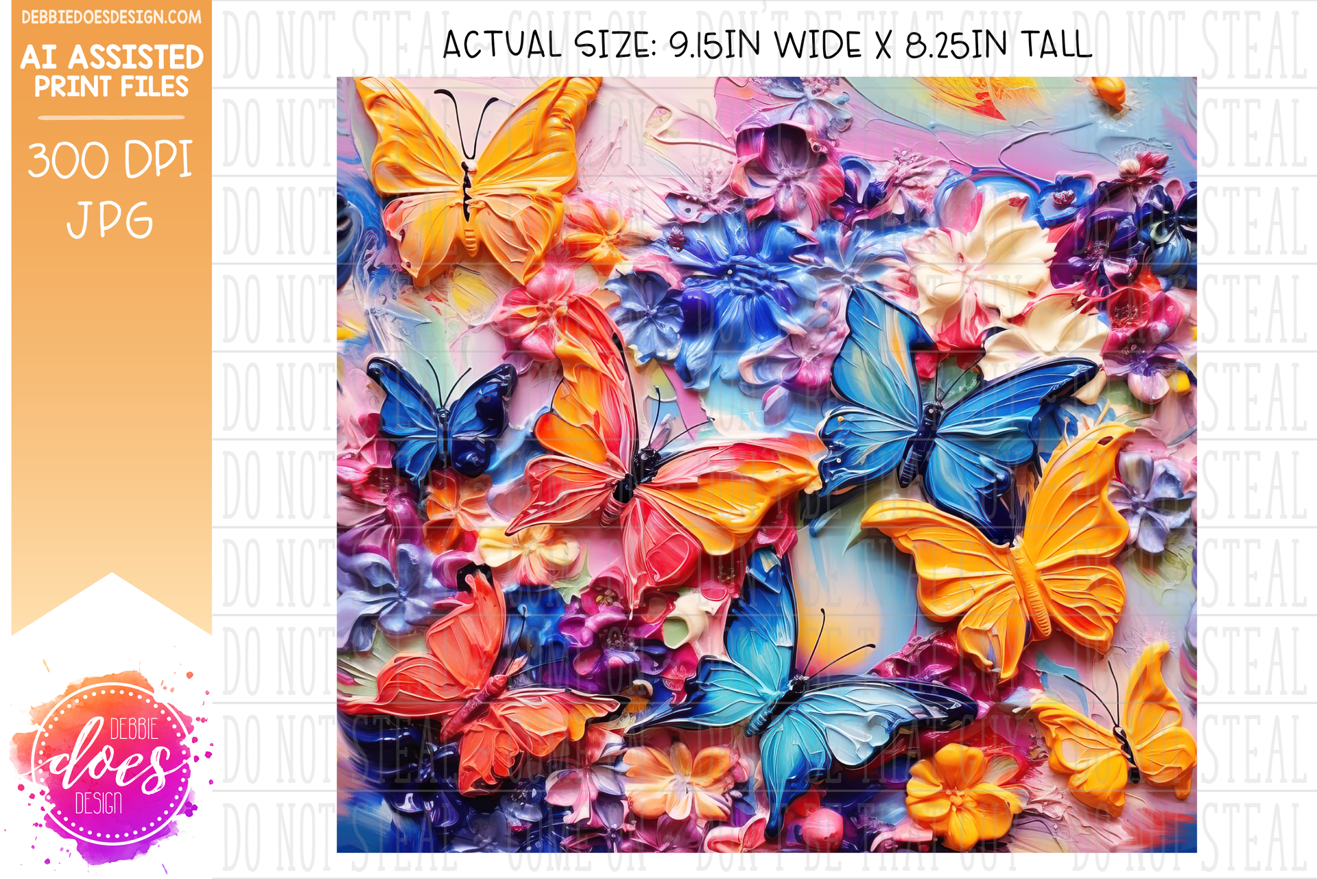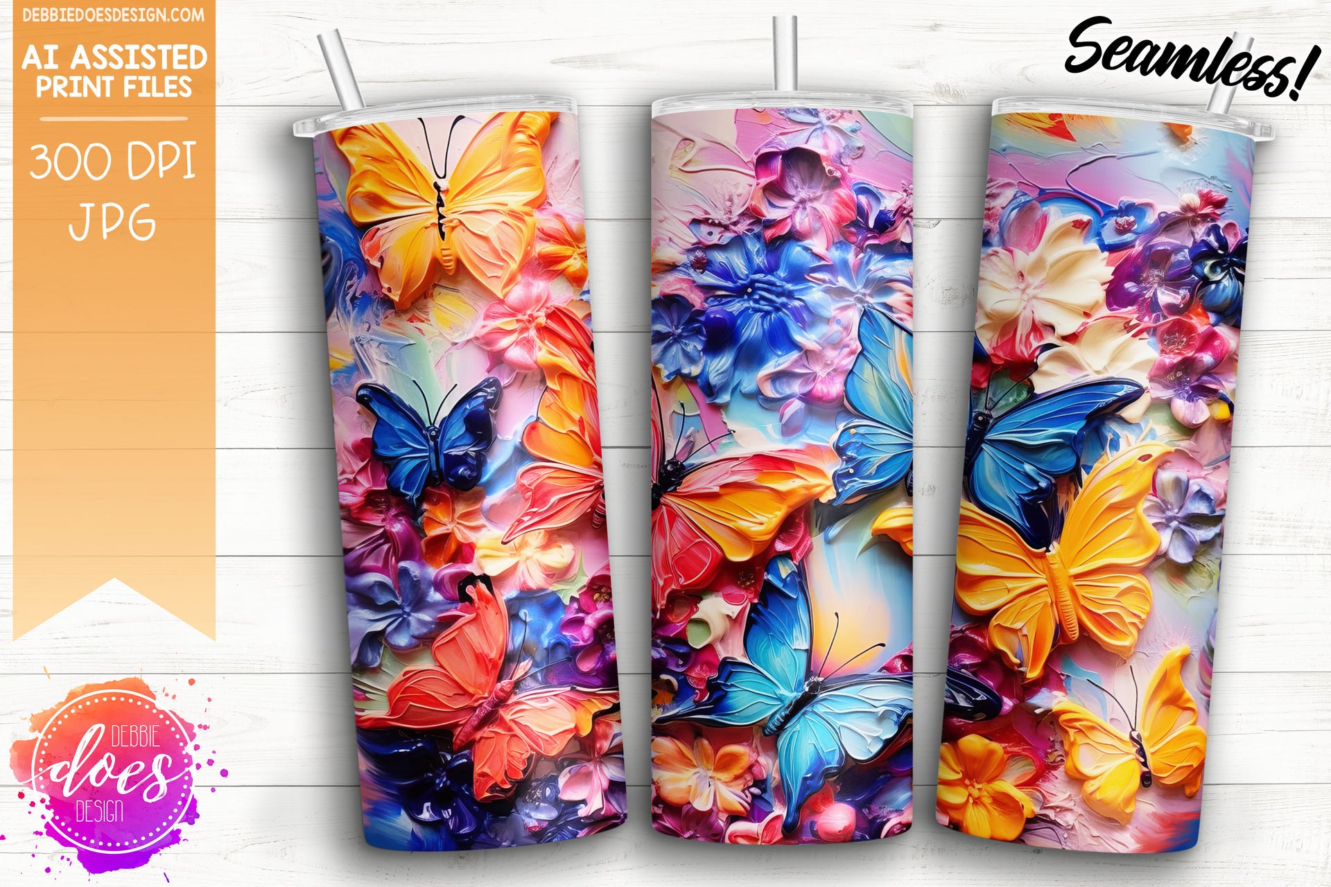 Thick Acrylic Painting - Butterflies and Flowers 1 - Tumbler - Printable/Sublimation Design