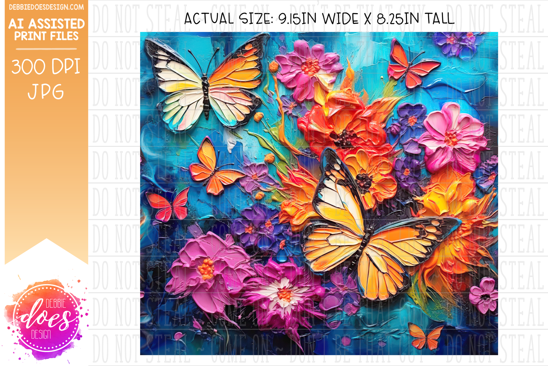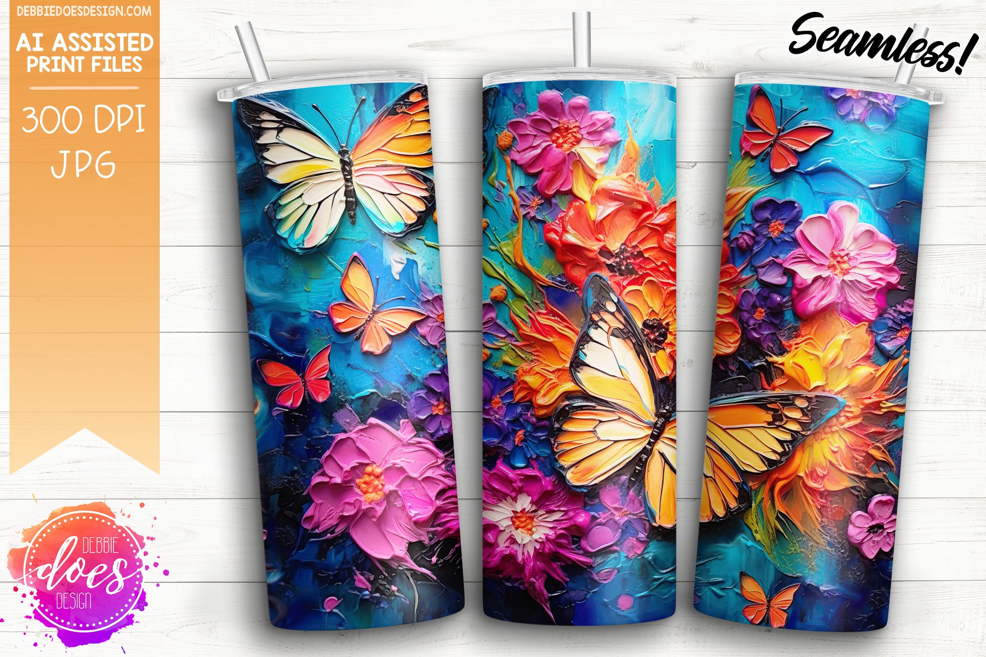 Thick Acrylic Painting - Butterflies and Flowers 3 - Tumbler - Printable/Sublimation Design