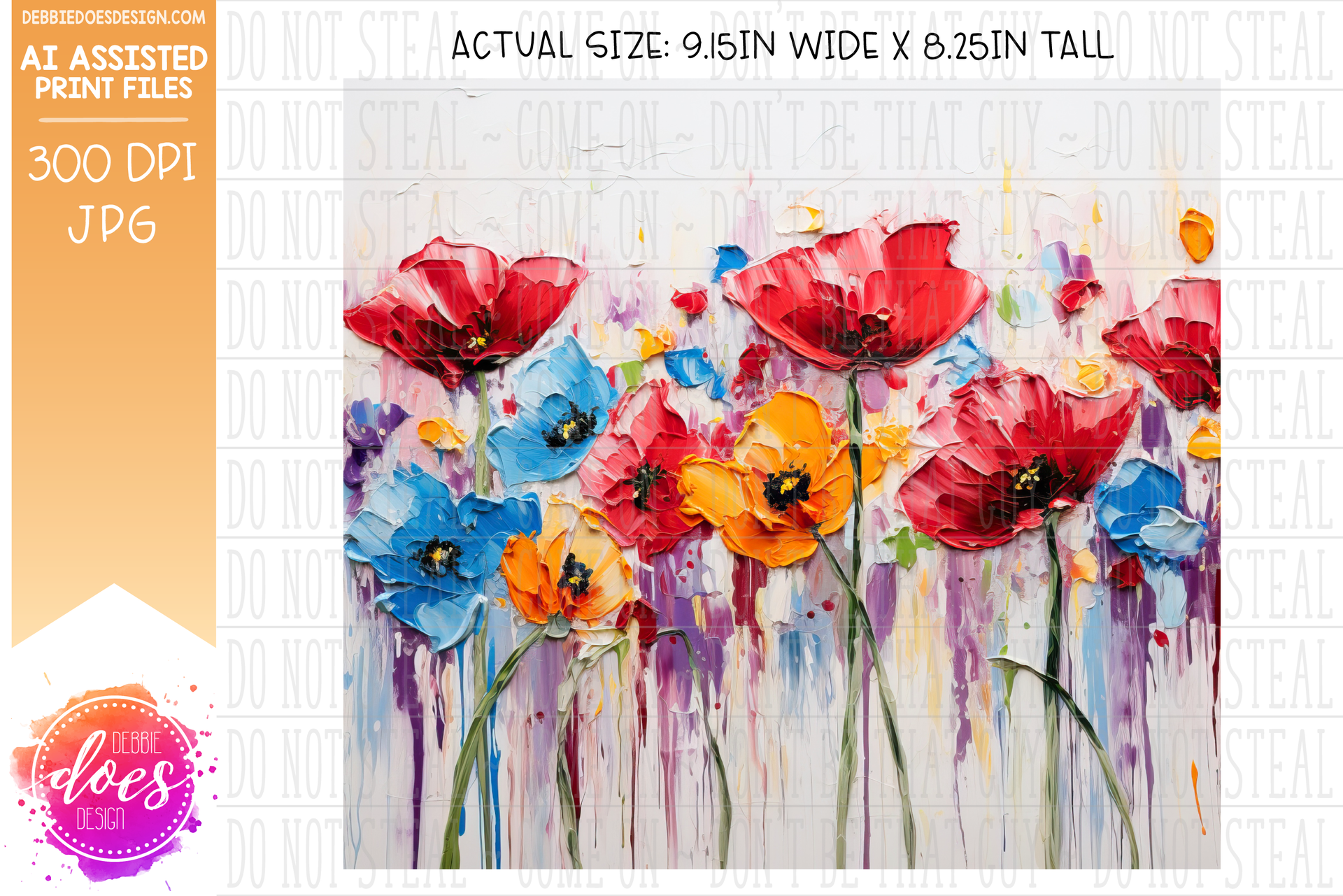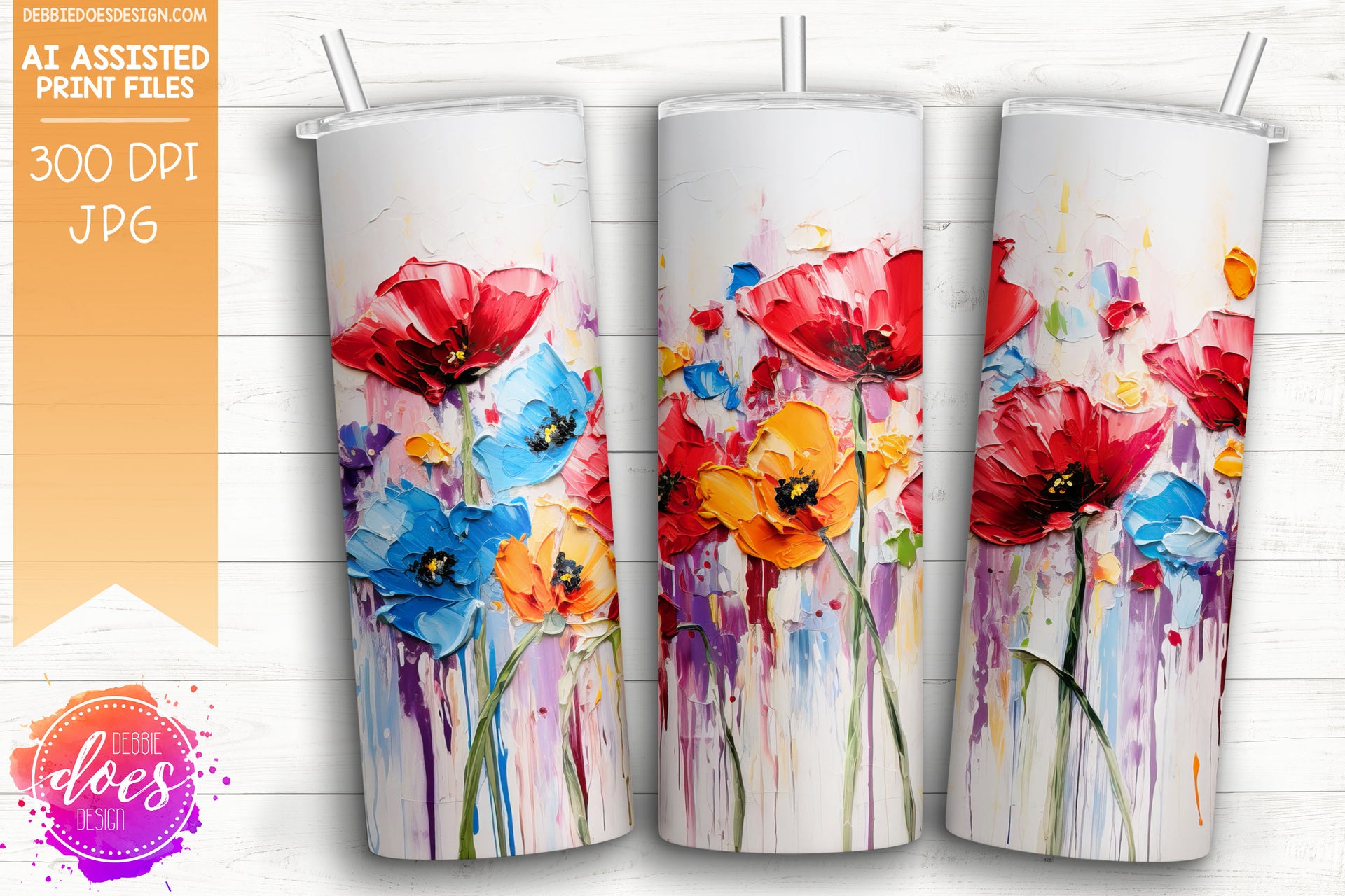Thick Acrylic Painting - Colorful Poppies 1 - Tumbler - Printable/Sublimation Design