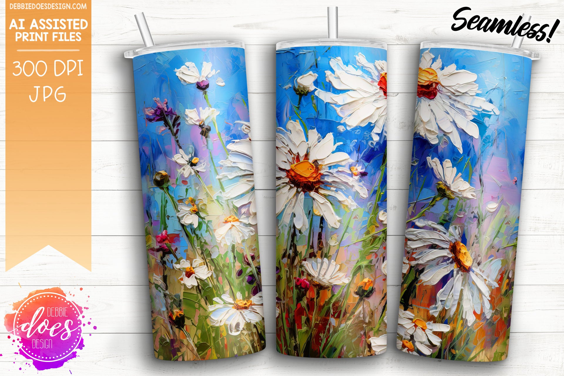 Thick Acrylic Painting - Daisies 1 - Tumbler - Printable/Sublimation Design
