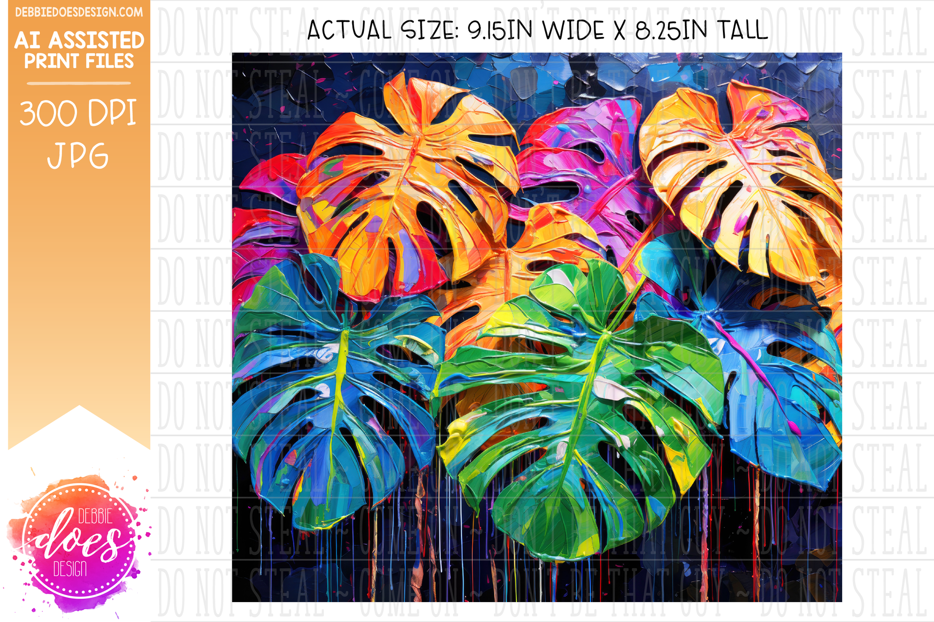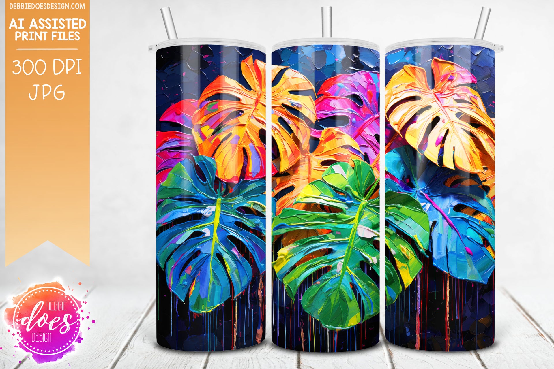 Thick Acrylic Painting - Monstera Leaves 1 - Tumbler - Printable/Sublimation Design