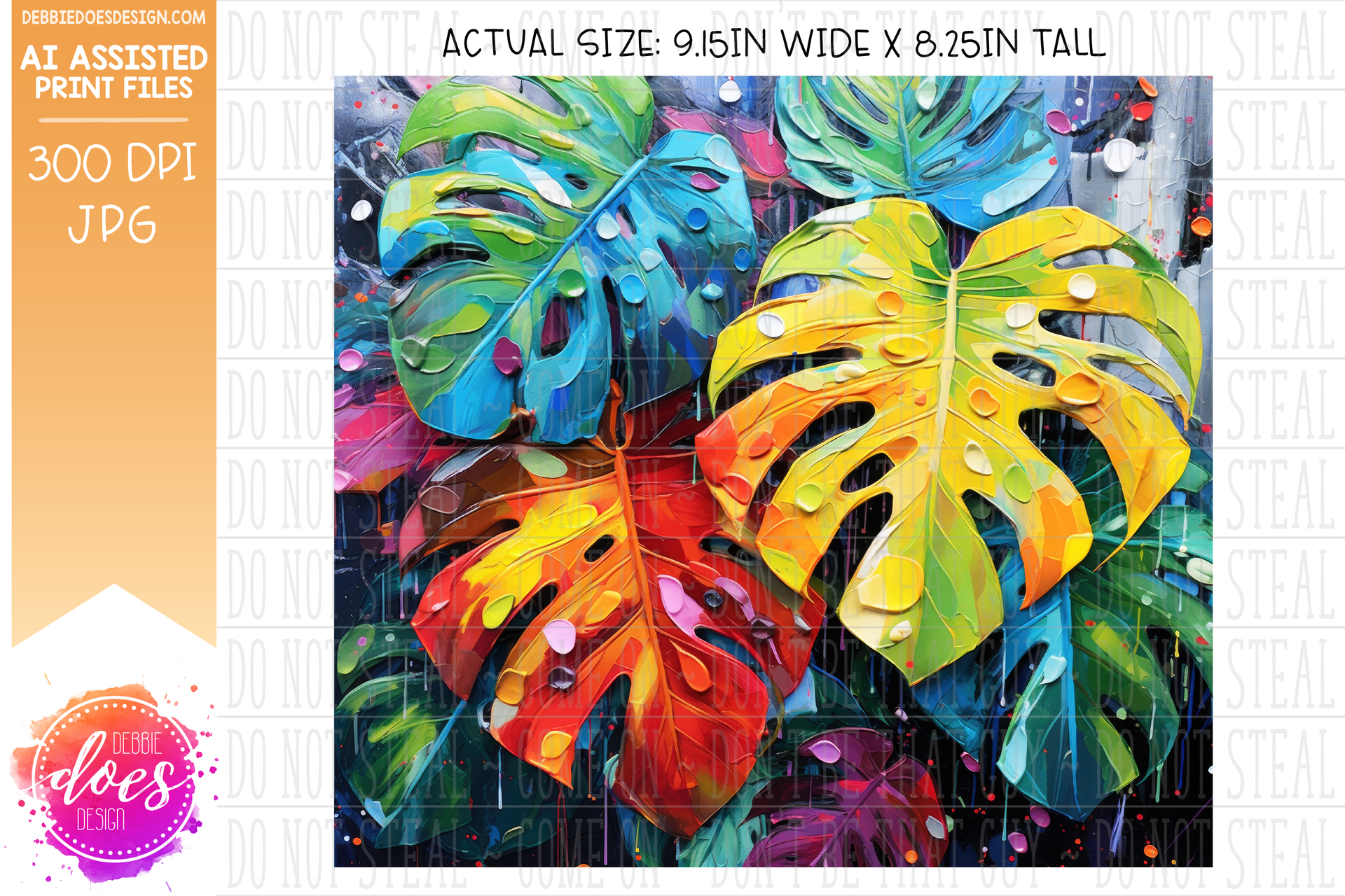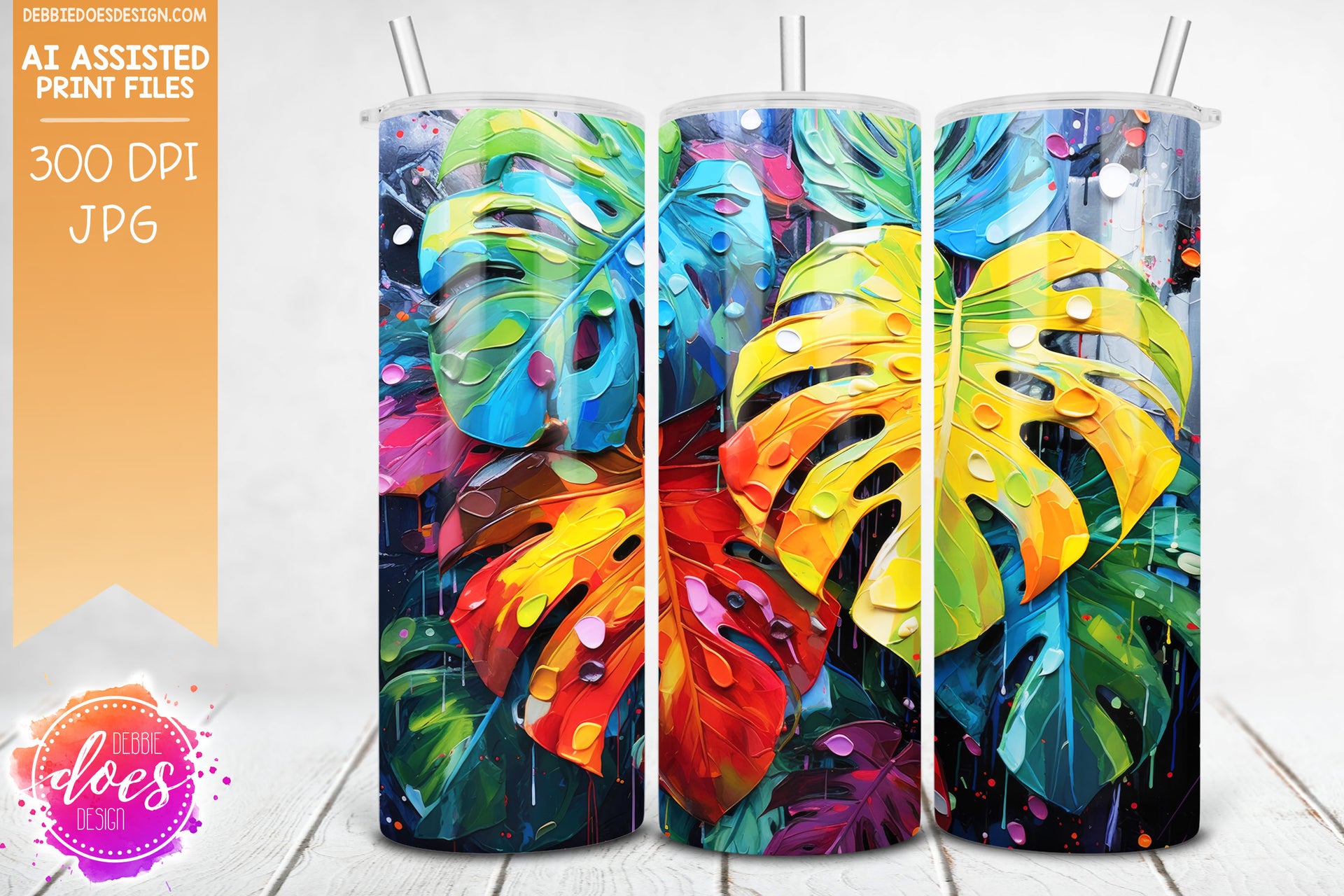 Thick Acrylic Painting - Monstera Leaves 2 - Tumbler - Printable/Sublimation Design