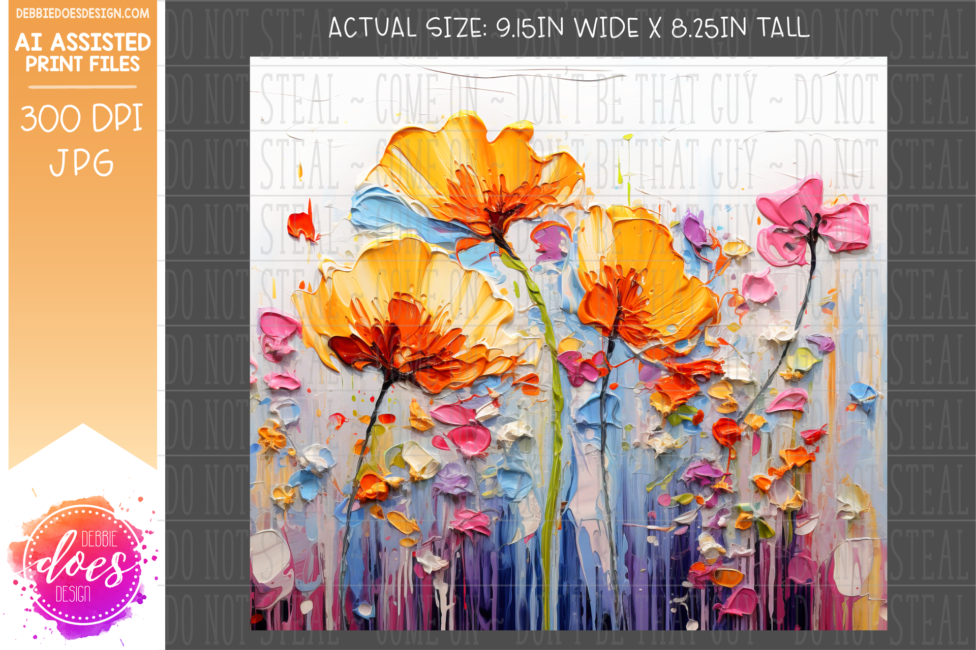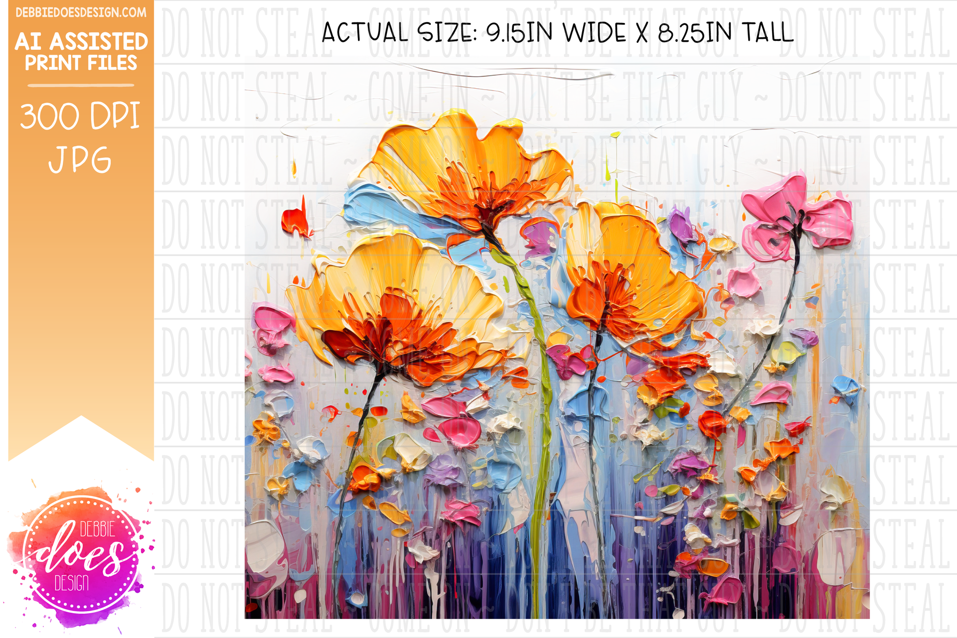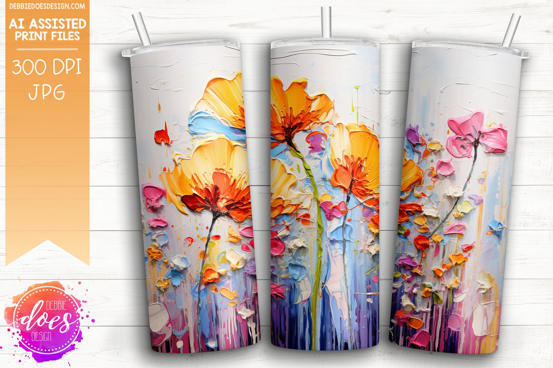 Thick Acrylic Painting - Orange Pink Flowers - Tumbler - Printable/Sublimation Design