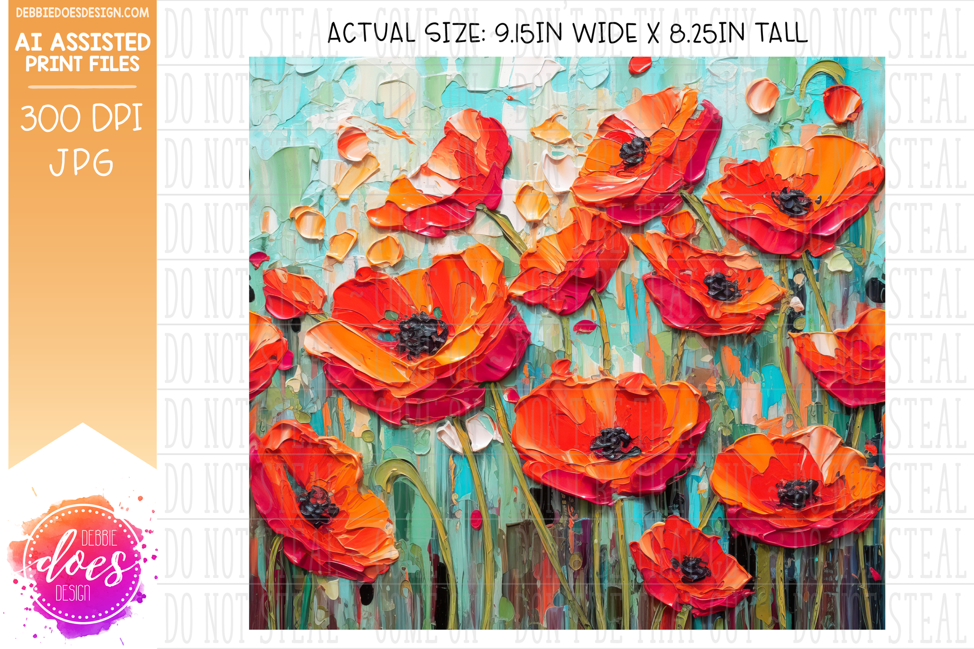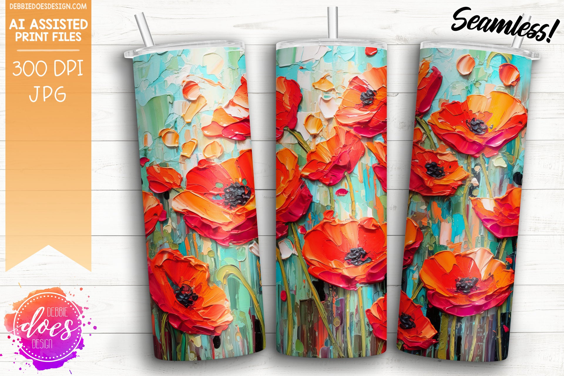 Thick Acrylic Painting - Red and Orange Poppies 2 - Tumbler - Printable/Sublimation Design