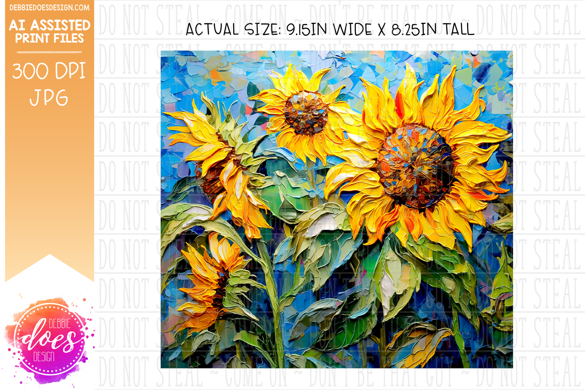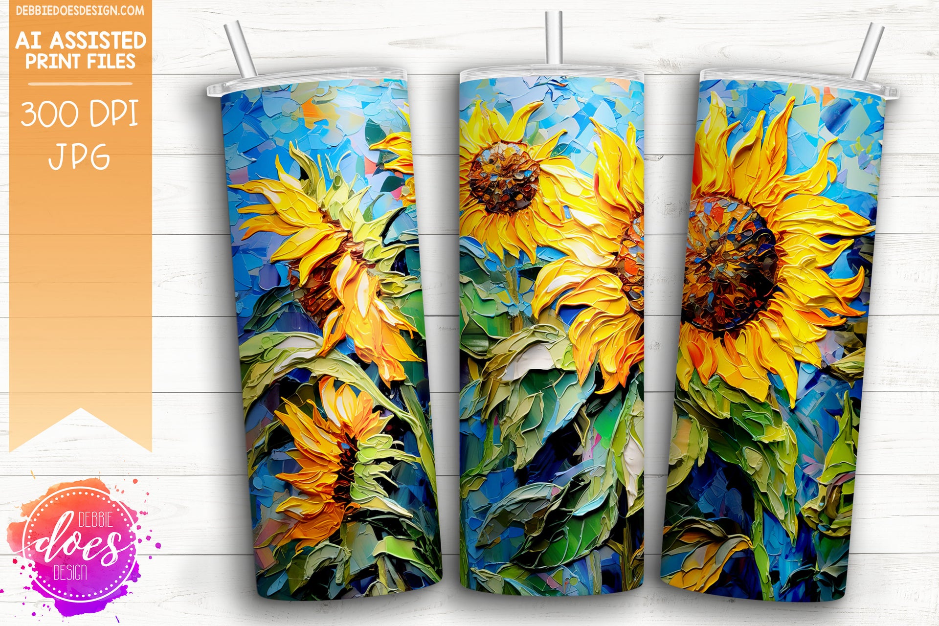 Thick Acrylic Painting - Sunflowers 2 - Tumbler - Printable/Sublimation Design