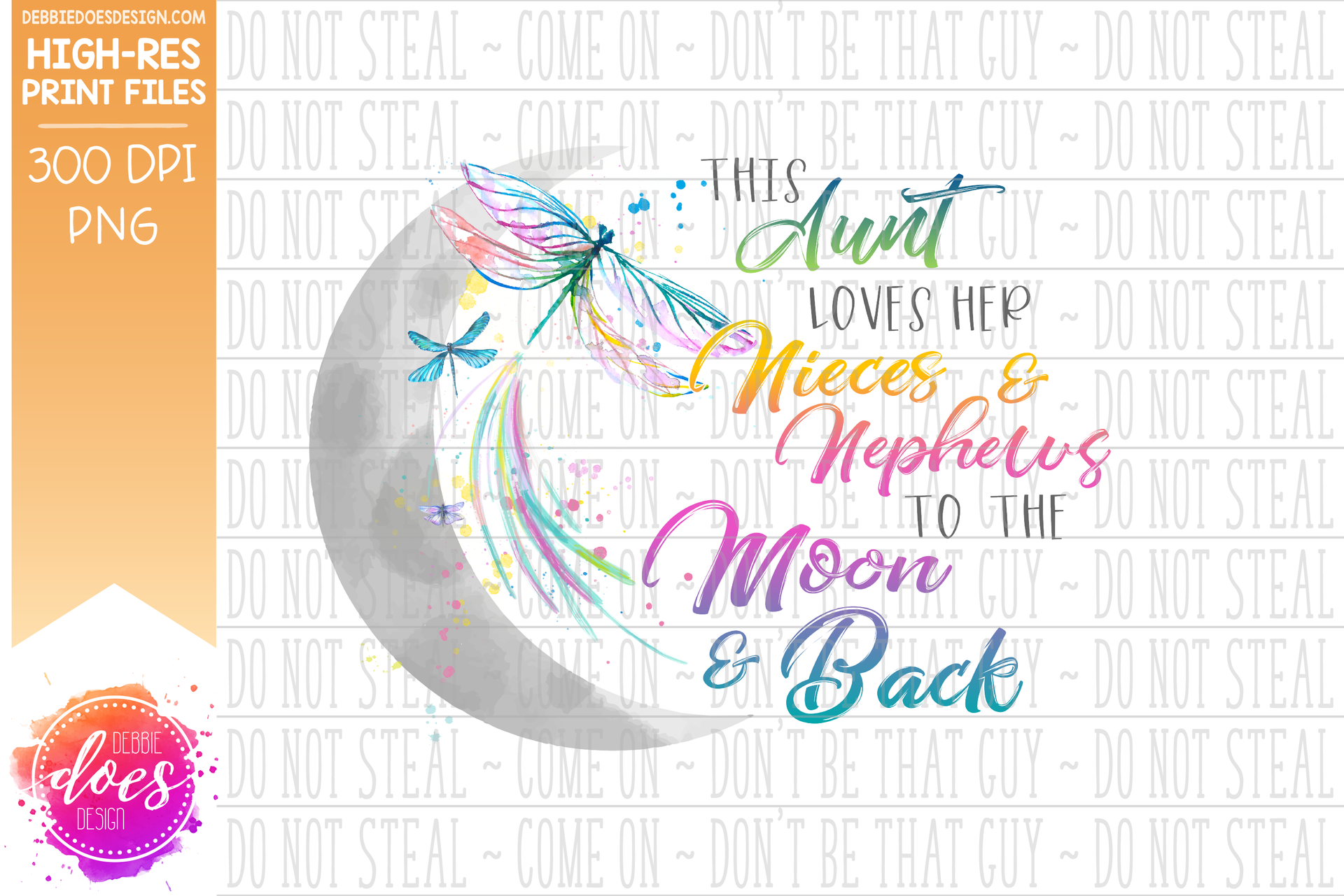 This Aunt Loves Her - Moon & Dragonfly Design Bundle - 6 Versions! - Sublimation/Printable Design