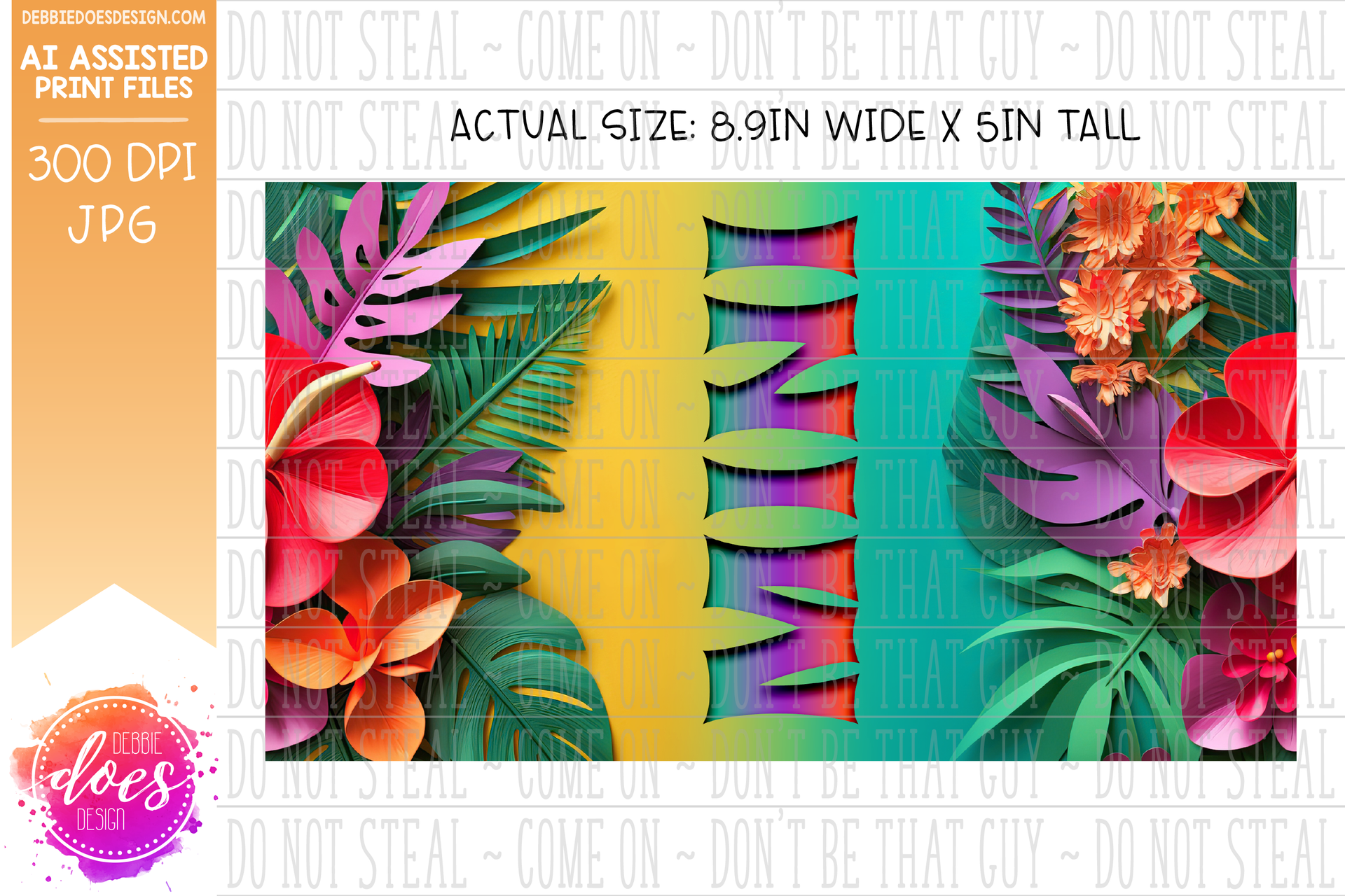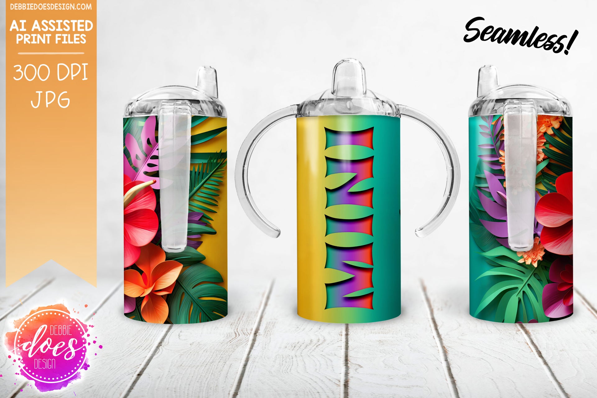 Tropical Flowers - Teal Yellow - Kid's Sippy Cup - Mini- Printable/Sublimation Design