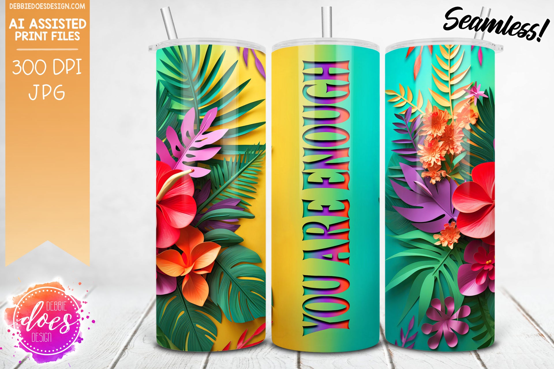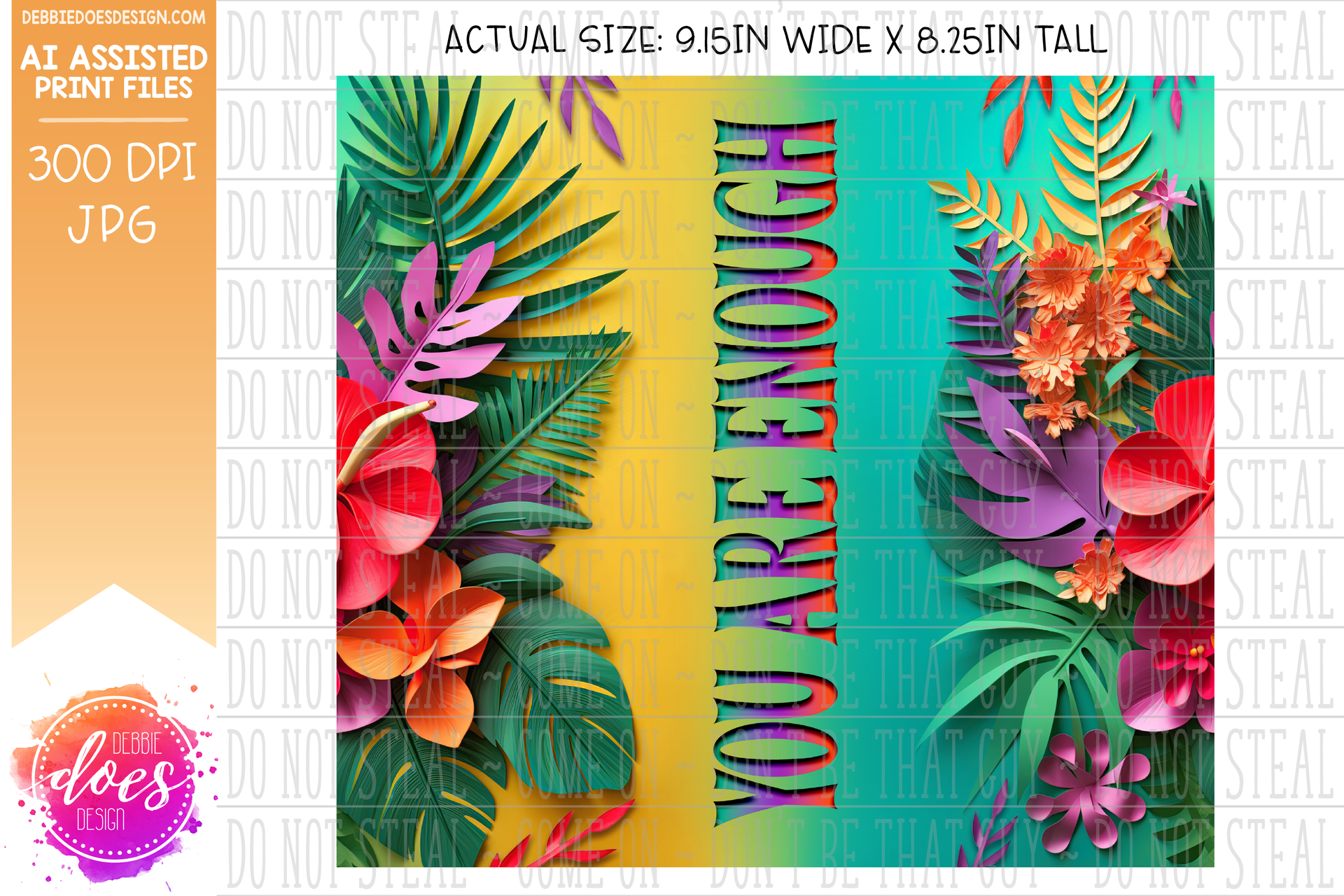 Tropical Flowers - Teal Yellow - Tumbler - You are Enough - Printable/Sublimation Design