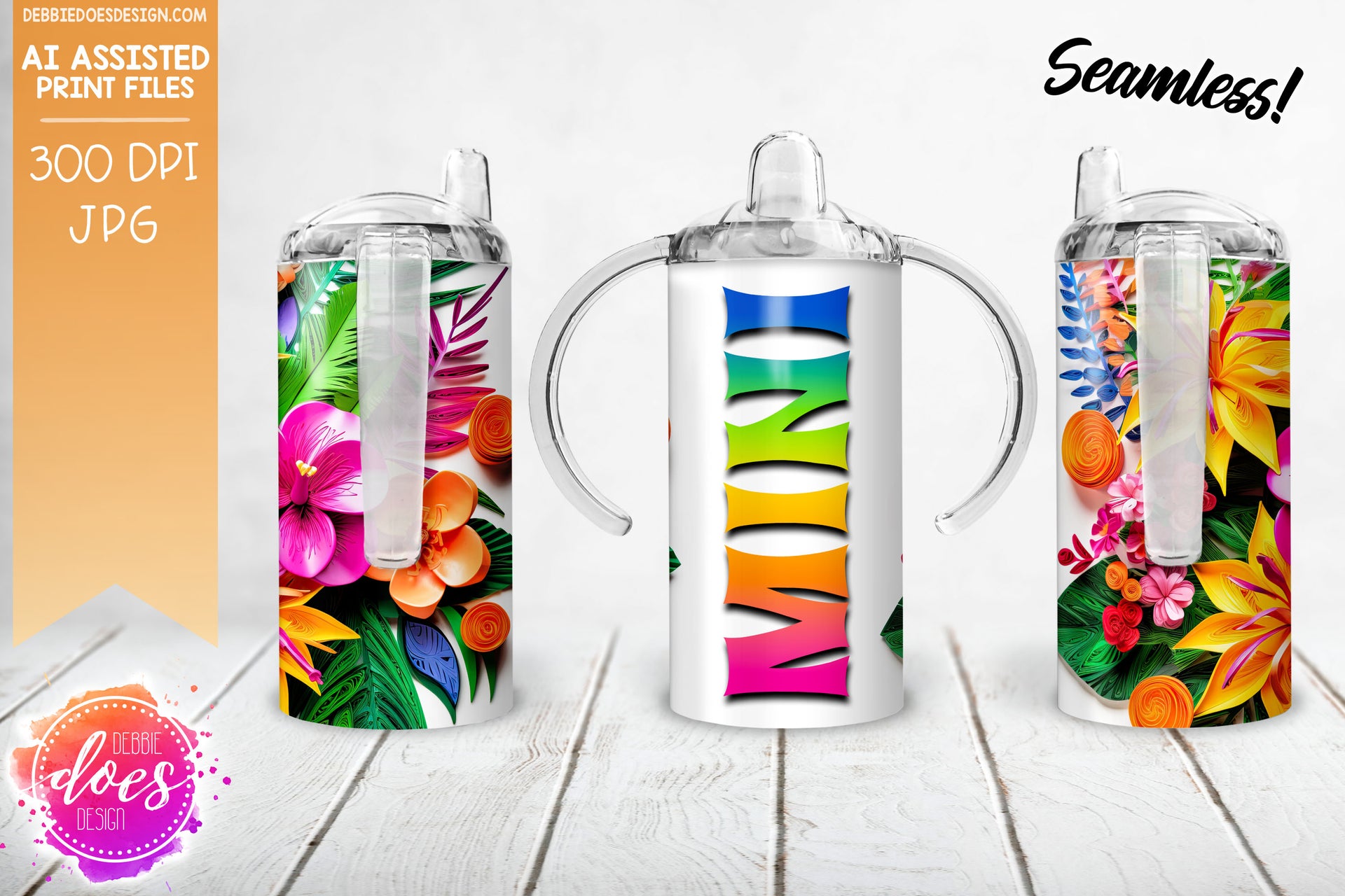 Tropical Flowers - Vivid on White Kid's Sippy Cup - Mini - Printable/Sublimation Design