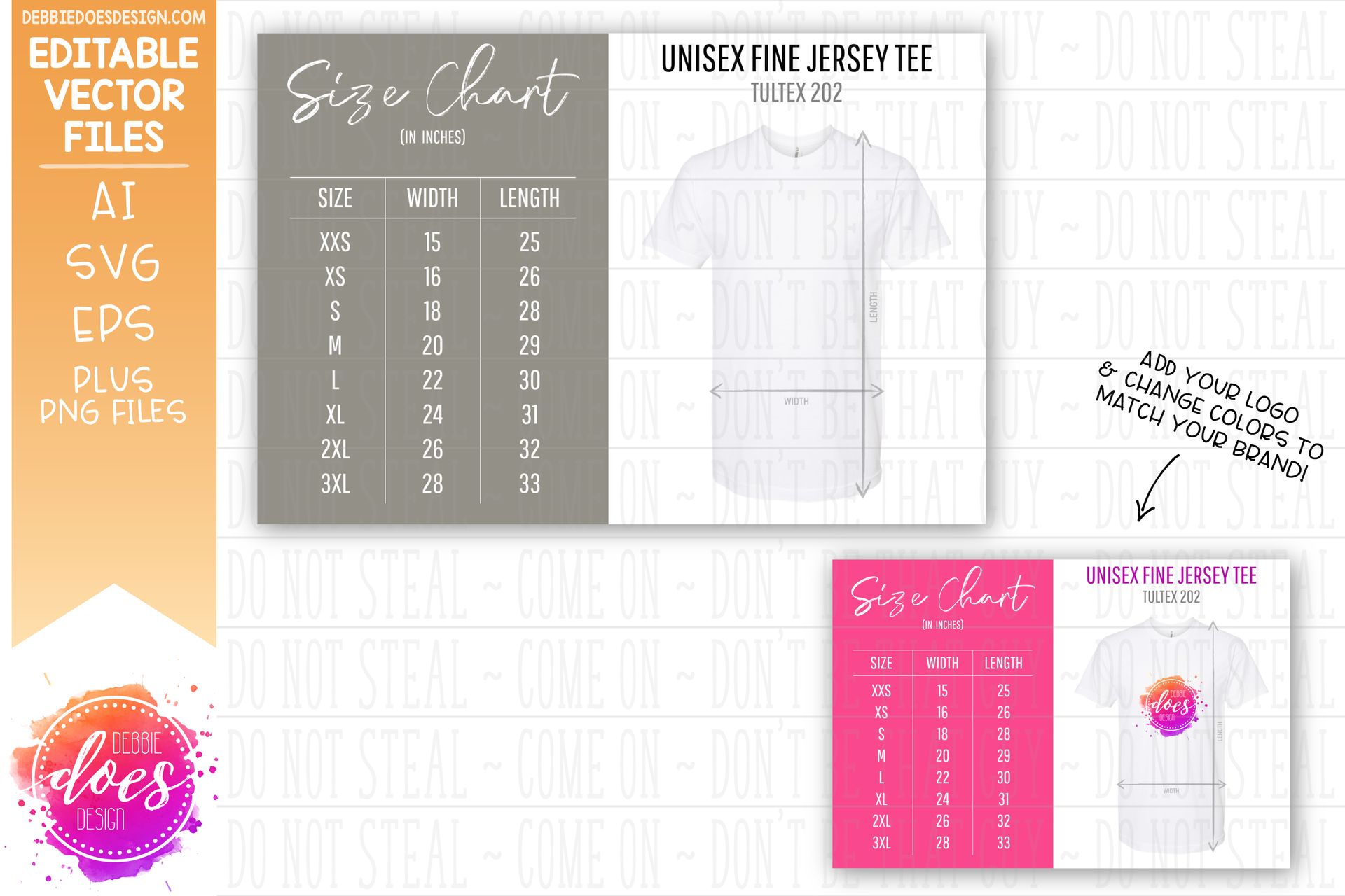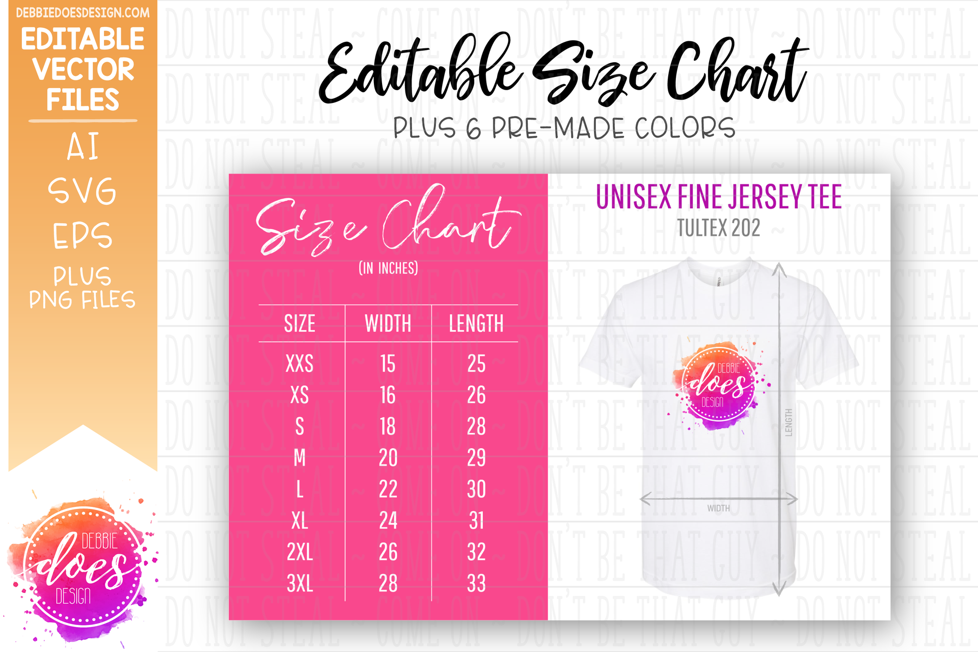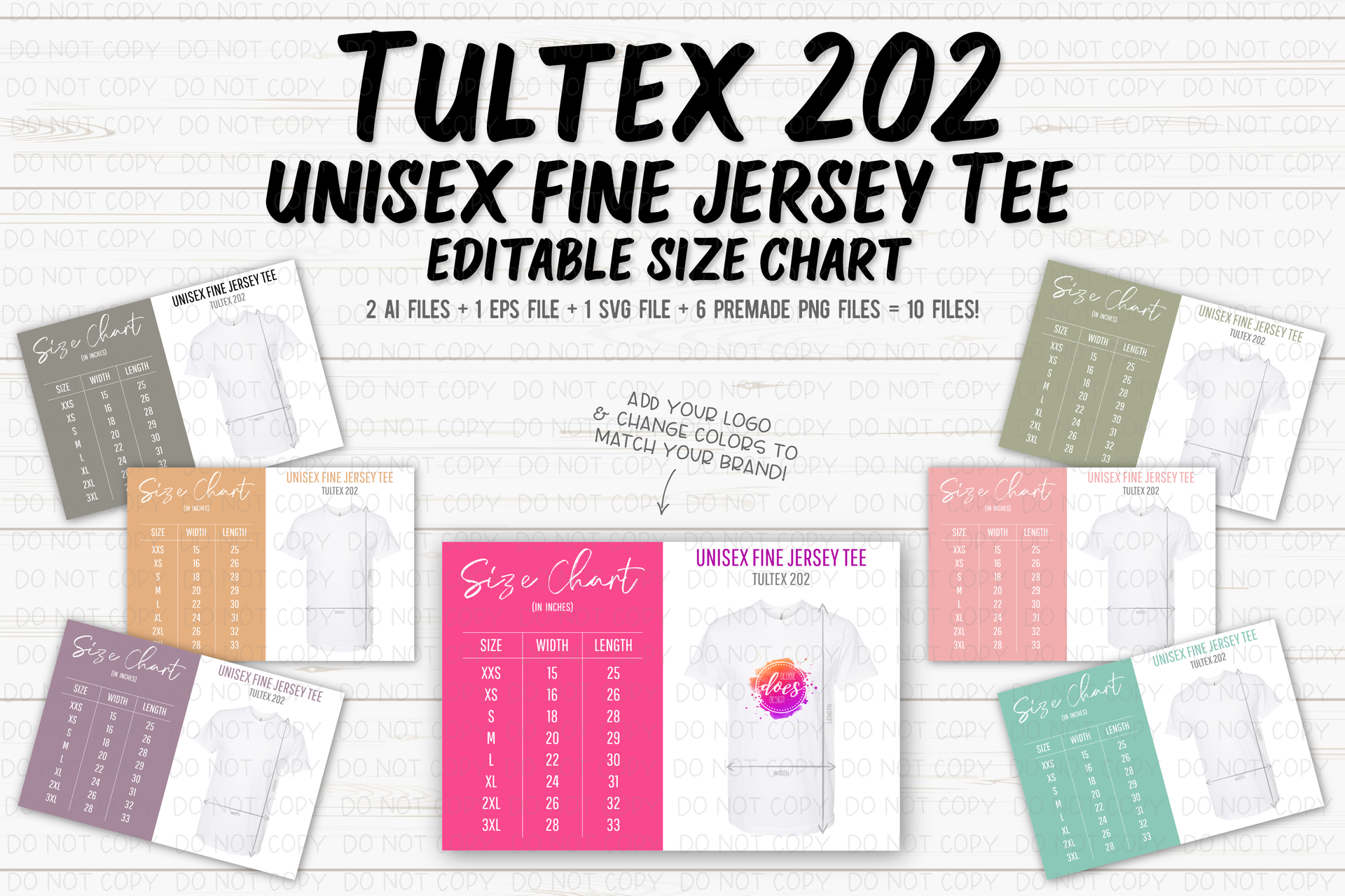 Tultex 202 - Editable Size Chart + 6 Colored PNG Files
